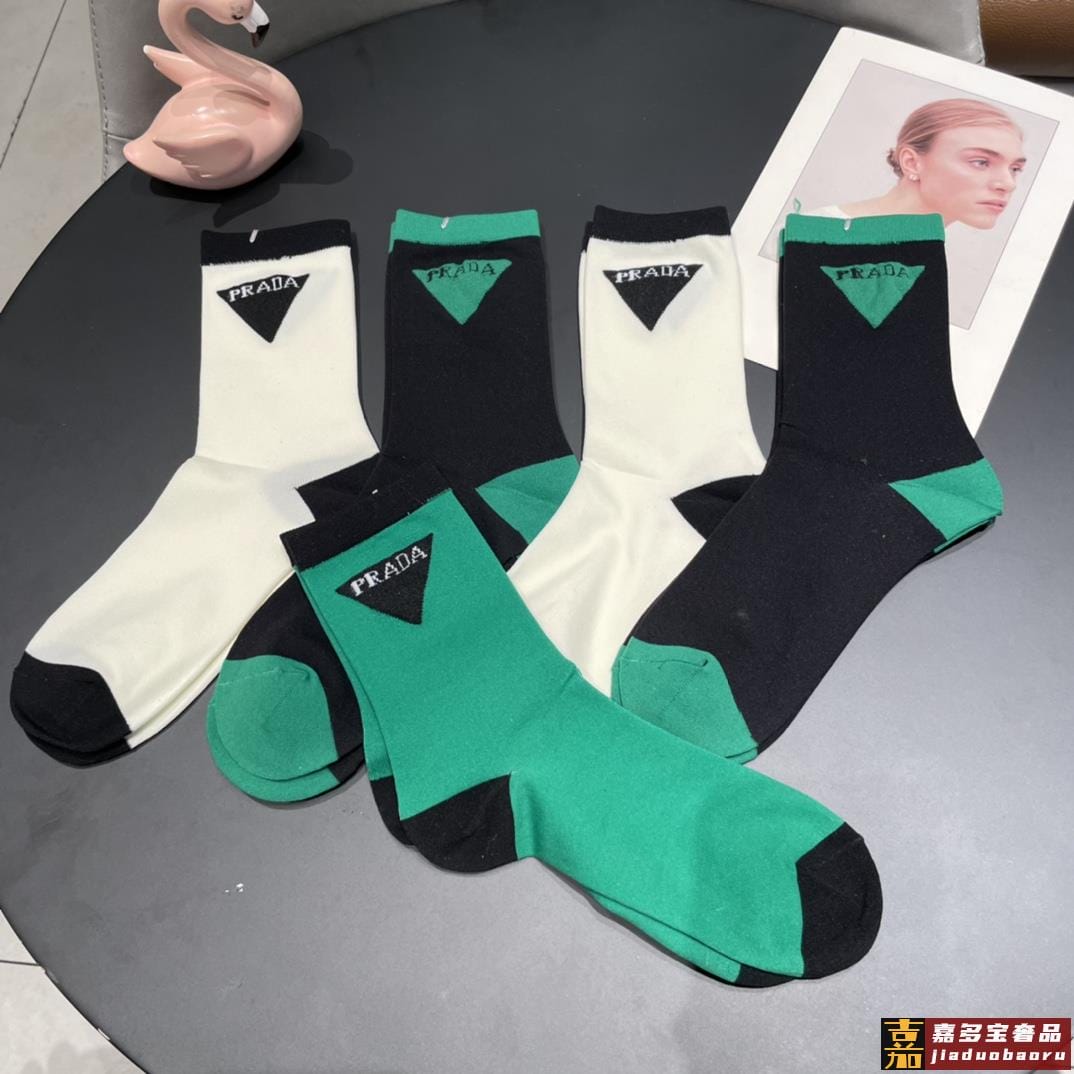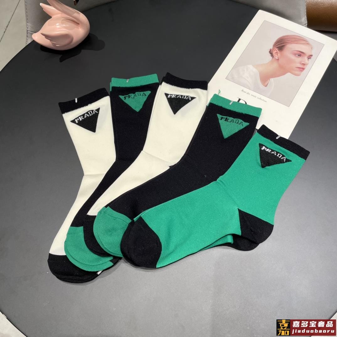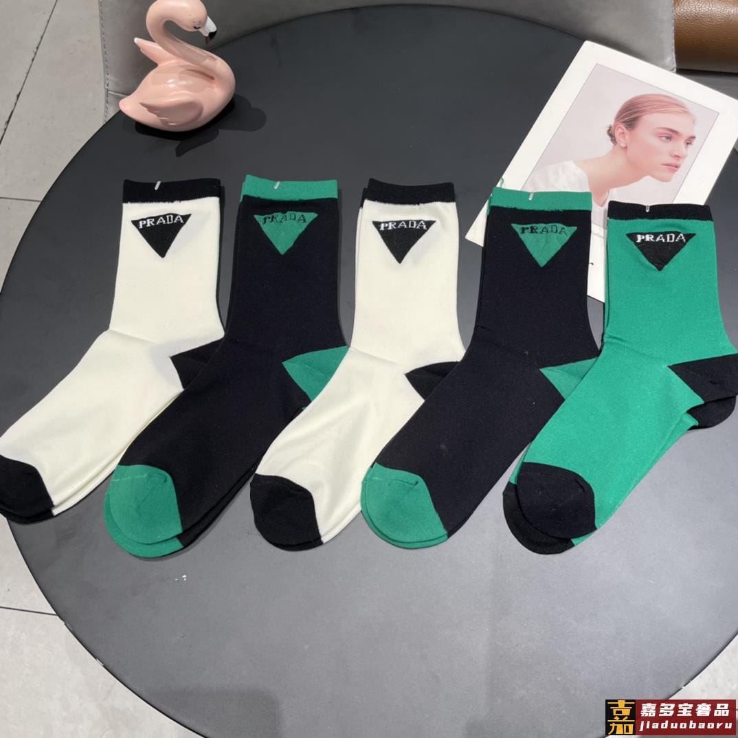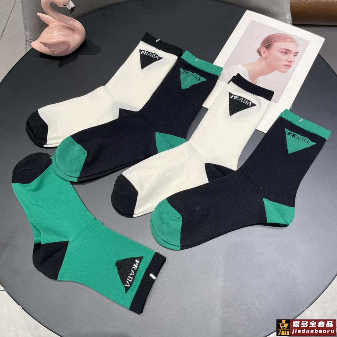配包装普拉达新款中长冰丝堆堆袜袜子一盒双专柜同步筒袜袜子大牌