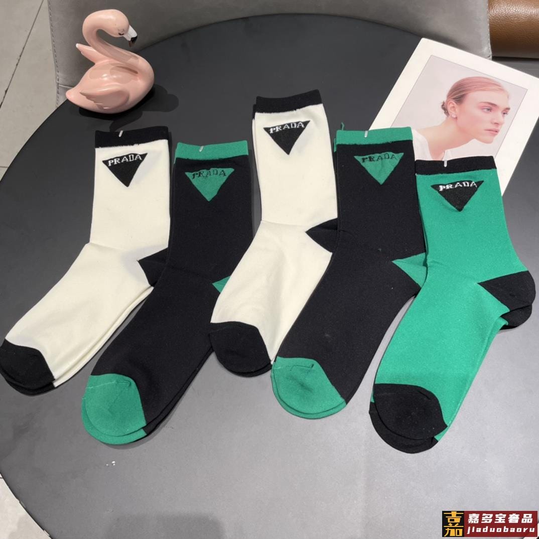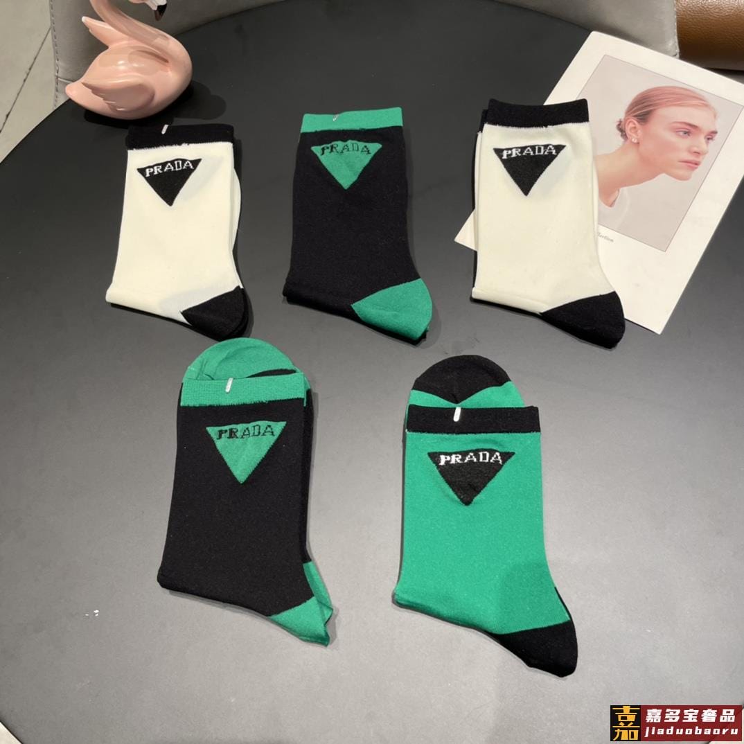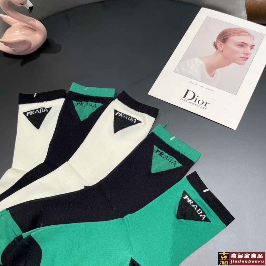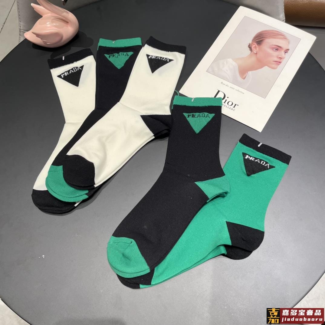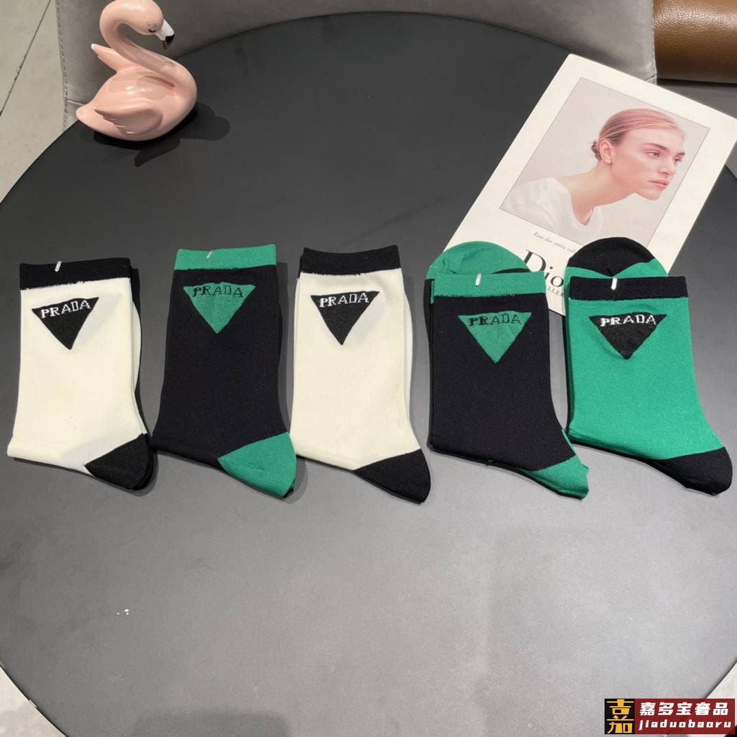 配包装普拉达新款中长冰丝堆堆袜袜子一盒双专柜同步筒袜袜子大牌