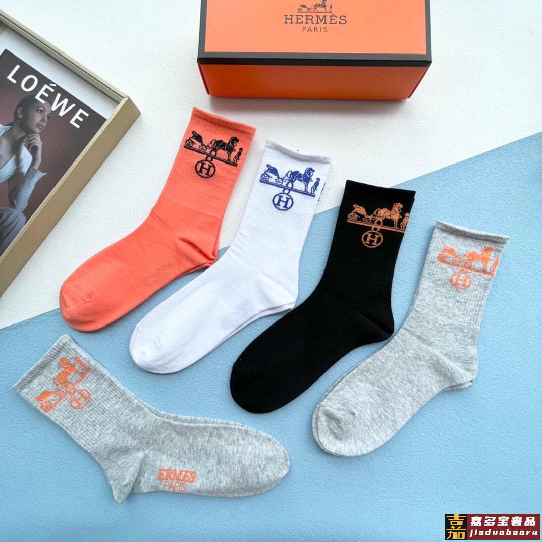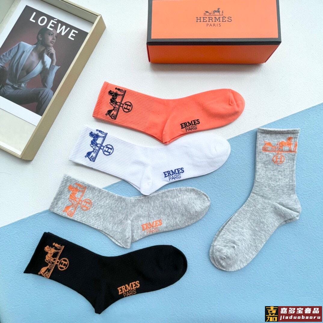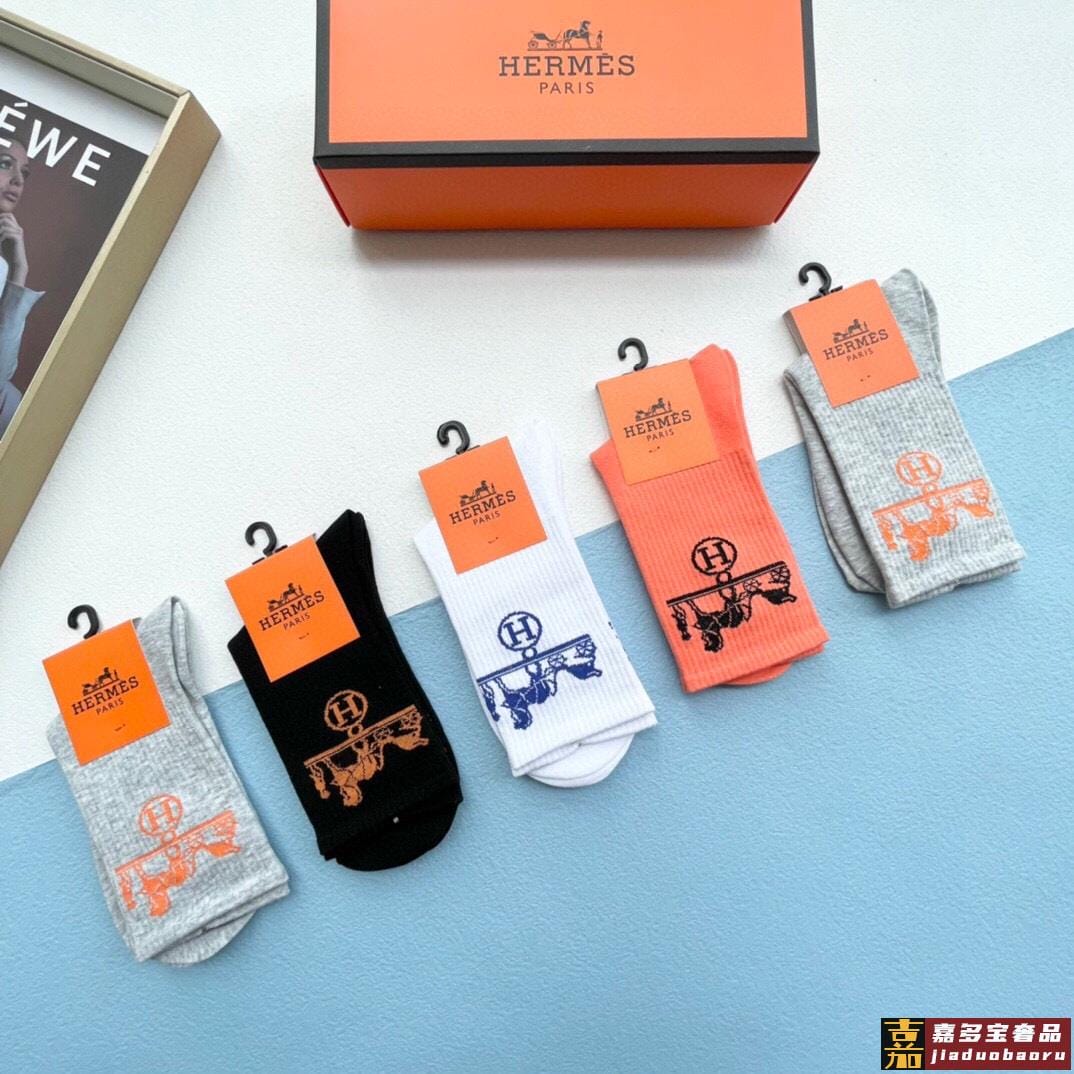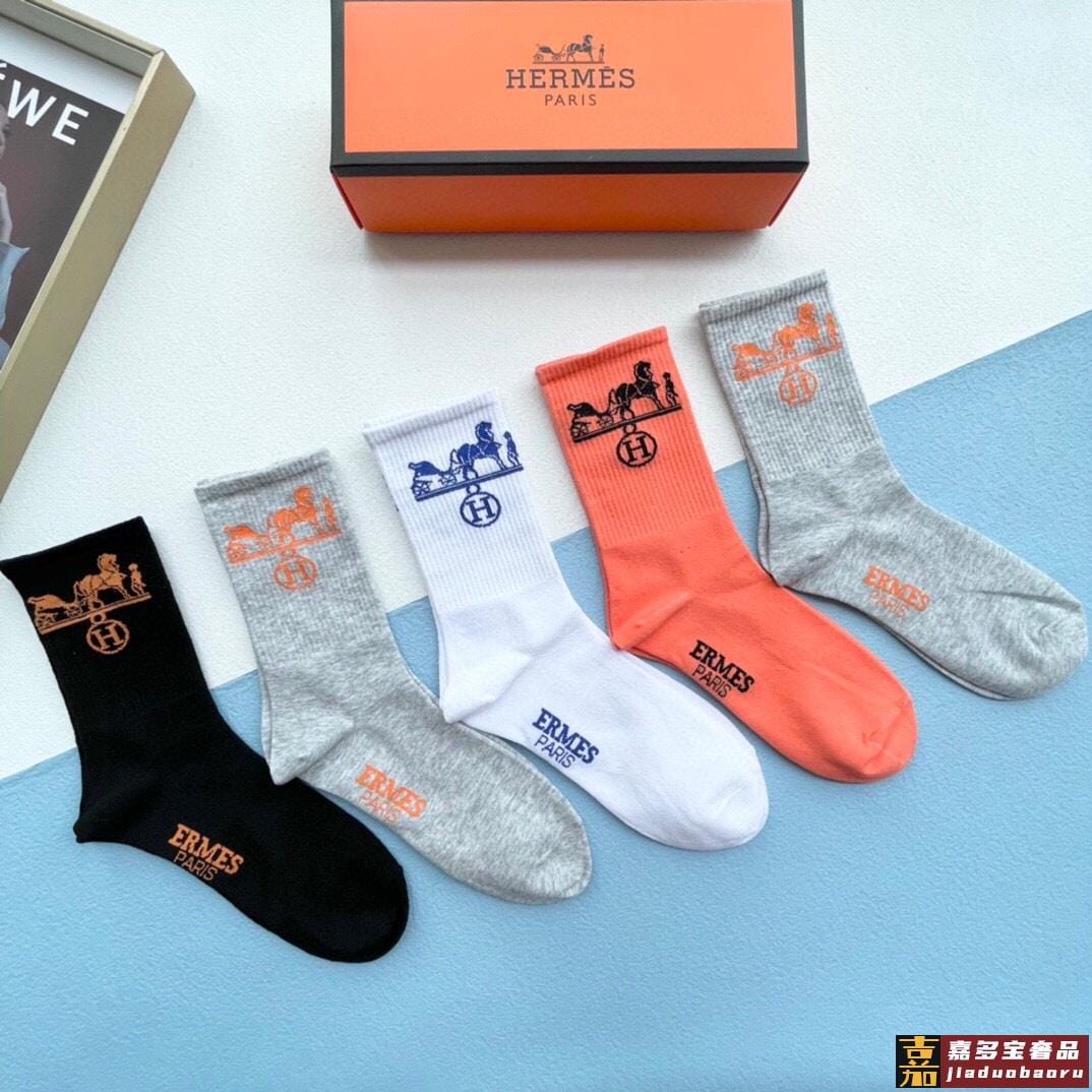 配包装一盒五双爱马仕经典中筒袜子纯棉面料专柜同步上新袜身提花