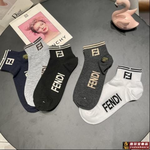 芬迪配包装老佛爷经典男款袜子一盒五双专柜同步袜子罗口刺绣老佛
