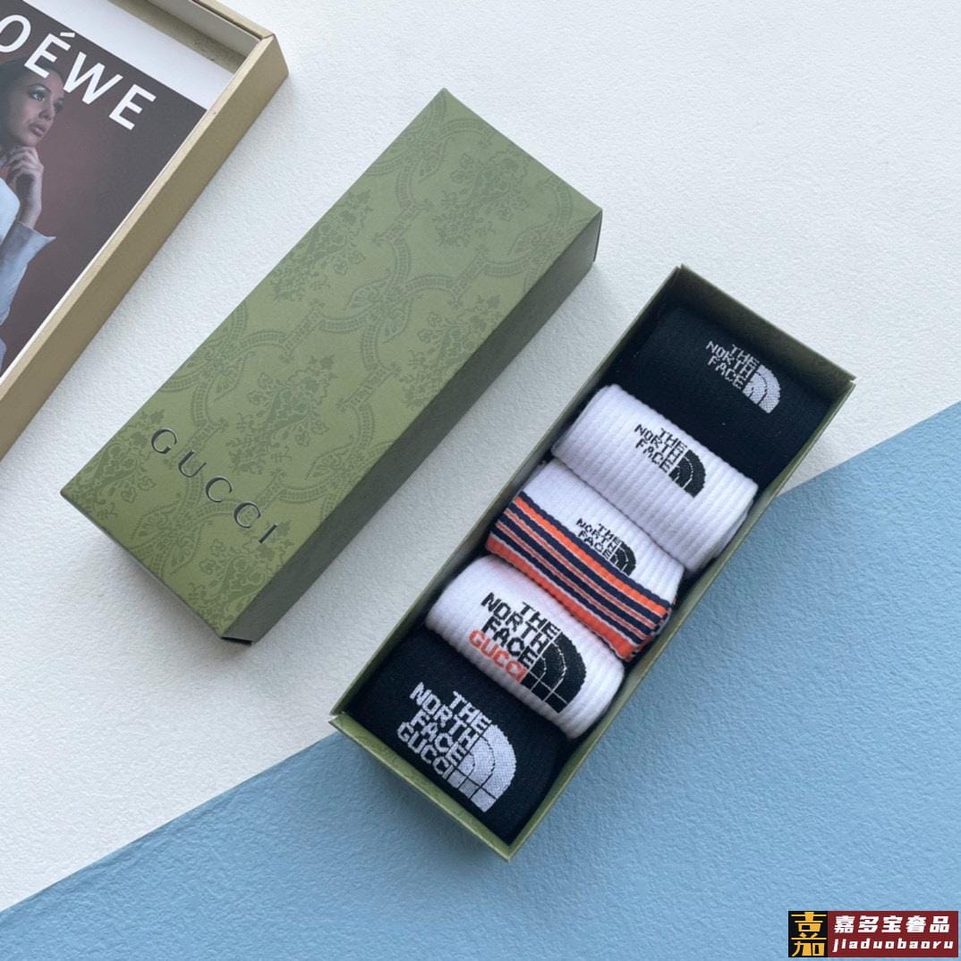 配包装一盒五双北面古奇联名经典中筒袜子袜身提花经典品牌全称标