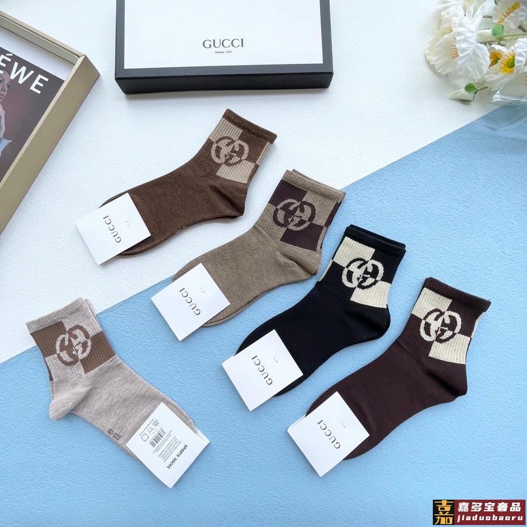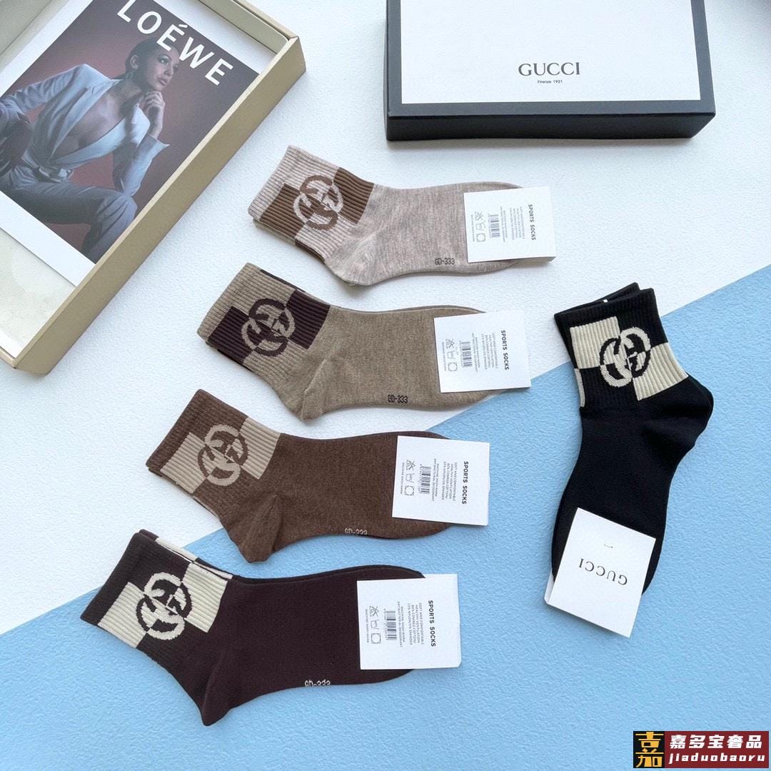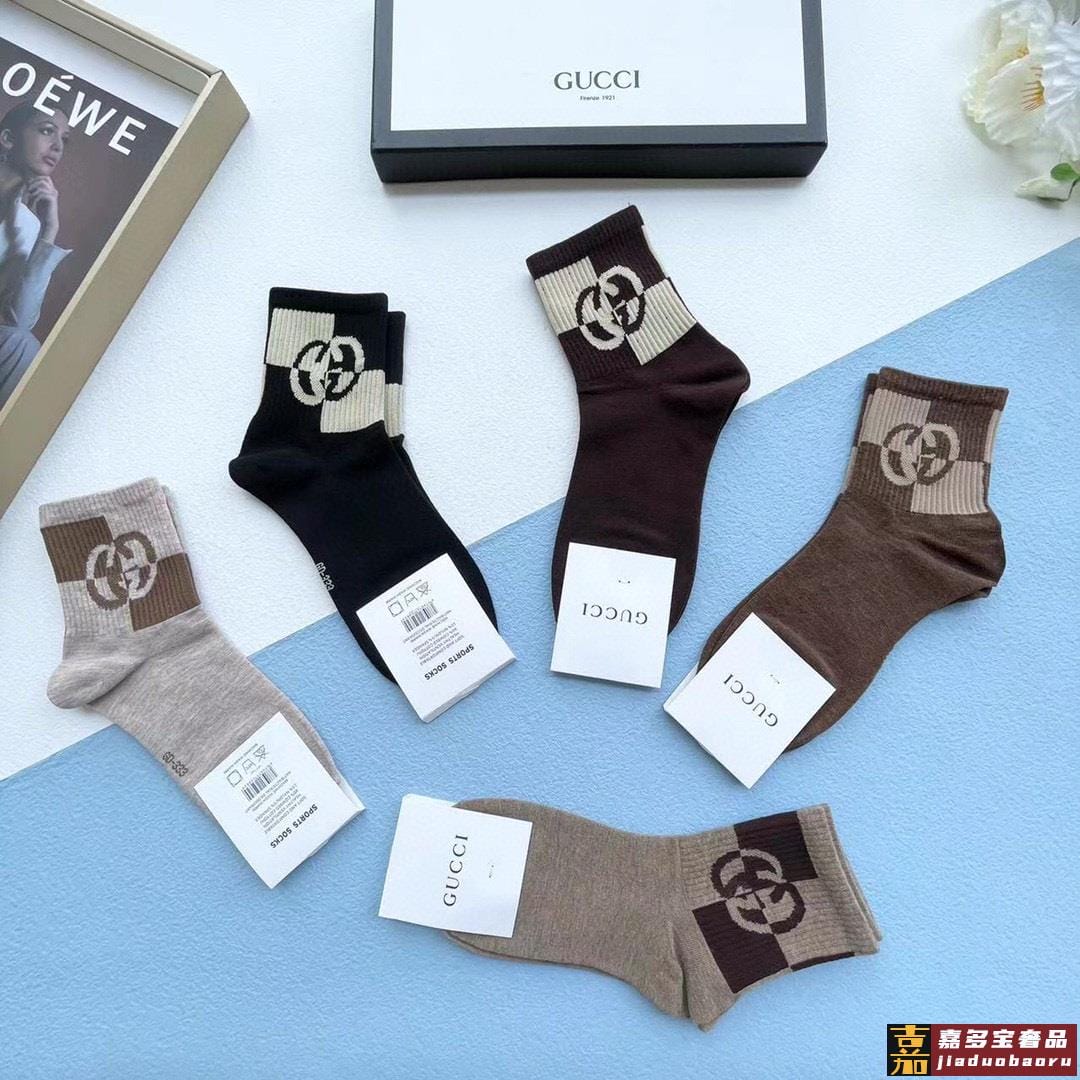 配送包装一盒五双古奇专柜新款男女中筒袜子专柜同步上新超柔软舒