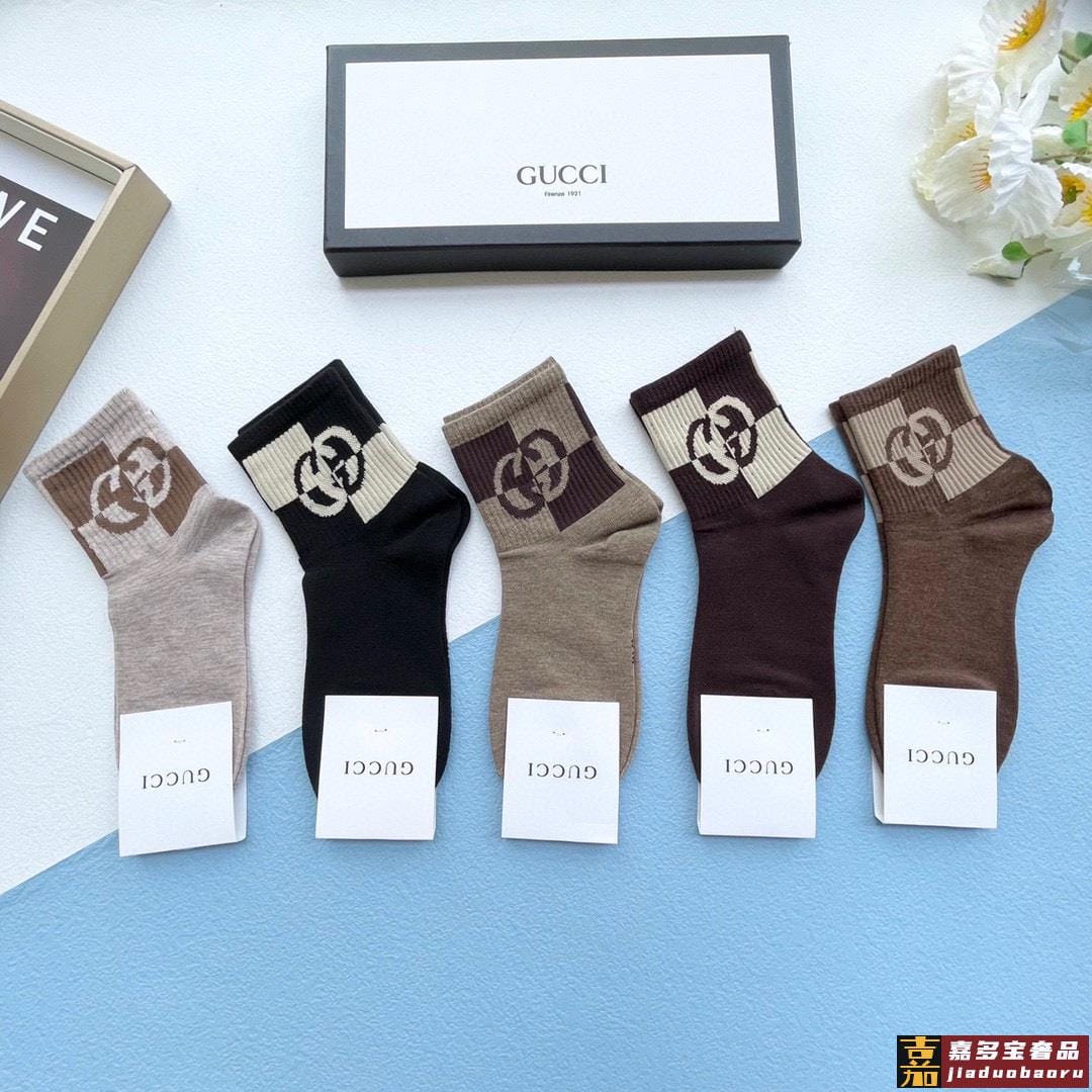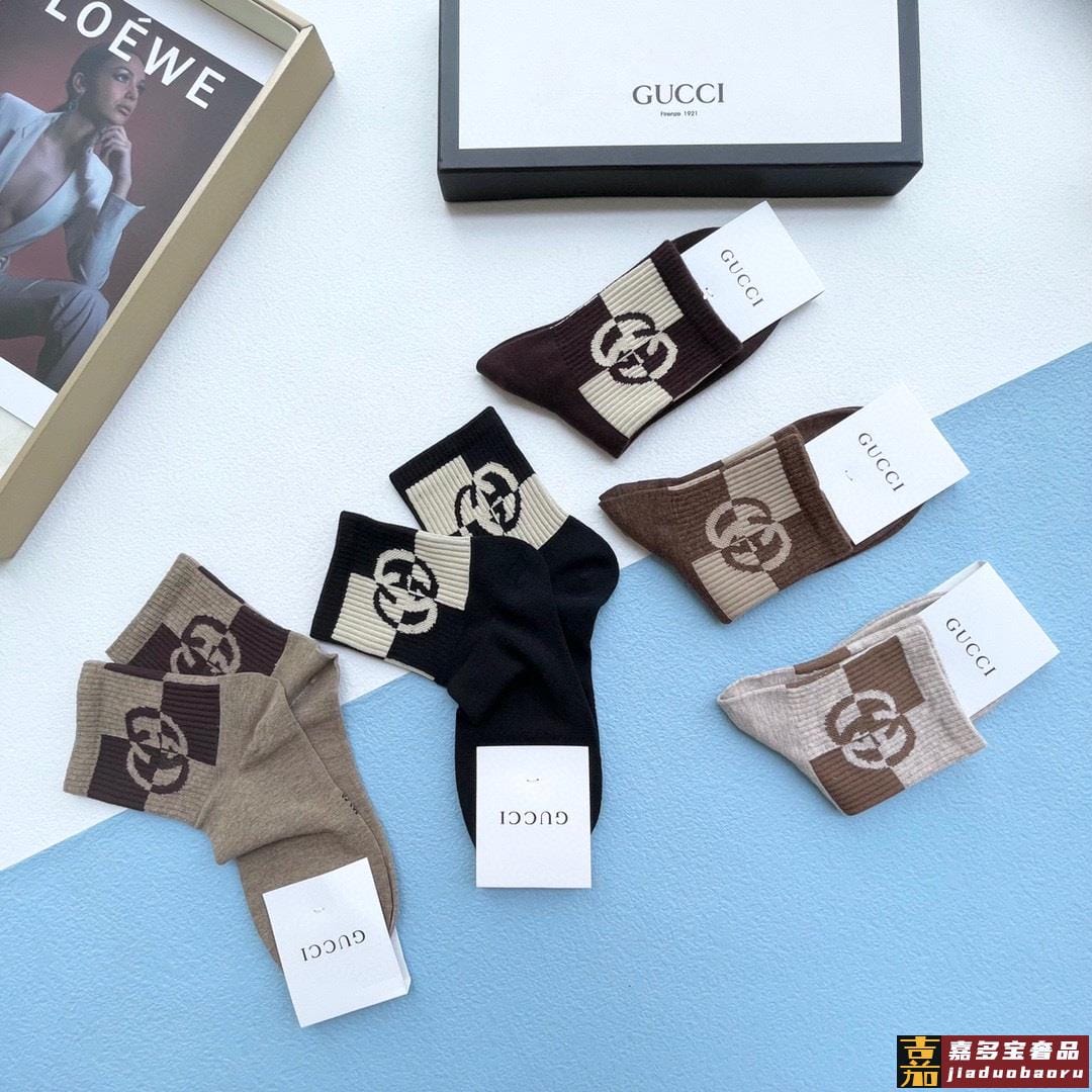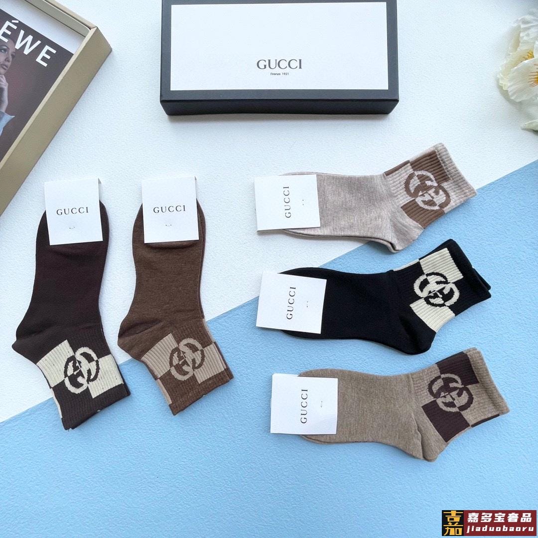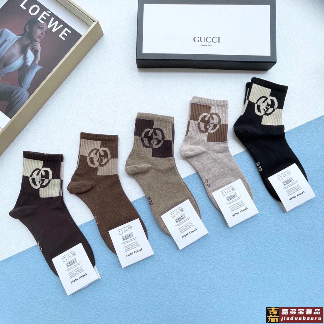 配送包装一盒五双古奇专柜新款男女中筒袜子专柜同步上新超柔软舒