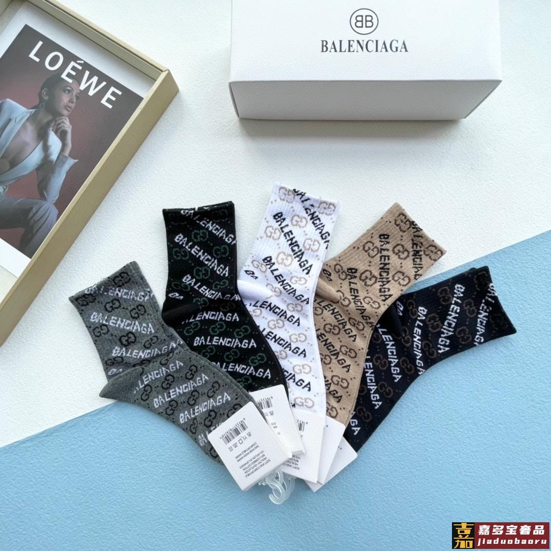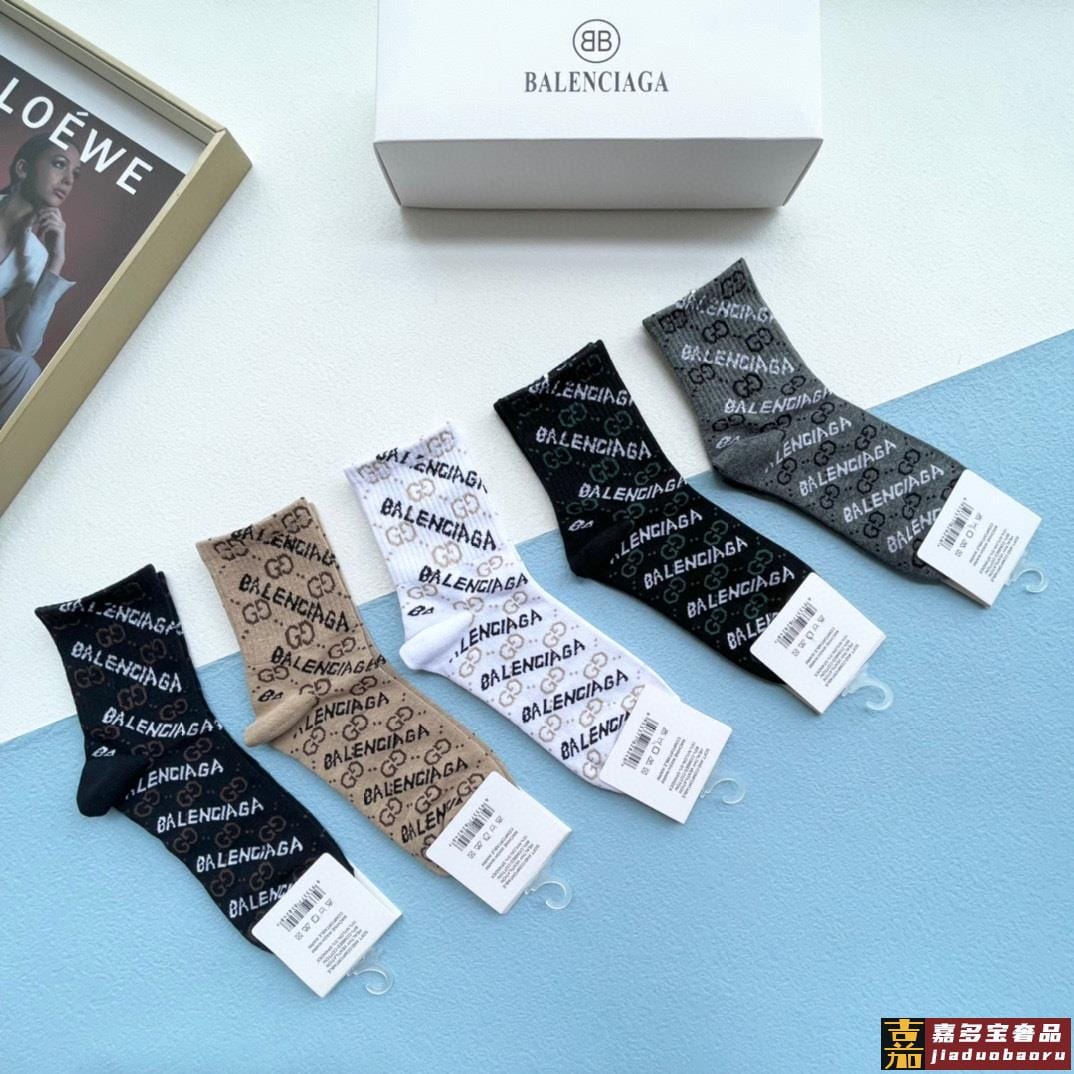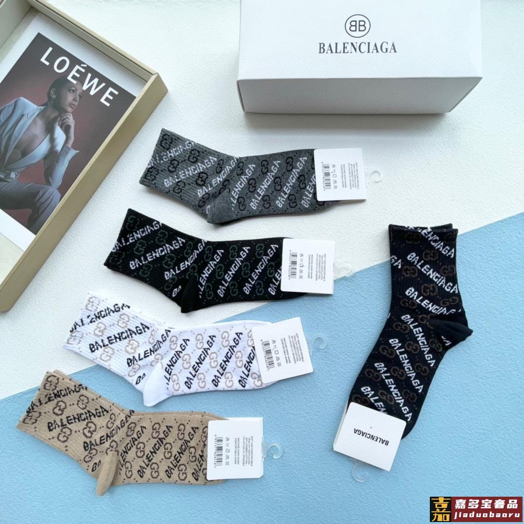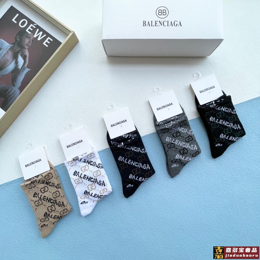 配包装一盒五双巴黎世家秋冬新品袜子经典品牌标志简单大气实物超