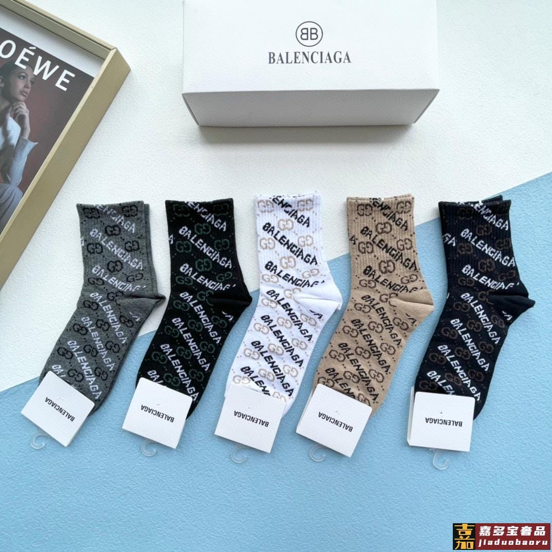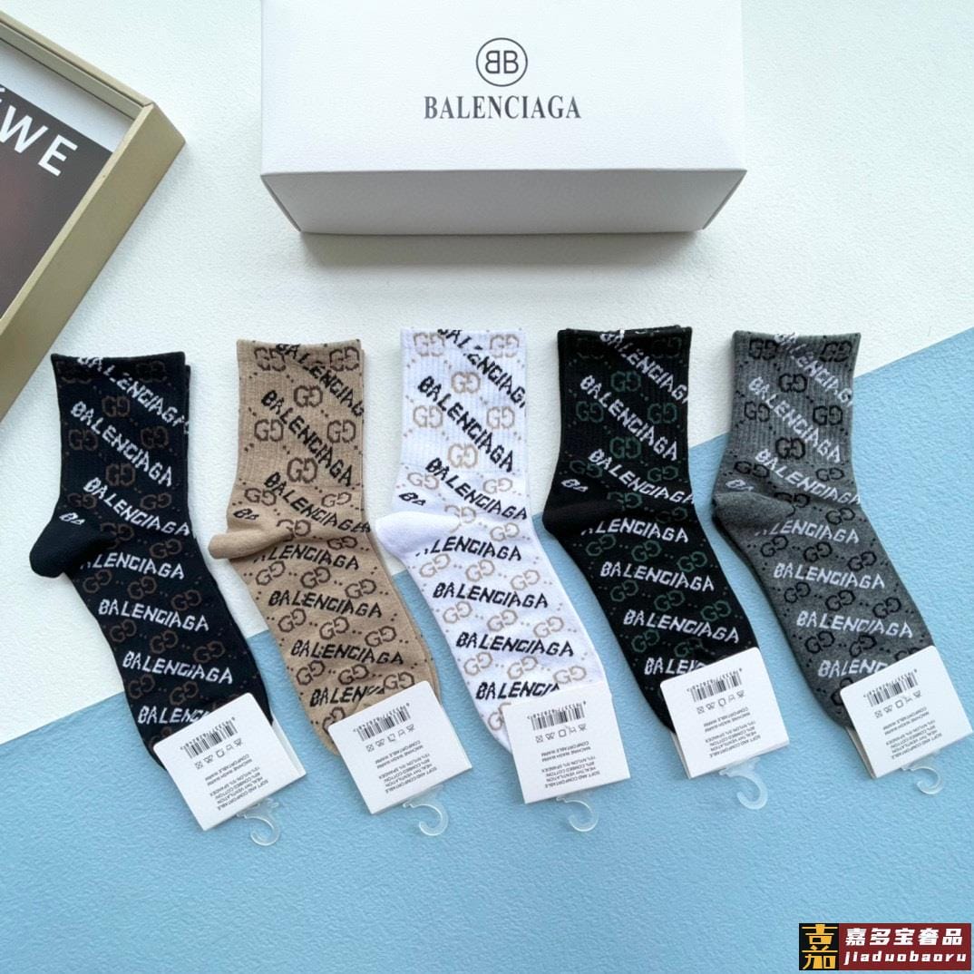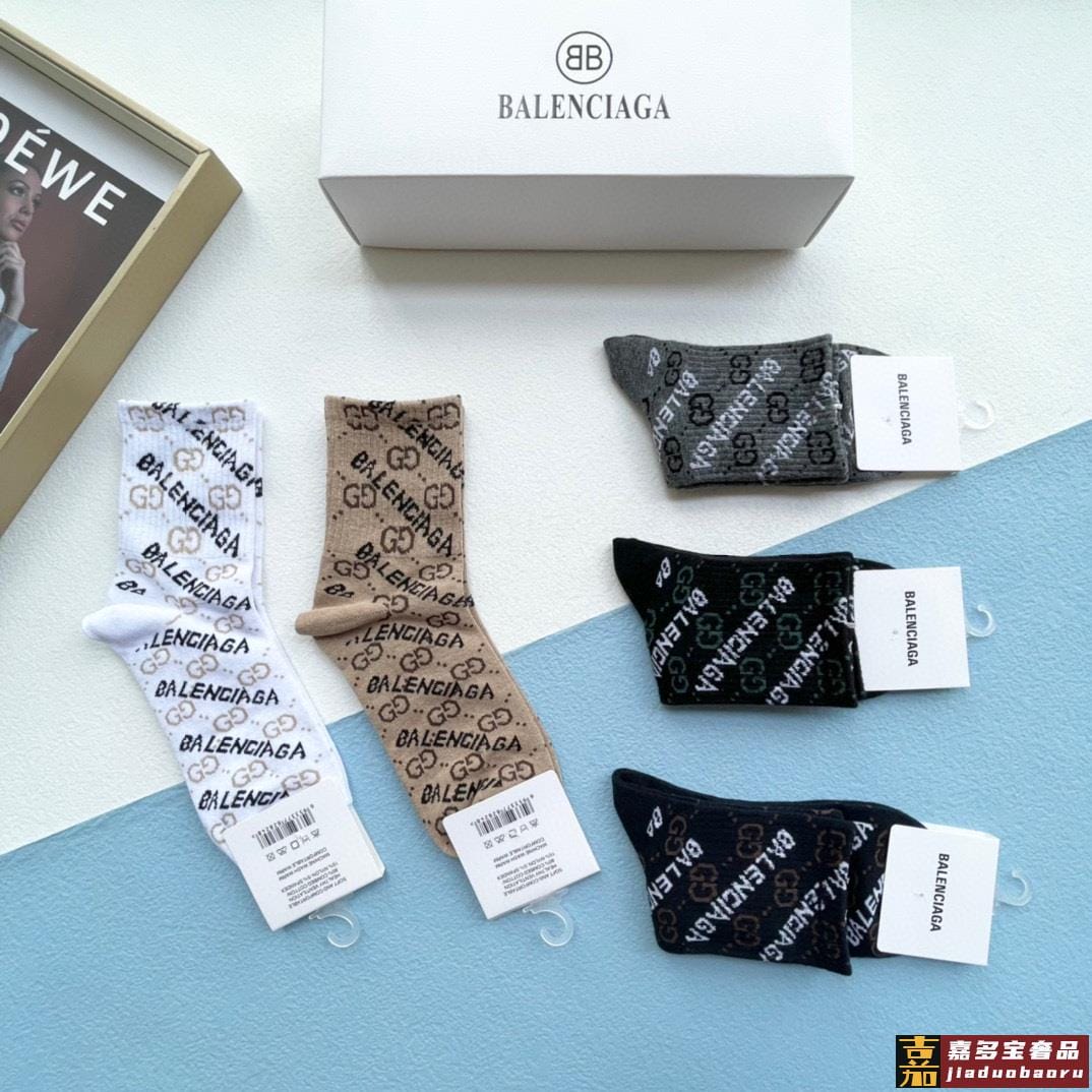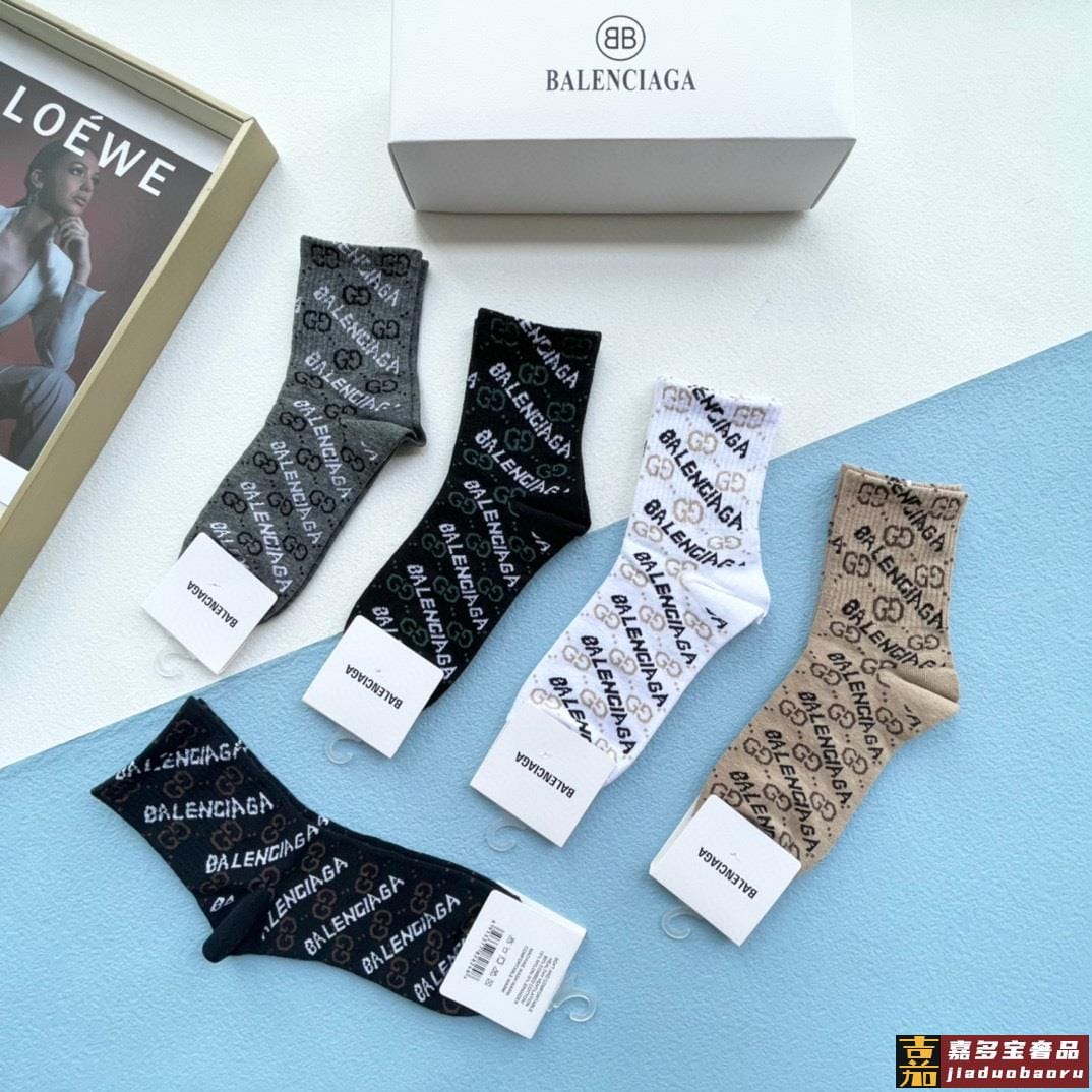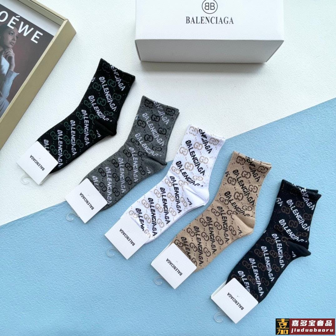 配包装一盒五双巴黎世家秋冬新品袜子经典品牌标志简单大气实物超