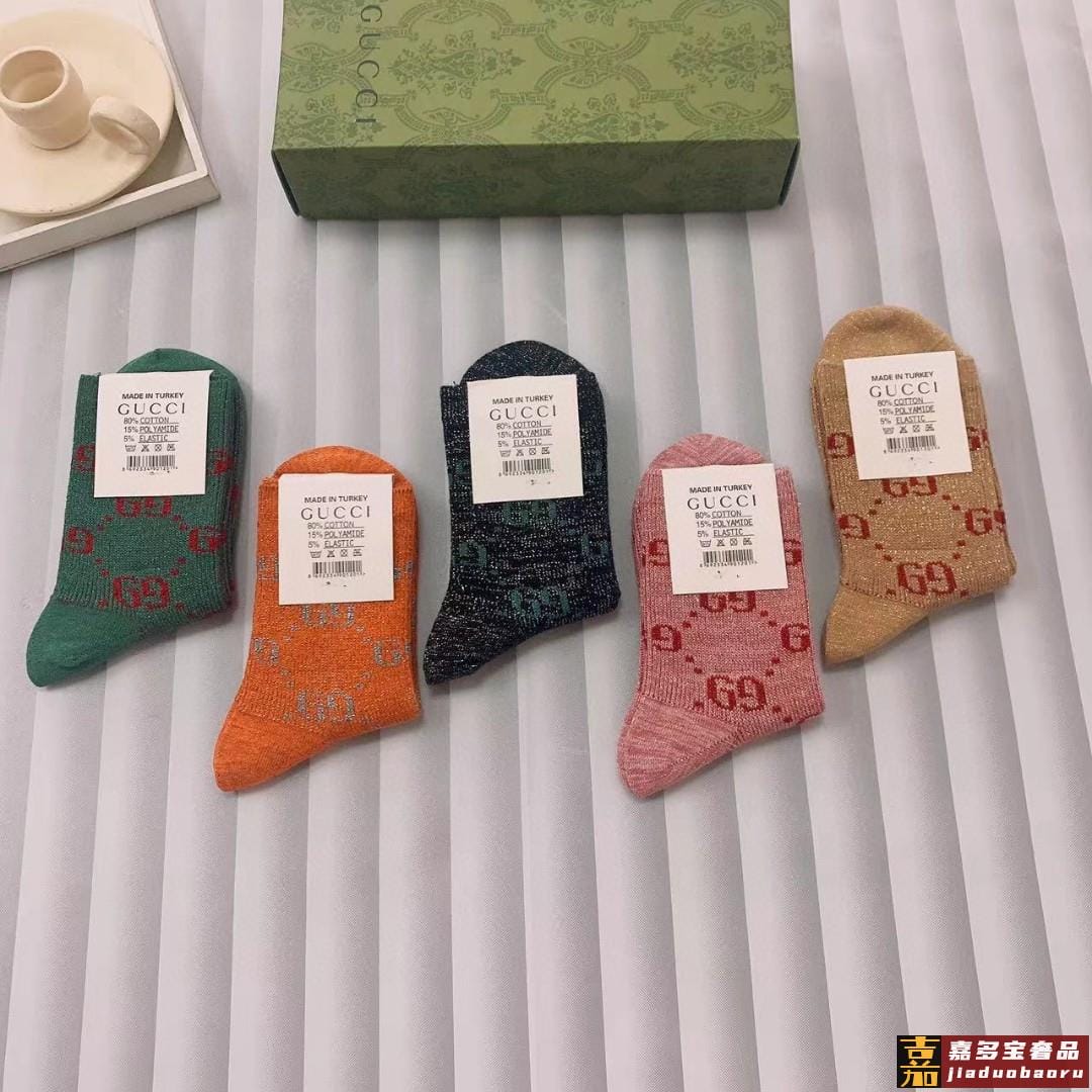 配包装一盒五双古奇超级爆款网红袜子大家官网同步双提花字母小腿