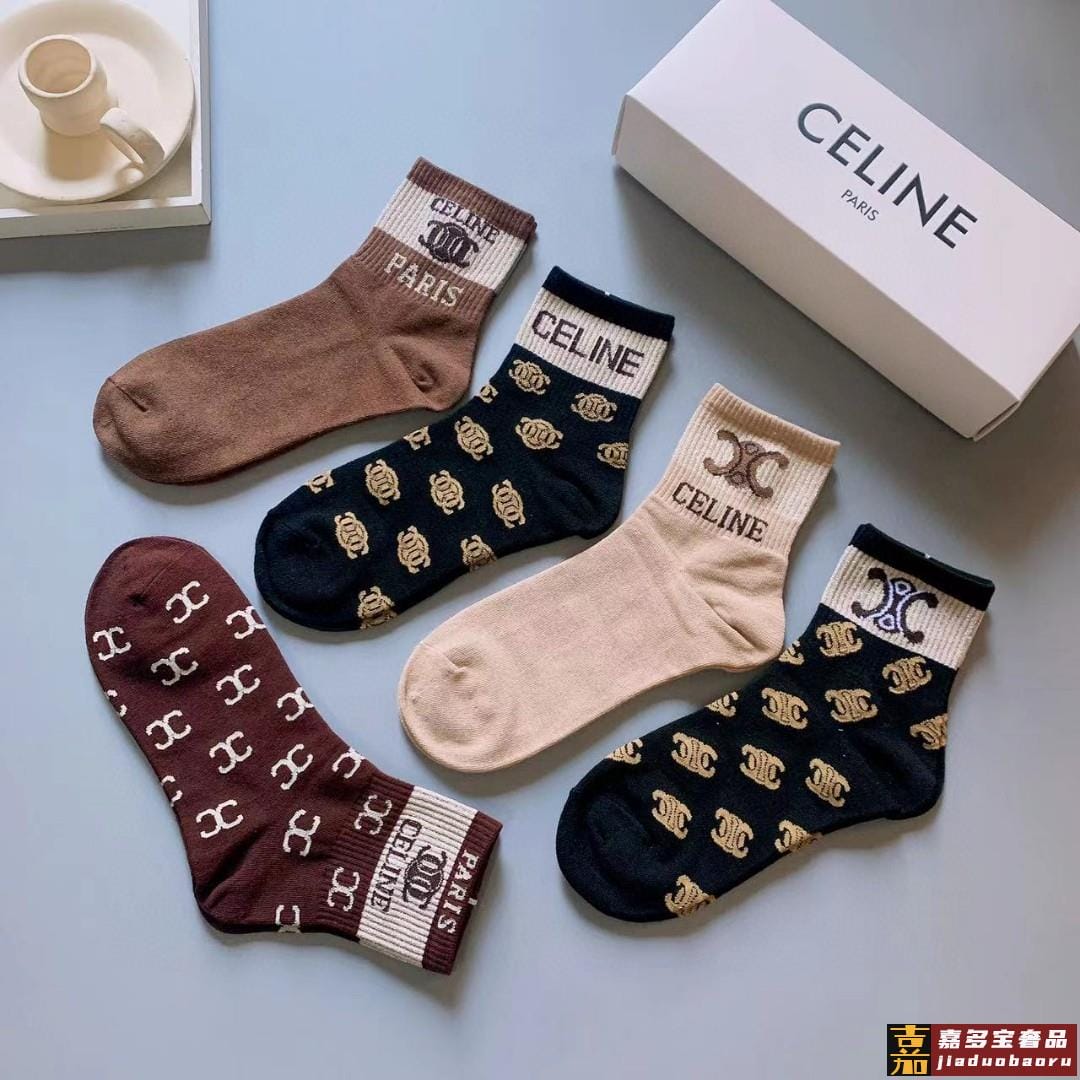 配包装一盒五双欧美大牌迪奥好看到爆炸欧美大牌中筒袜男女款潮人