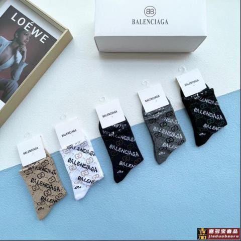 配包装一盒五双巴黎世家秋冬新品袜子经典品牌标志简单大气实物超