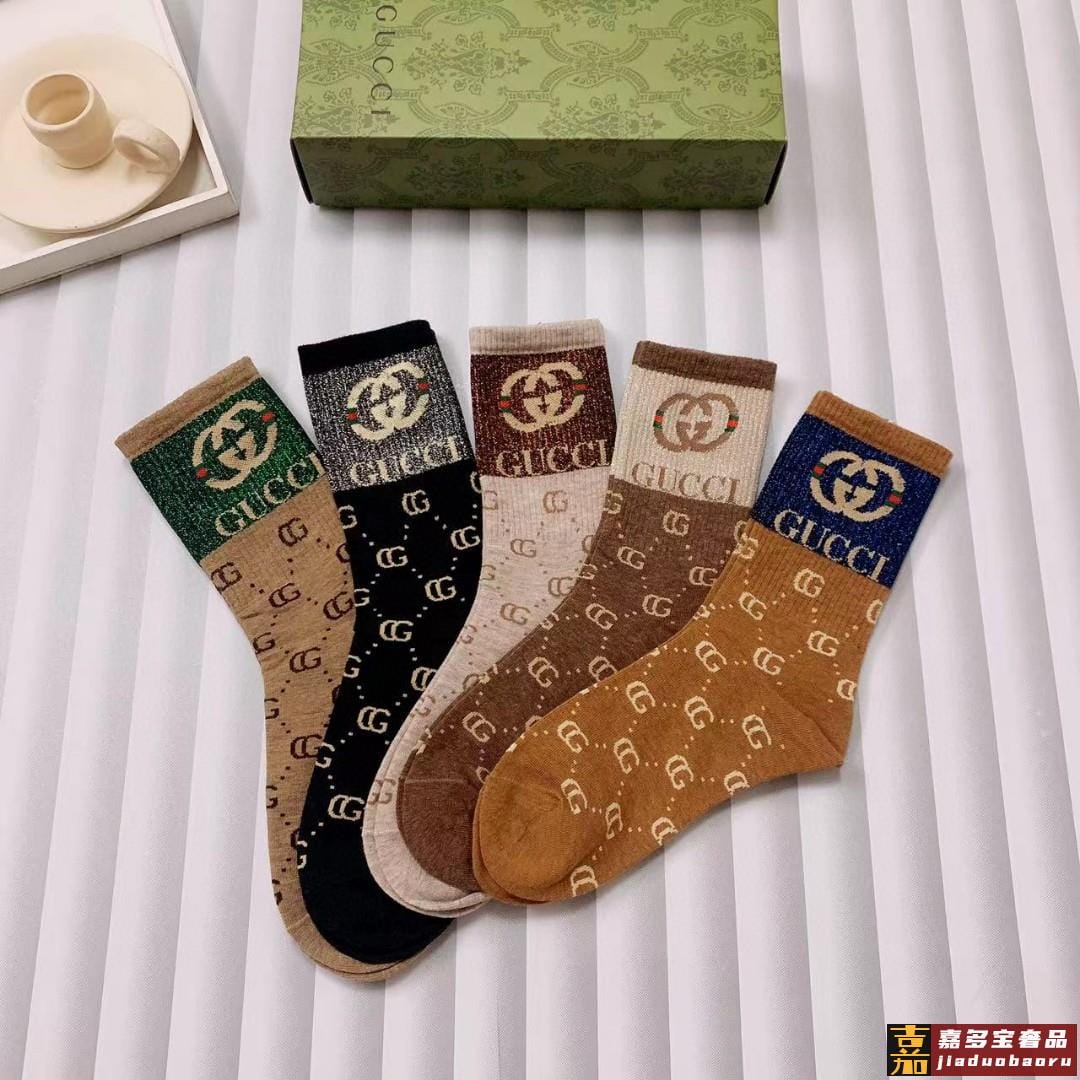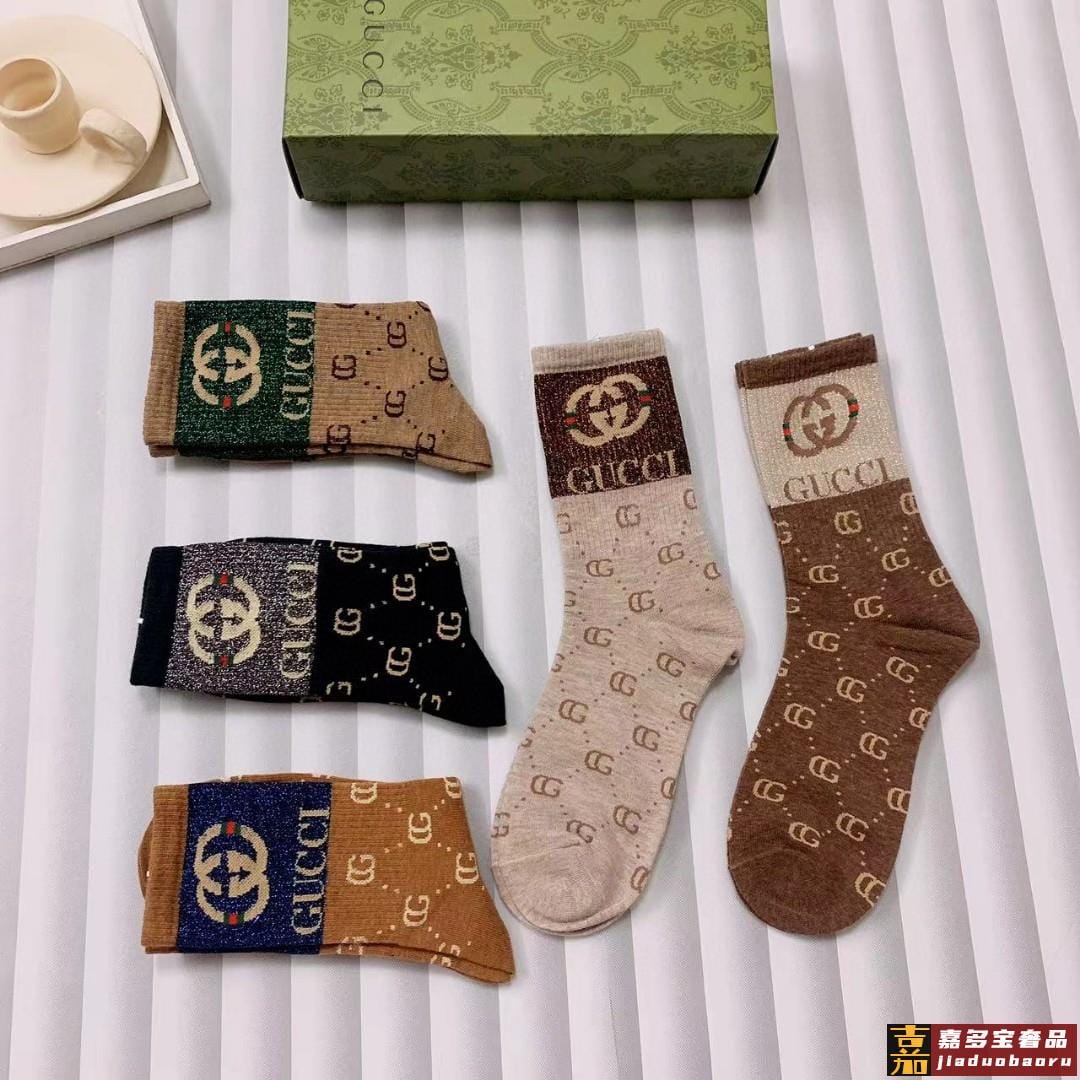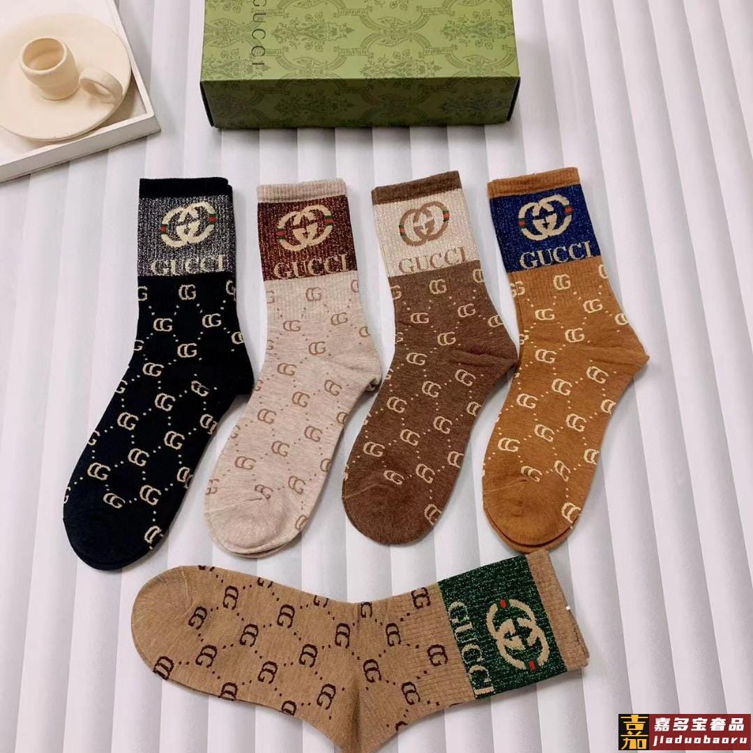 配包装一盒二双古奇超级爆款网红袜子大家官网同步双提花字母小腿