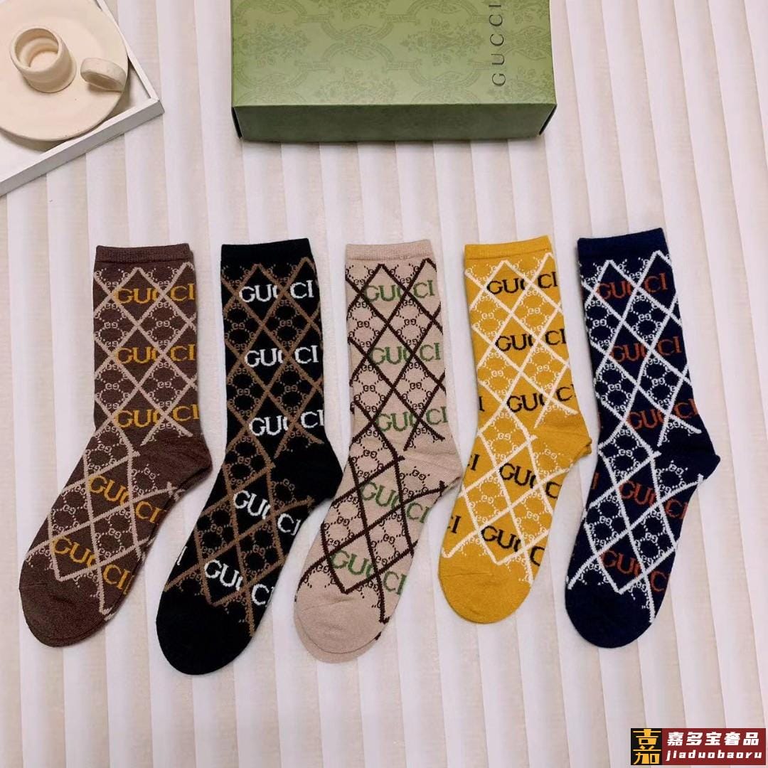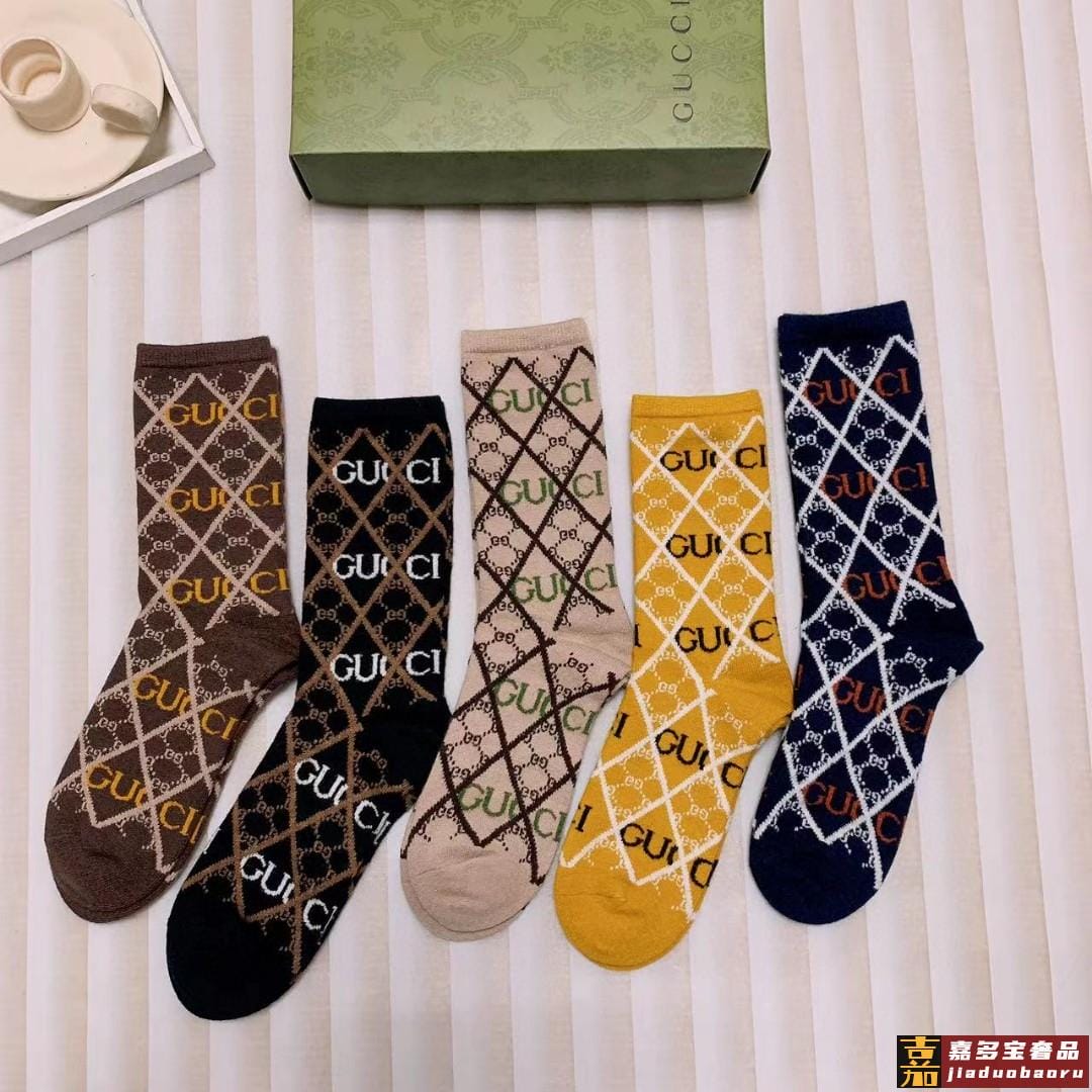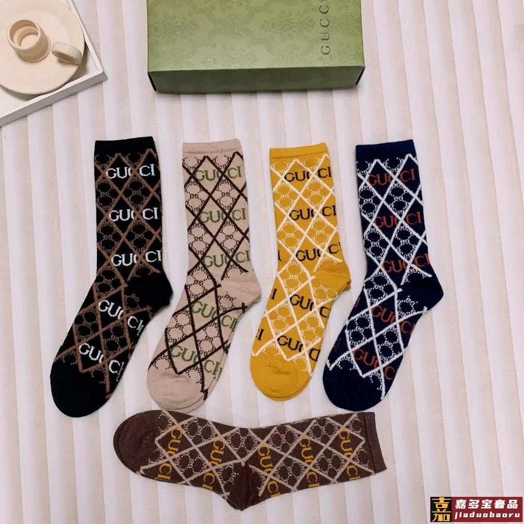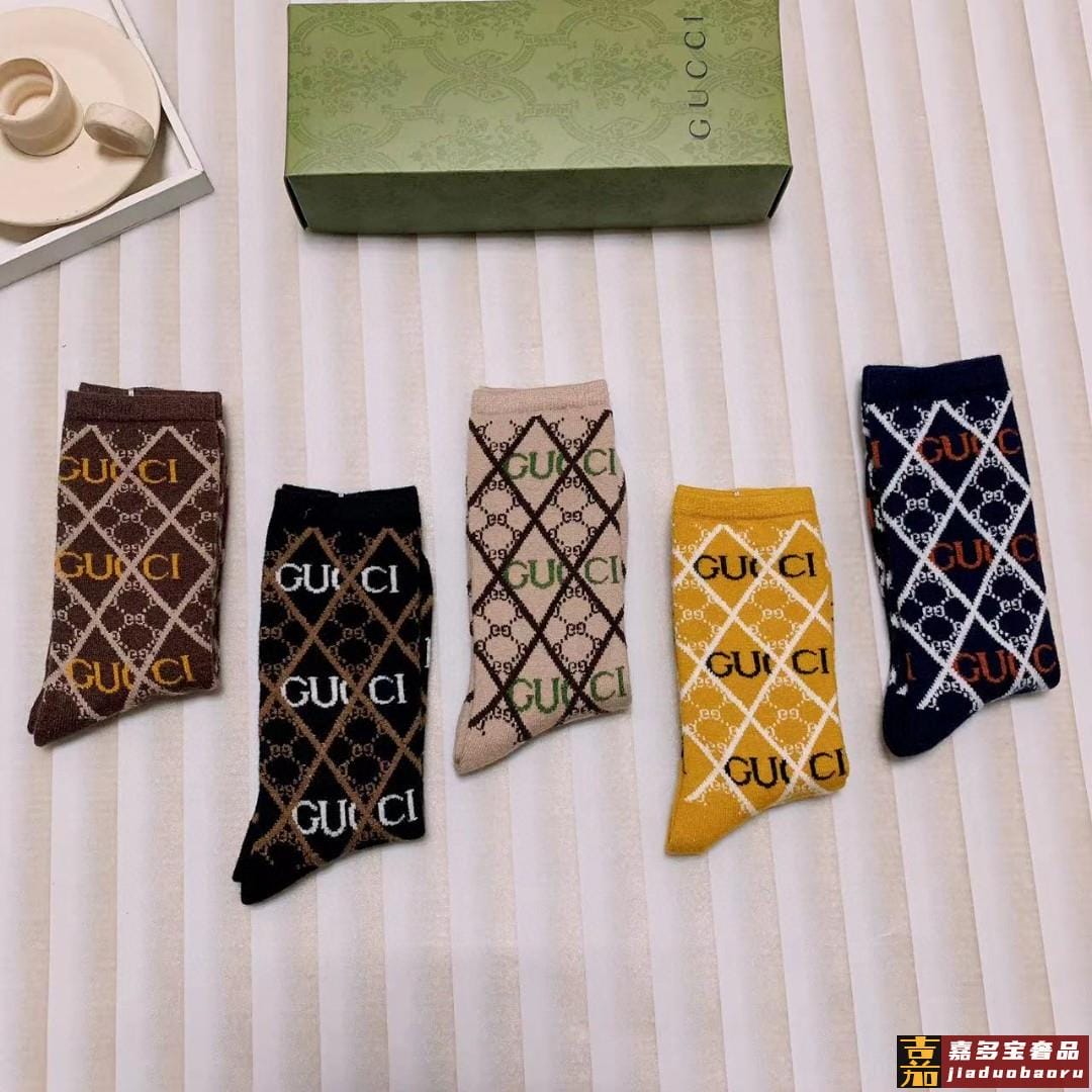 配包装一盒二双古奇超级爆款网红袜子大家官网同步双提花字母小腿