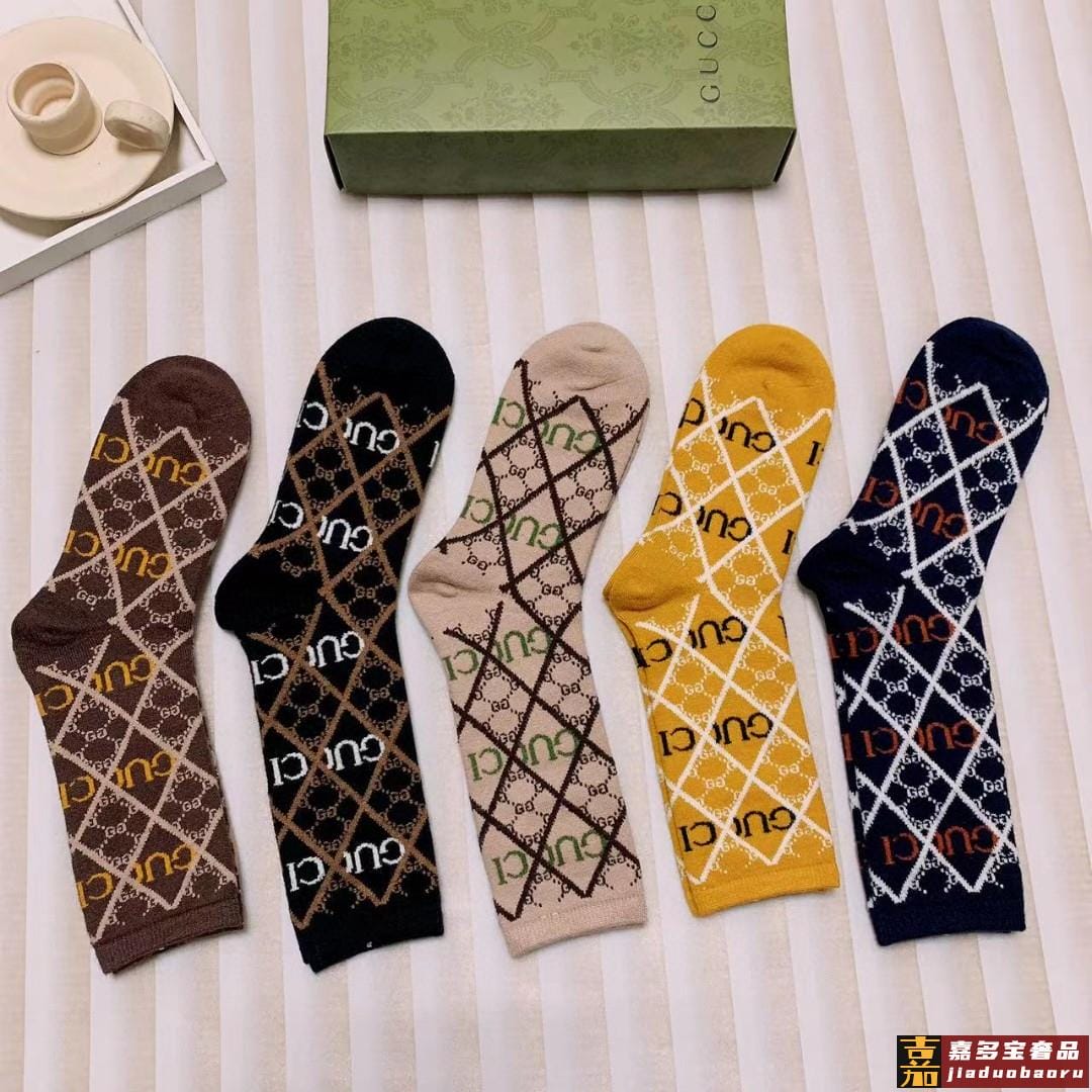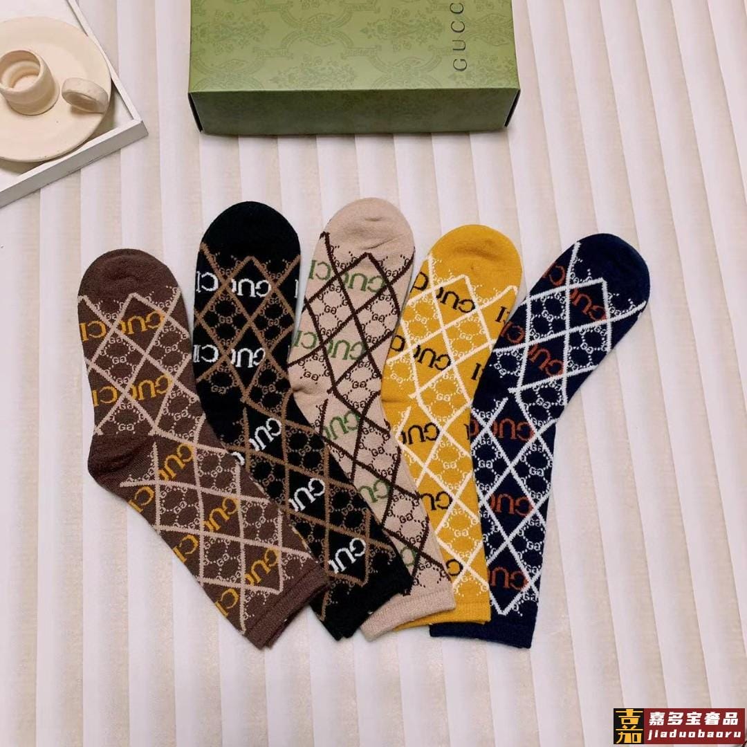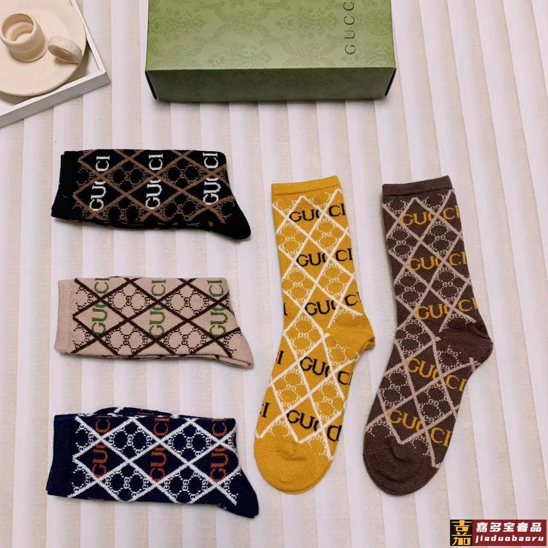 配包装一盒双古奇新款小腿袜子纯棉面料火爆图案专柜同步中短筒袜