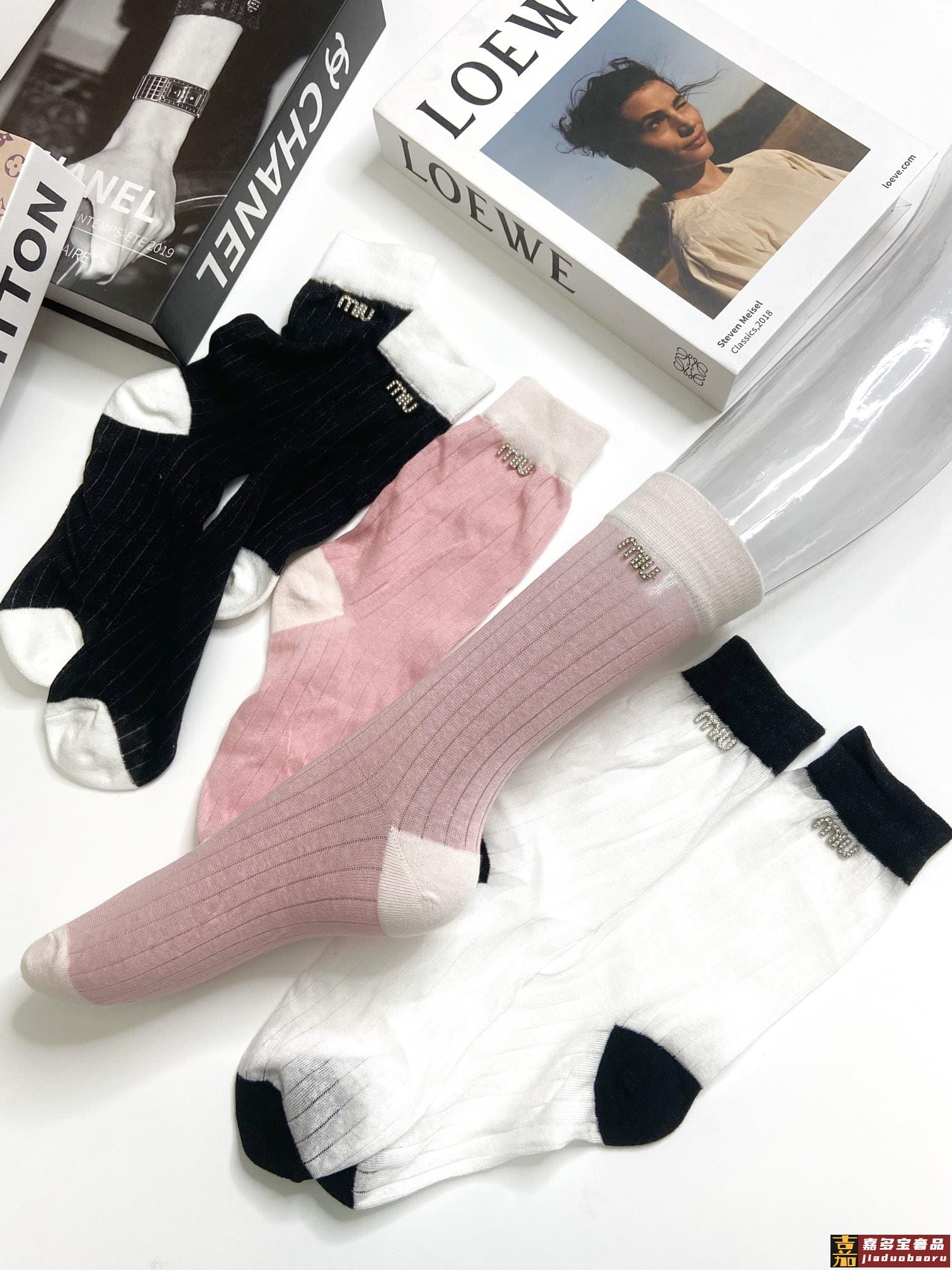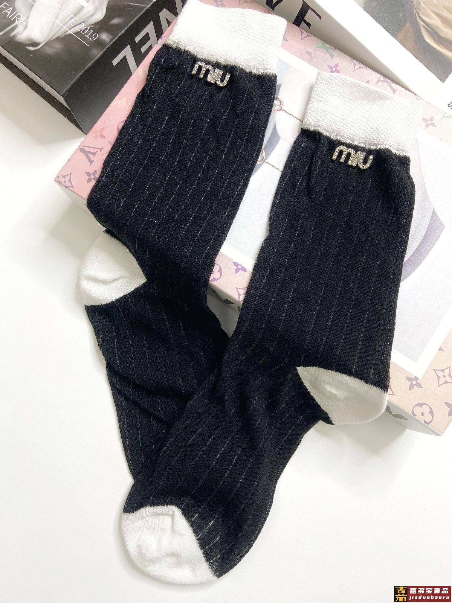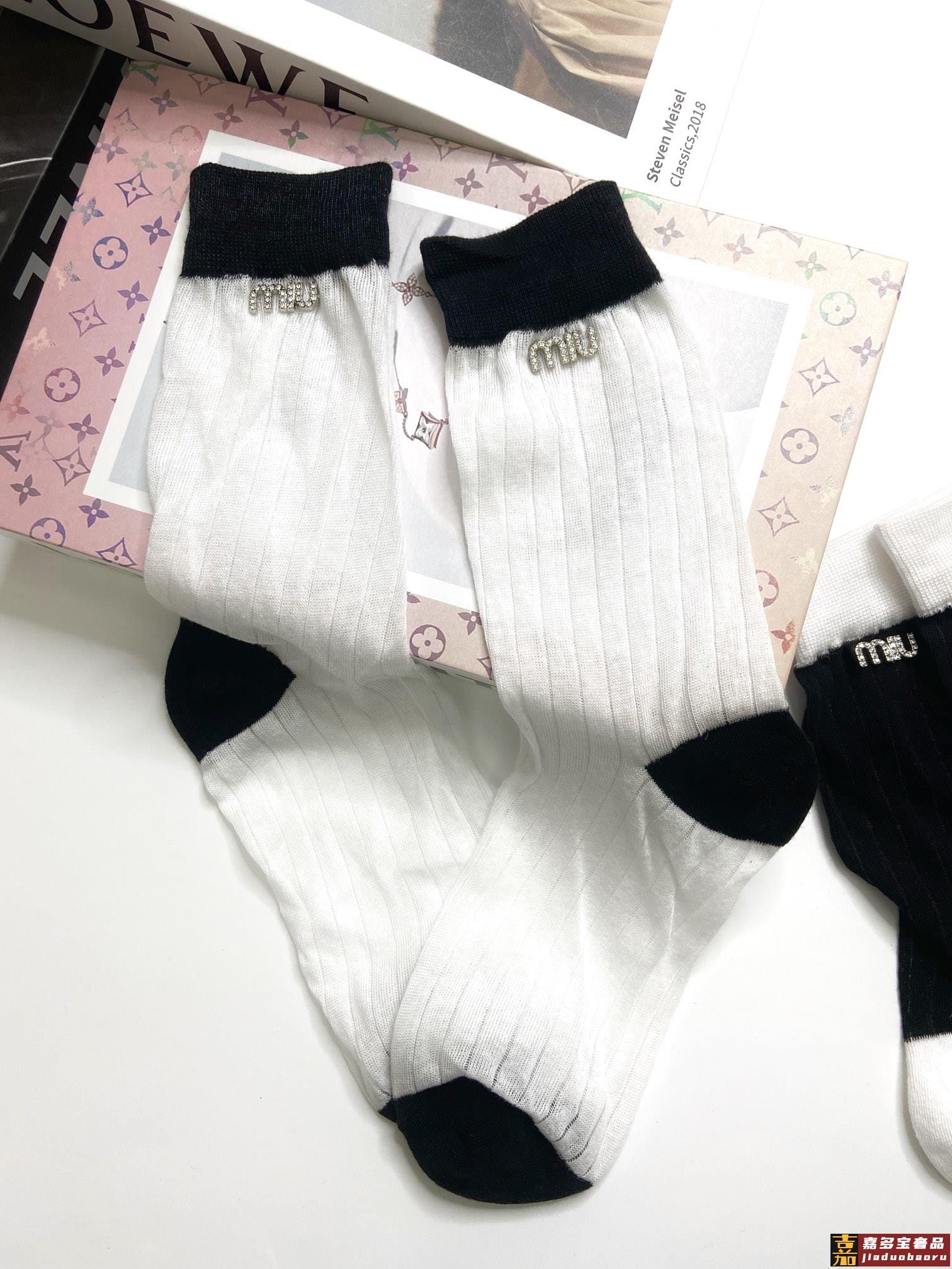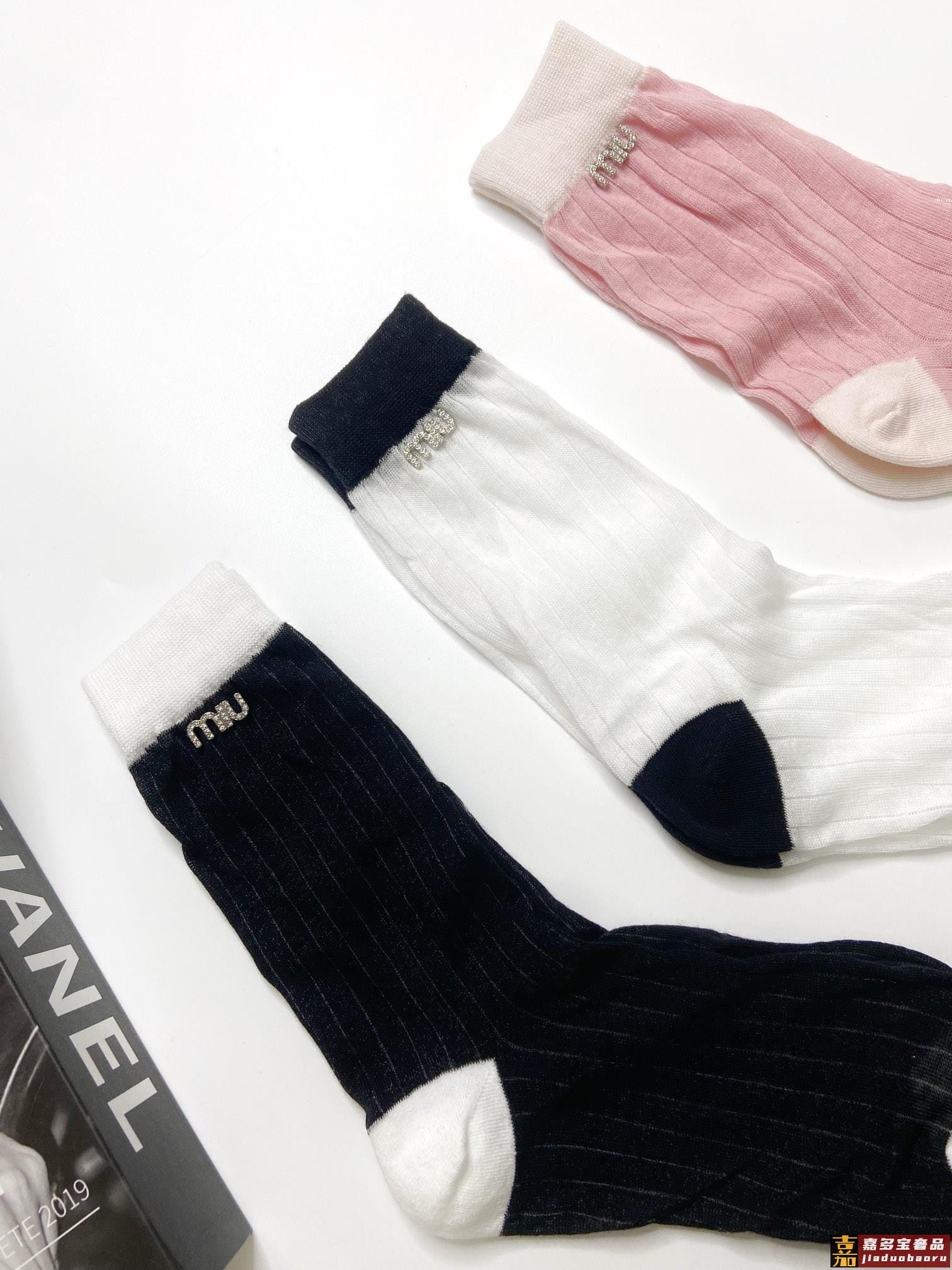 配包装一盒双缪缪经典字母纯棉中筒袜重工装饰个性时尚爆款专柜在