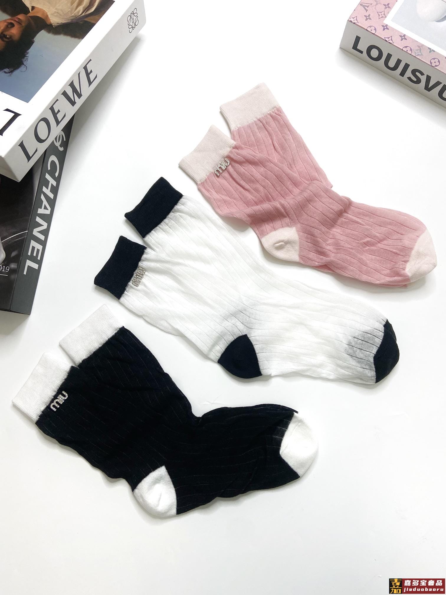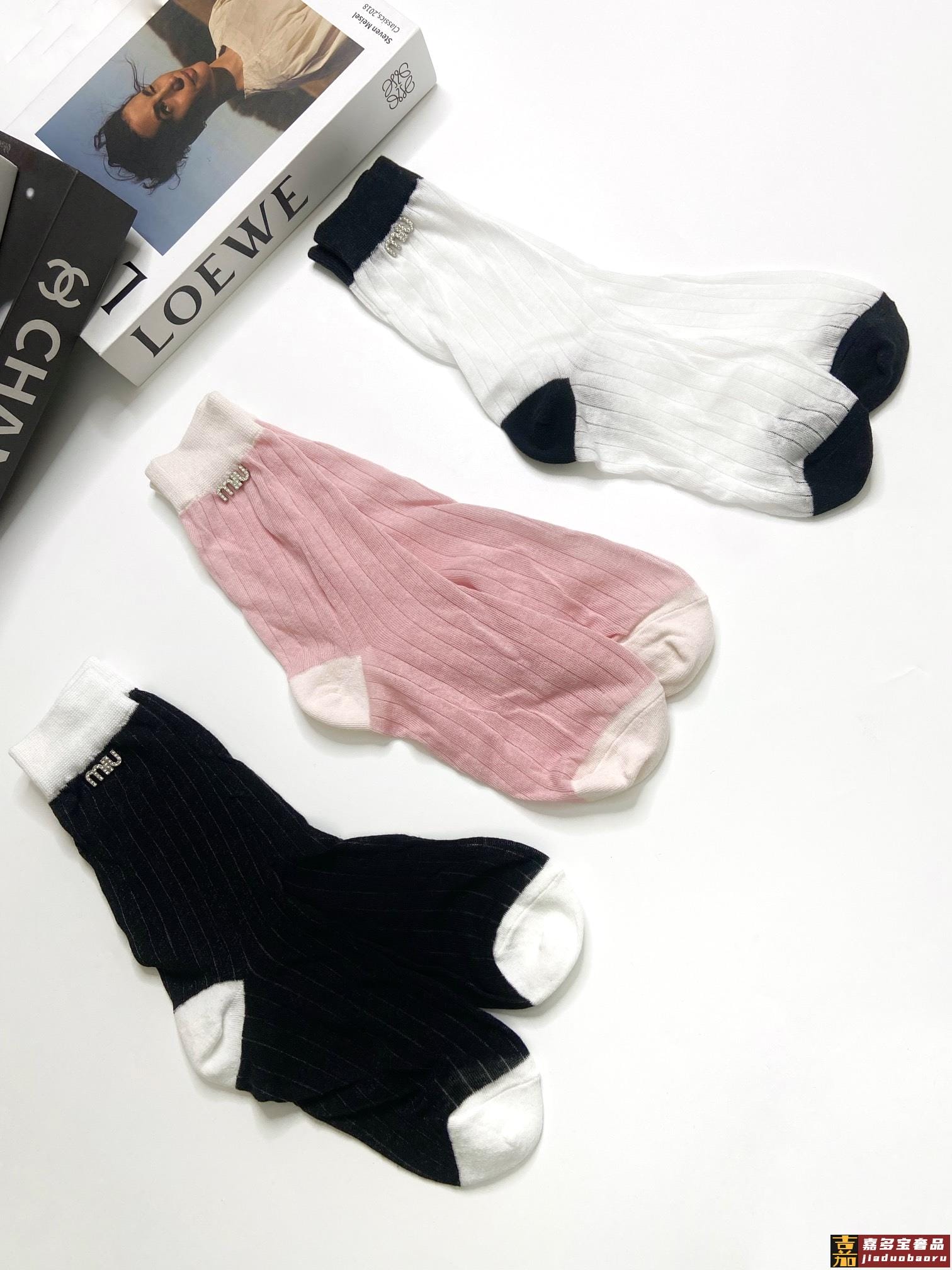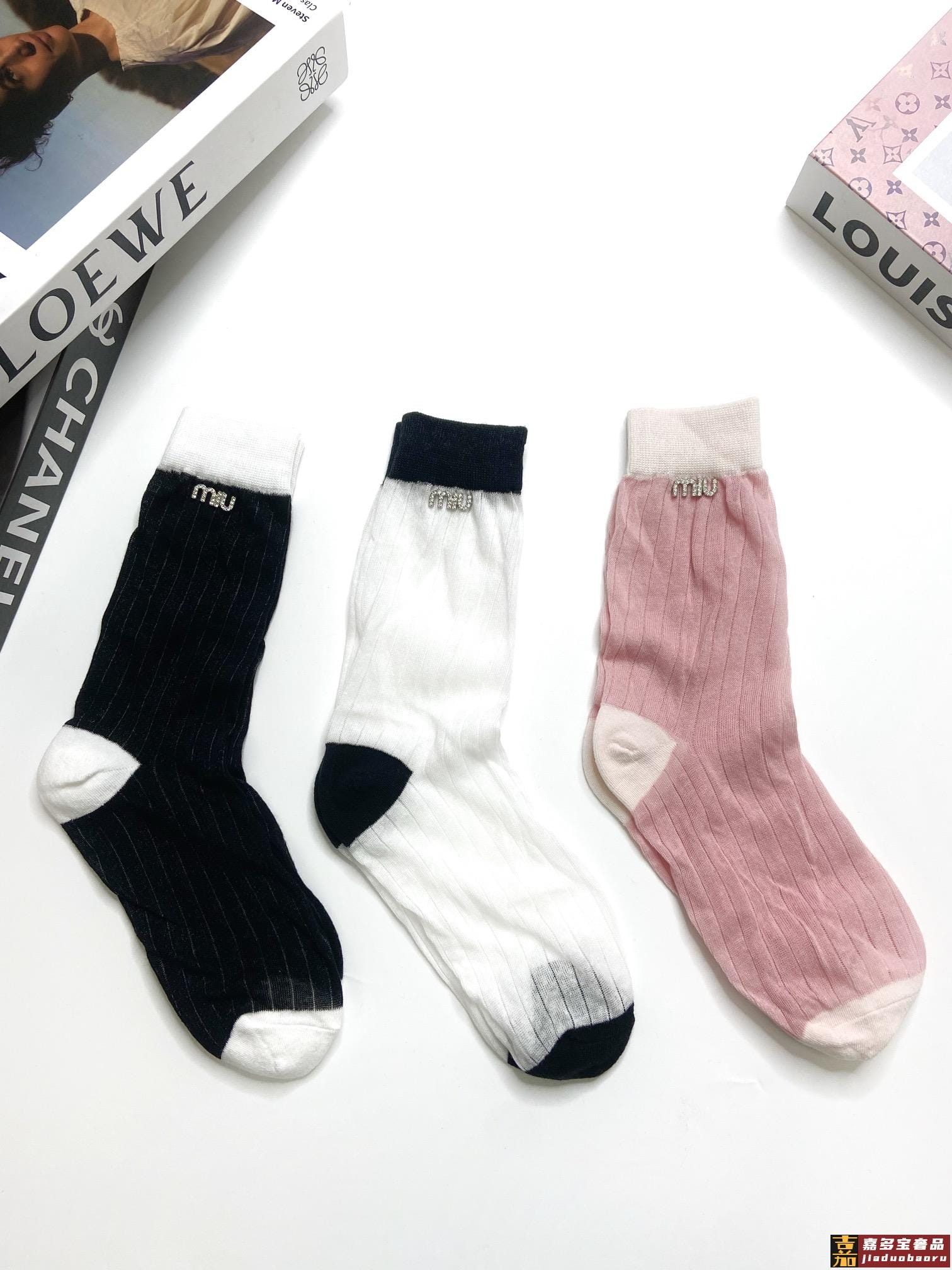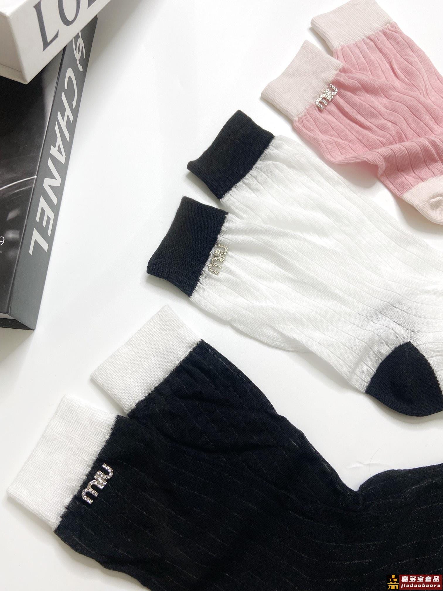 配包装一盒双缪缪经典字母纯棉中筒袜重工装饰个性时尚爆款专柜在