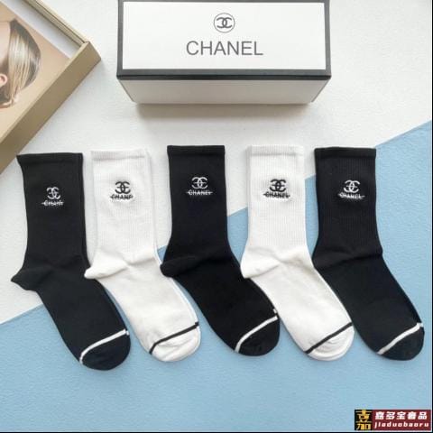 配包装一盒五双香奈儿香奶奶家新品女长款袜子袜身提花经典标志简
