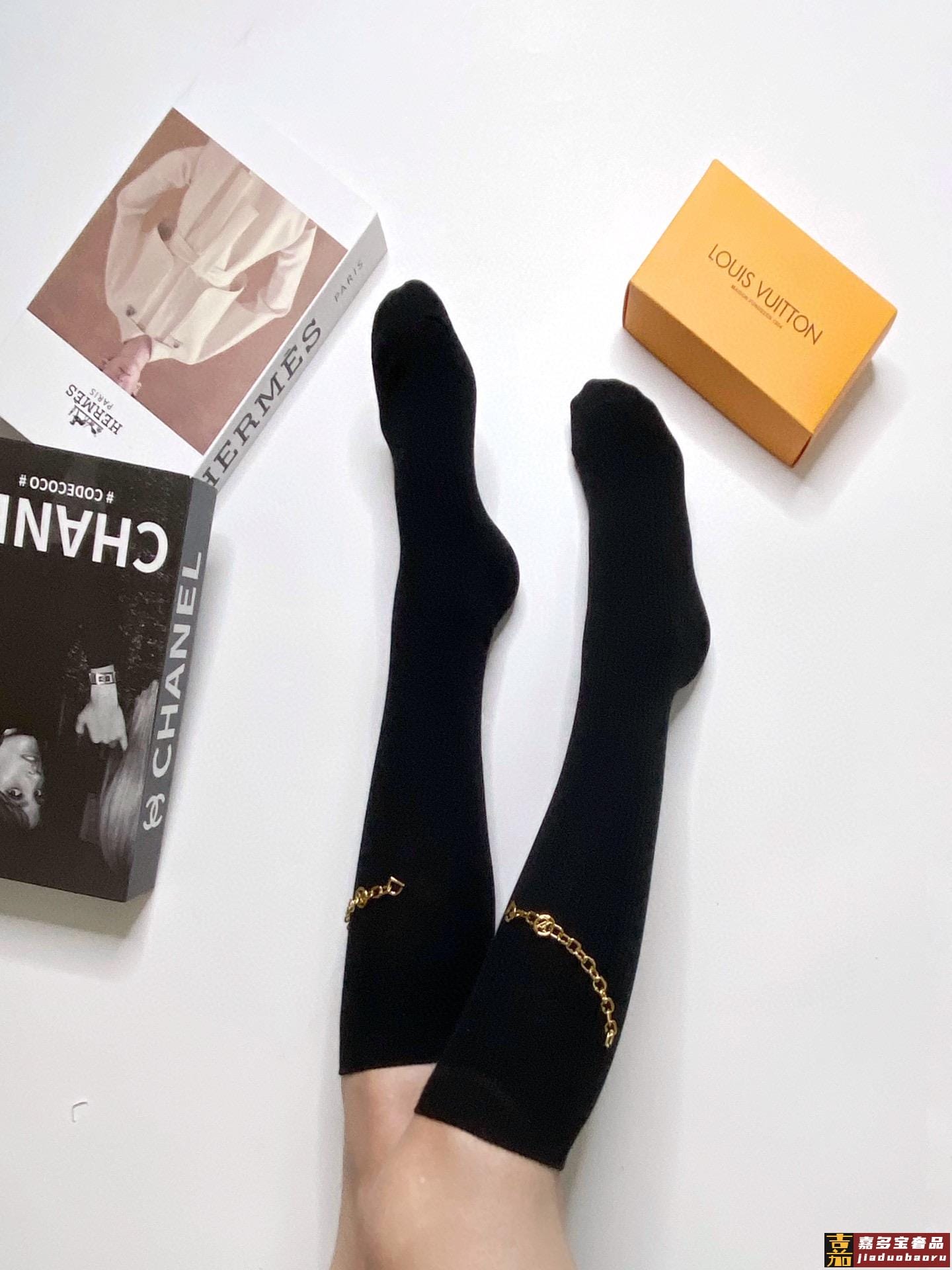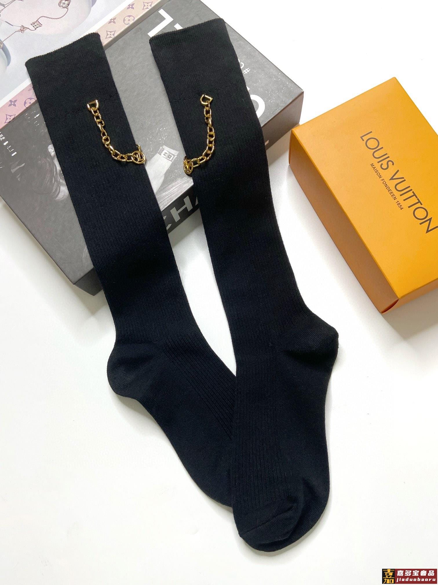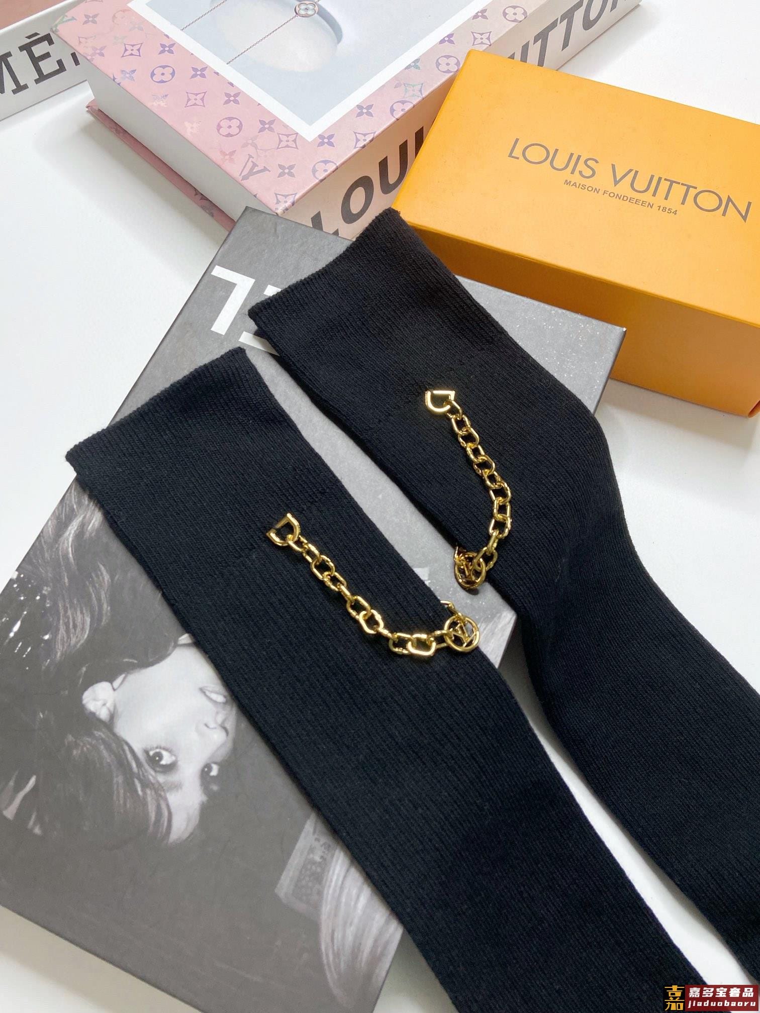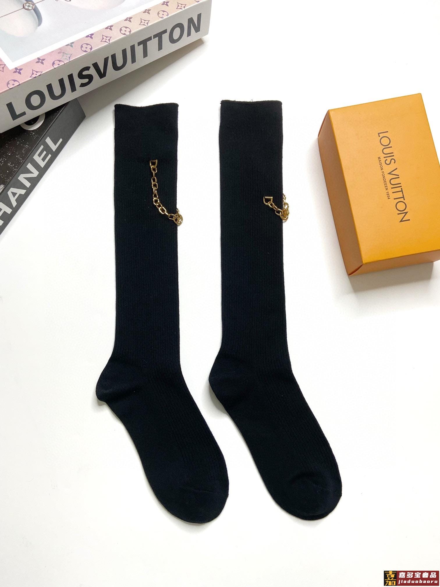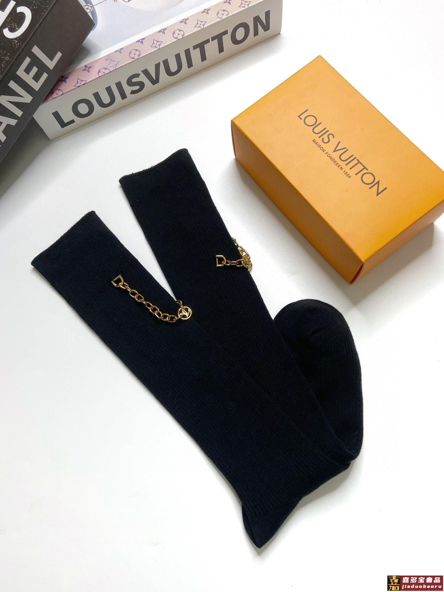 配包装一盒一双路易威登经典字母纯棉长筒袜小腿袜重工装饰个性时