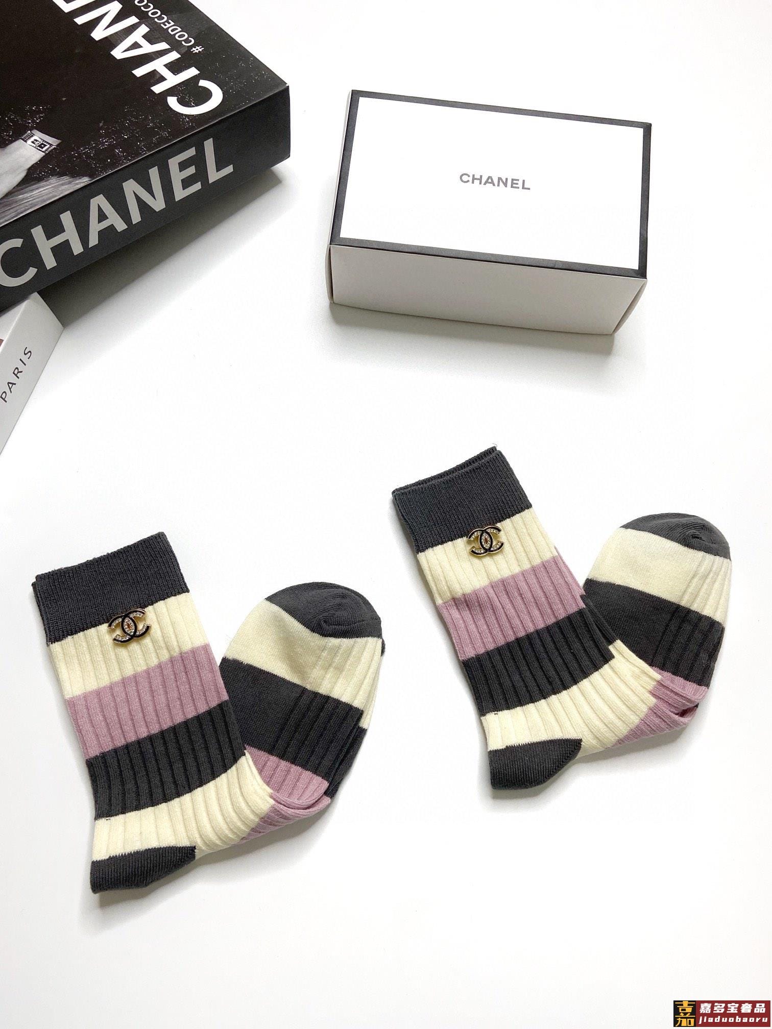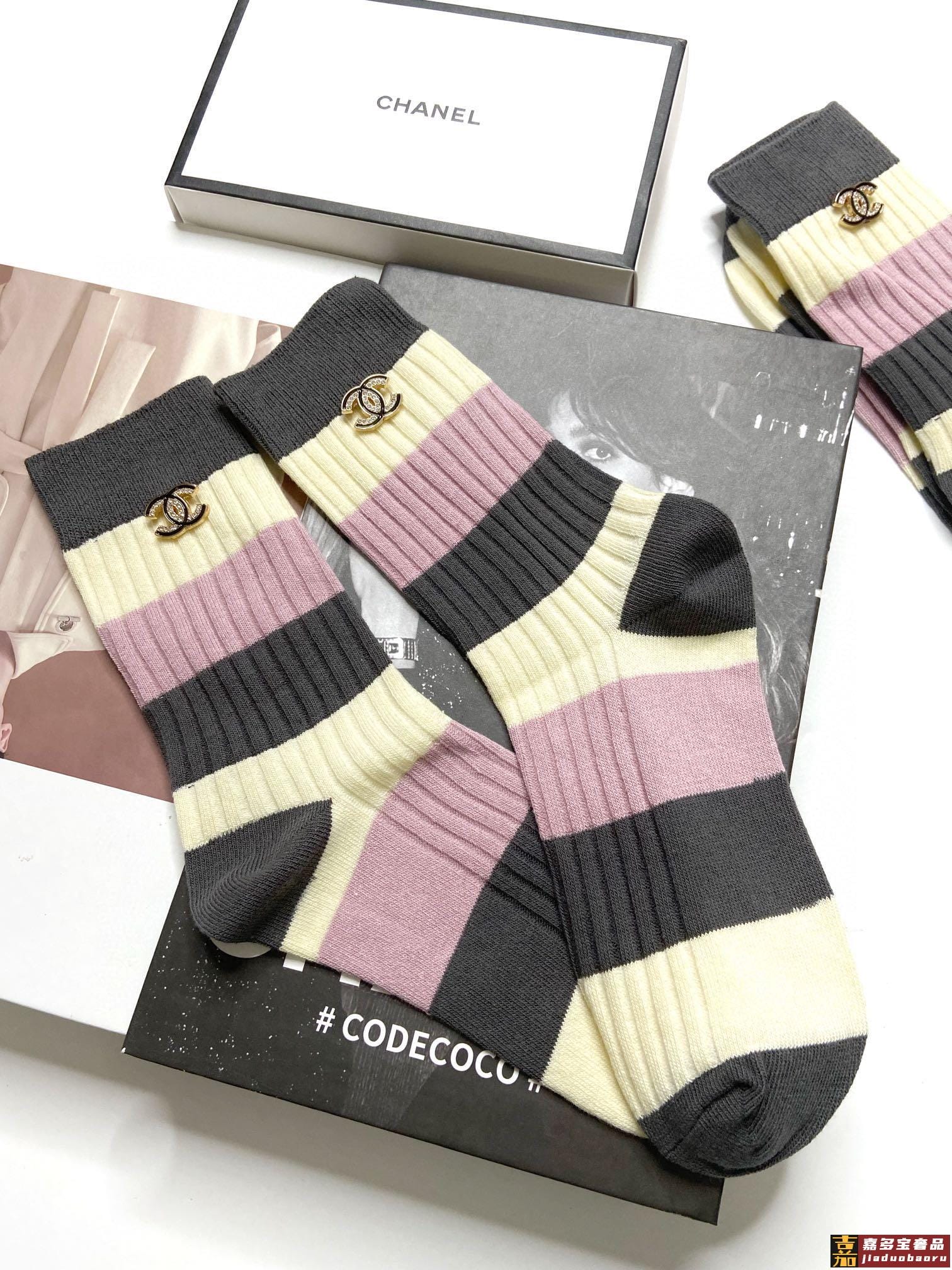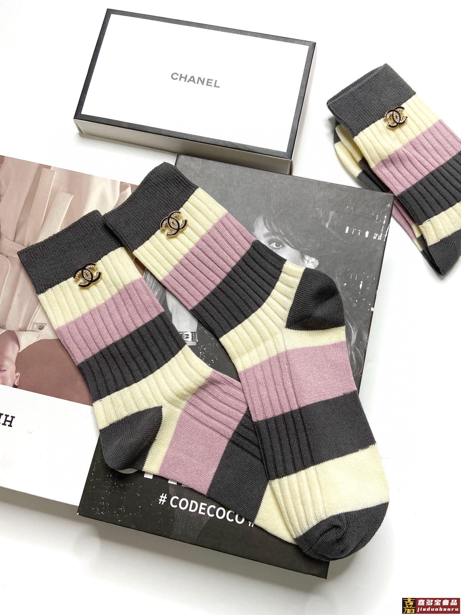 配包装一盒五双香奈儿香奶奶家新品女长款袜子袜身提花经典标志简