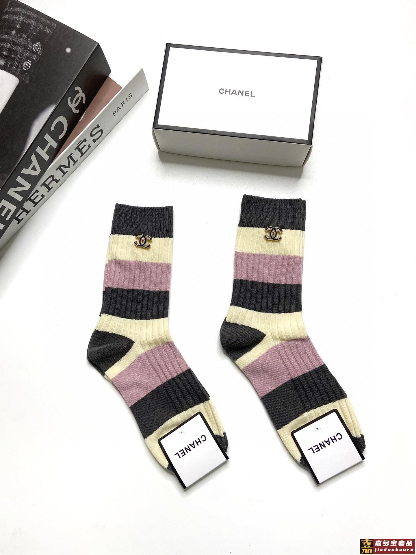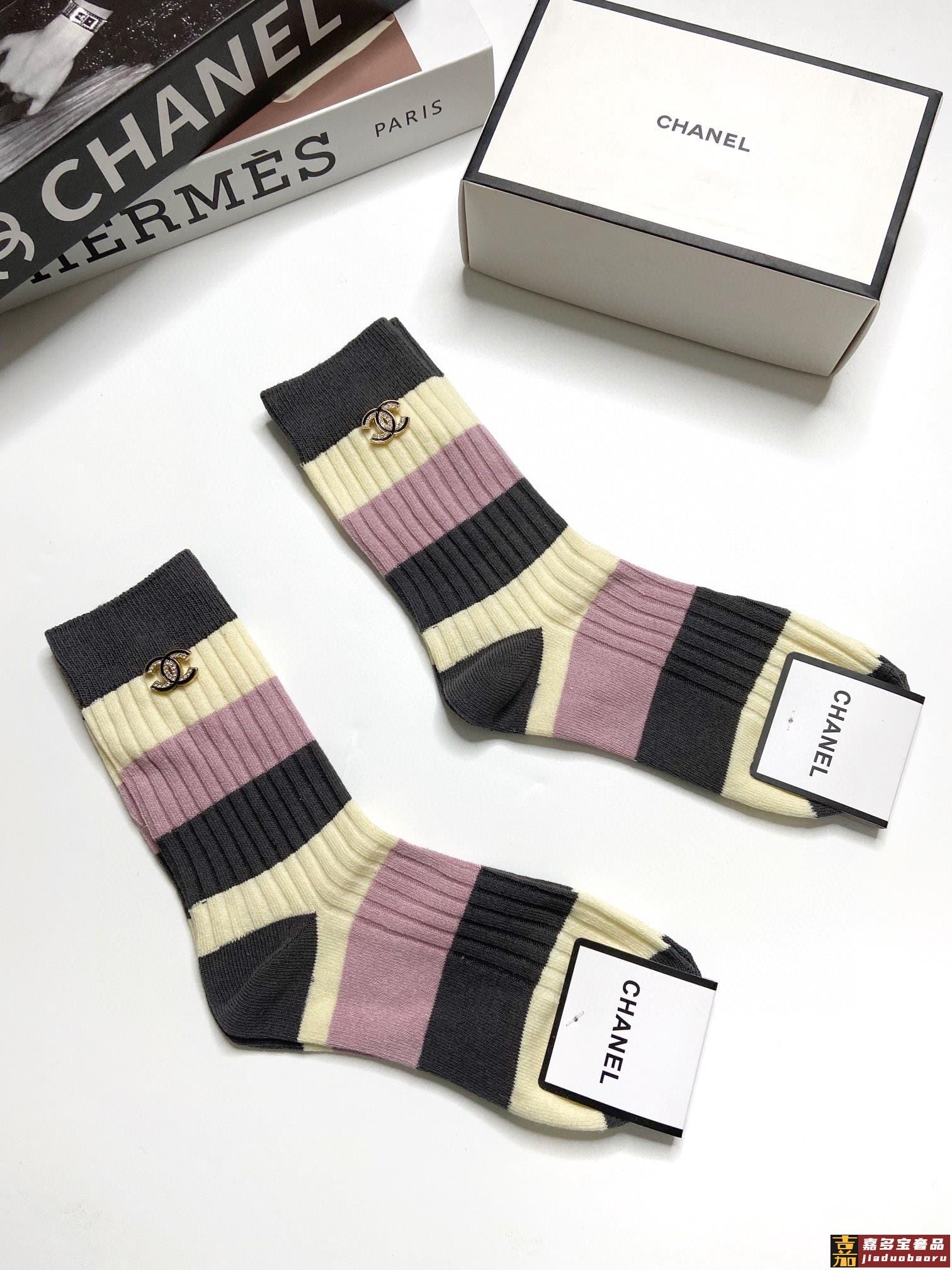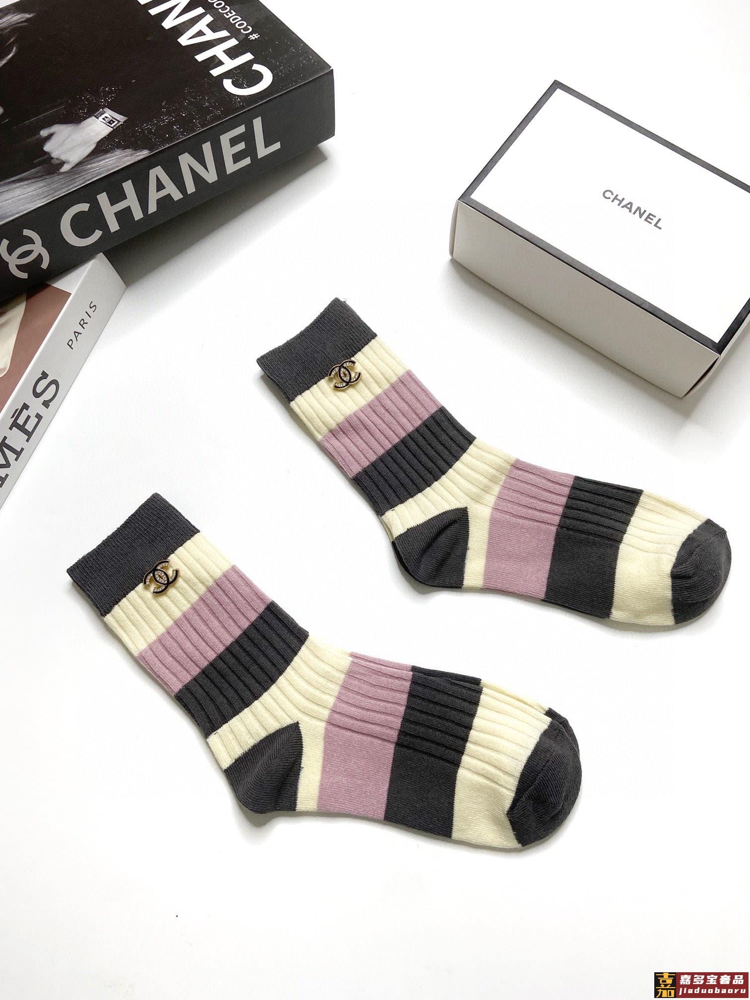 配包装一盒五双香奈儿香奶奶家新品女长款袜子袜身提花经典标志简