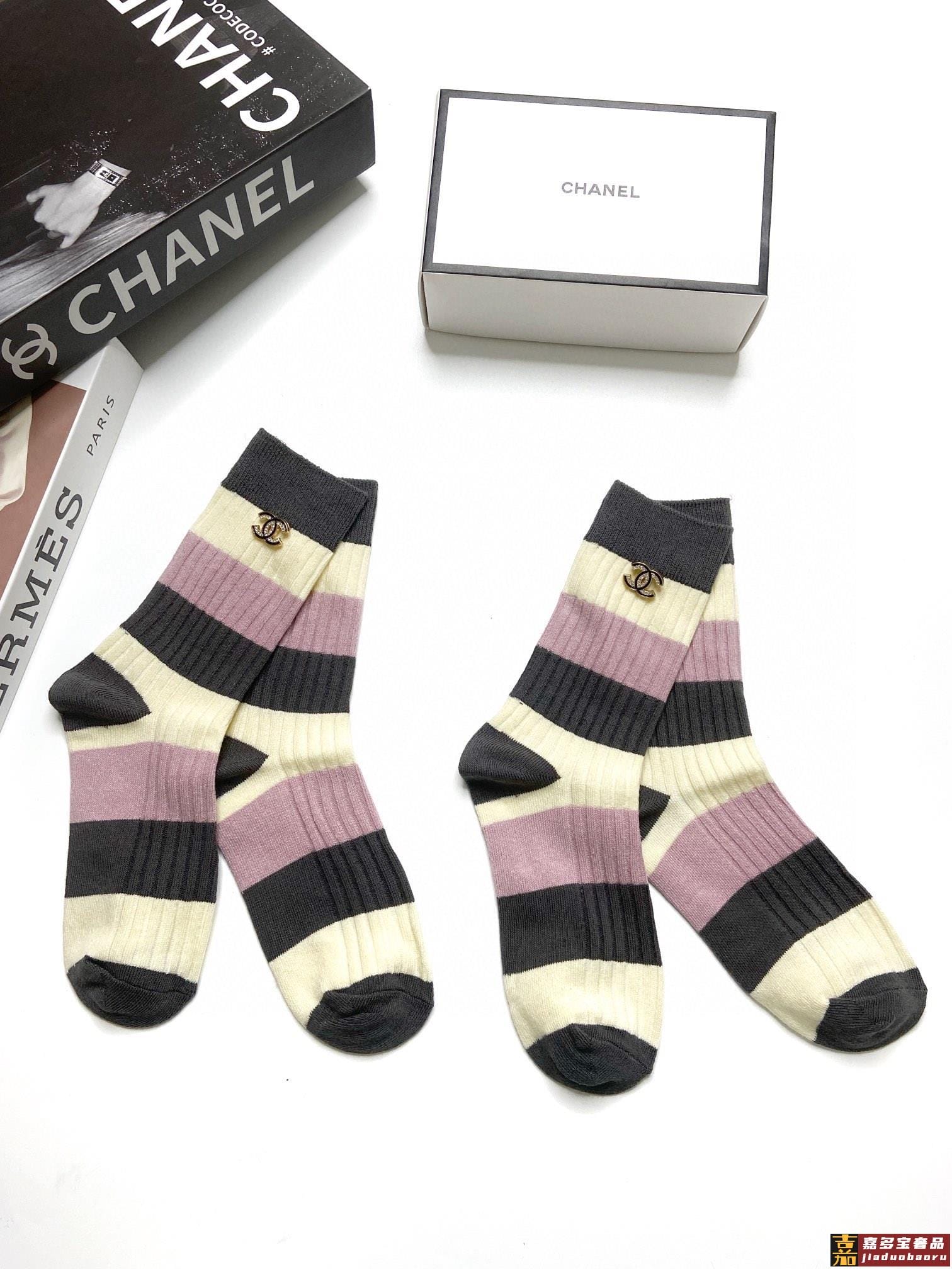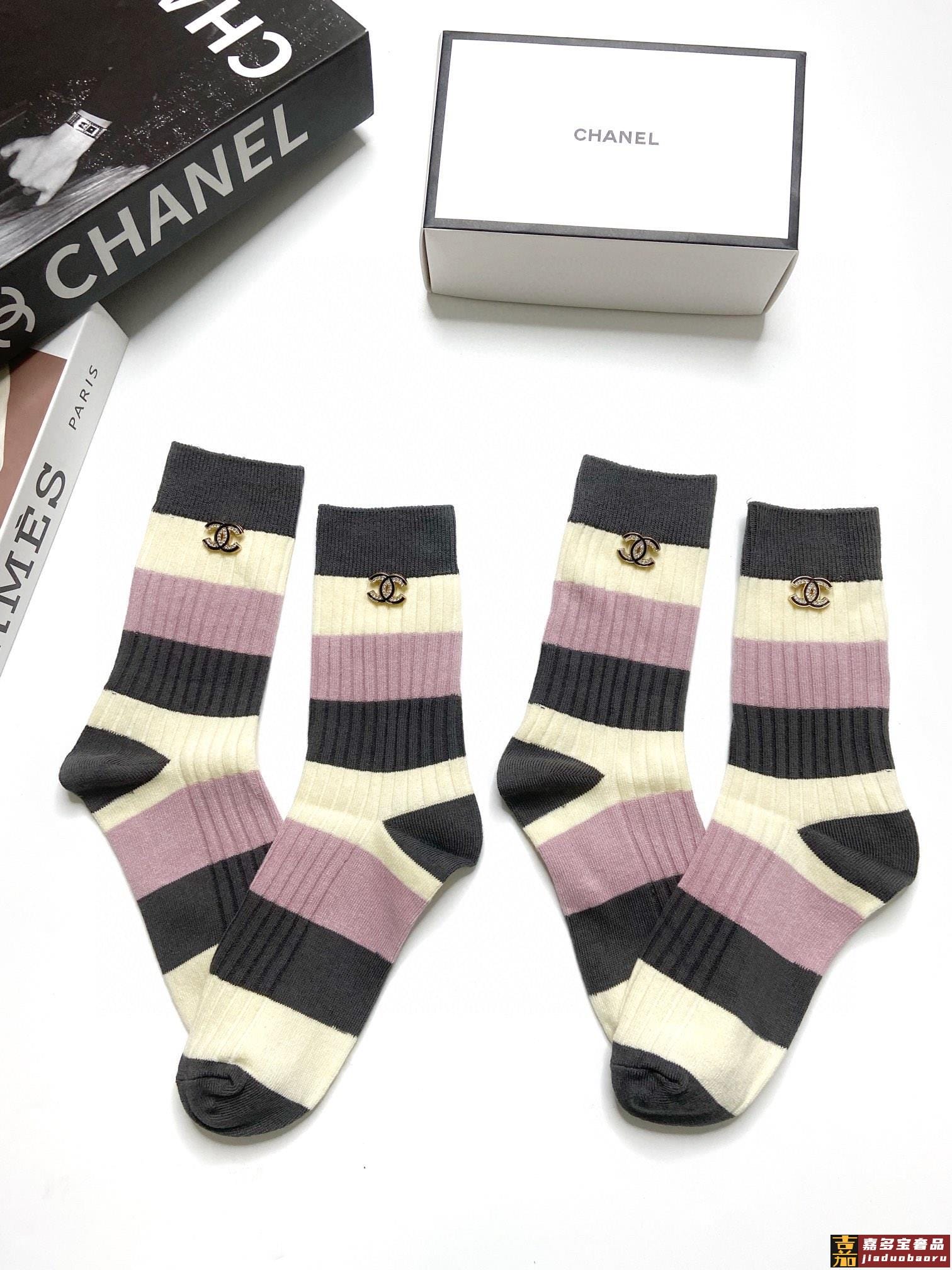 配包装一盒双香奈儿经典双字母纯棉中筒袜重工装饰个性时尚爆款专