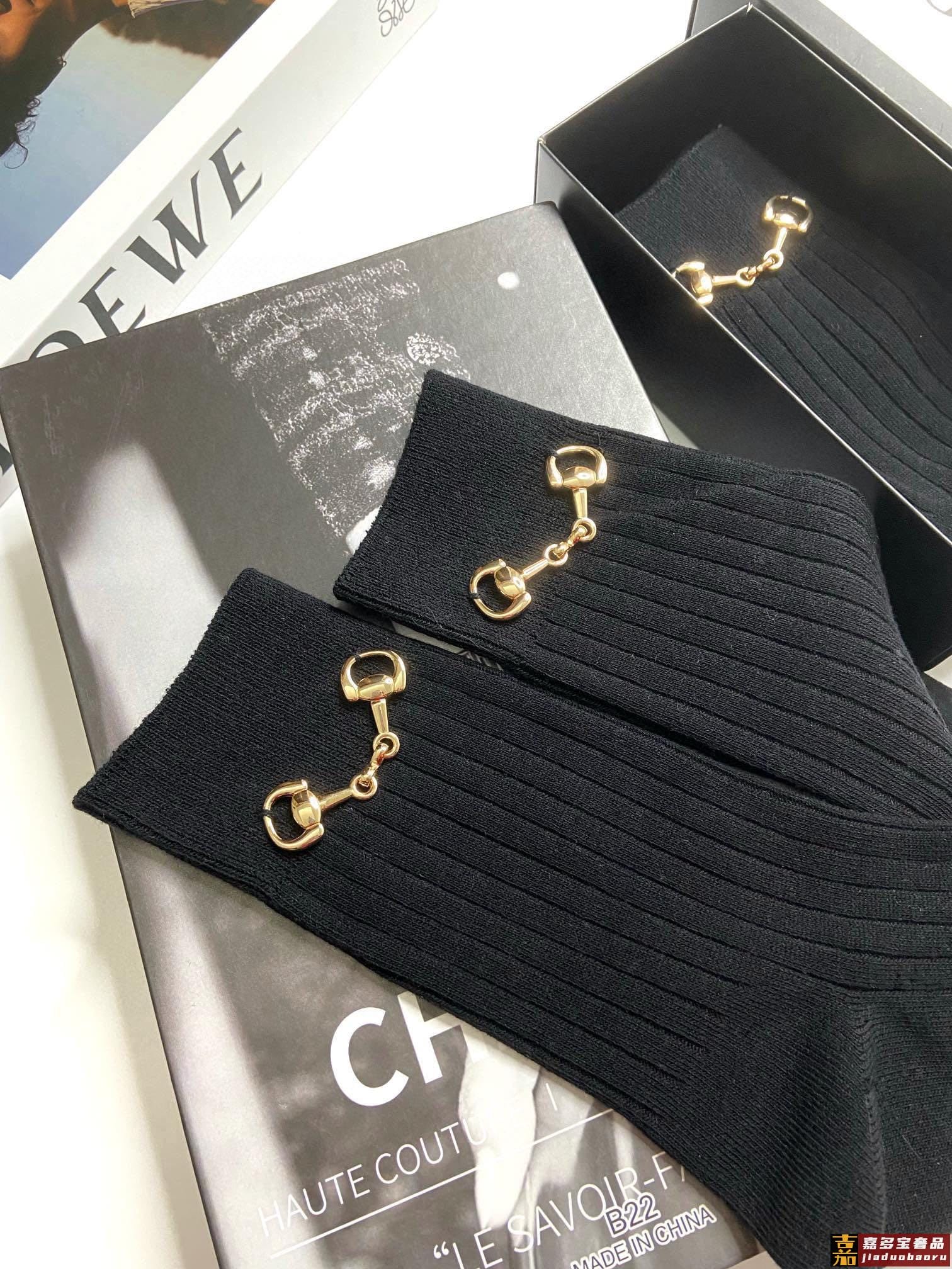 配包装一盒双古琦经典马鞍扣纯棉中筒袜爆款专柜在售好看到爆炸超