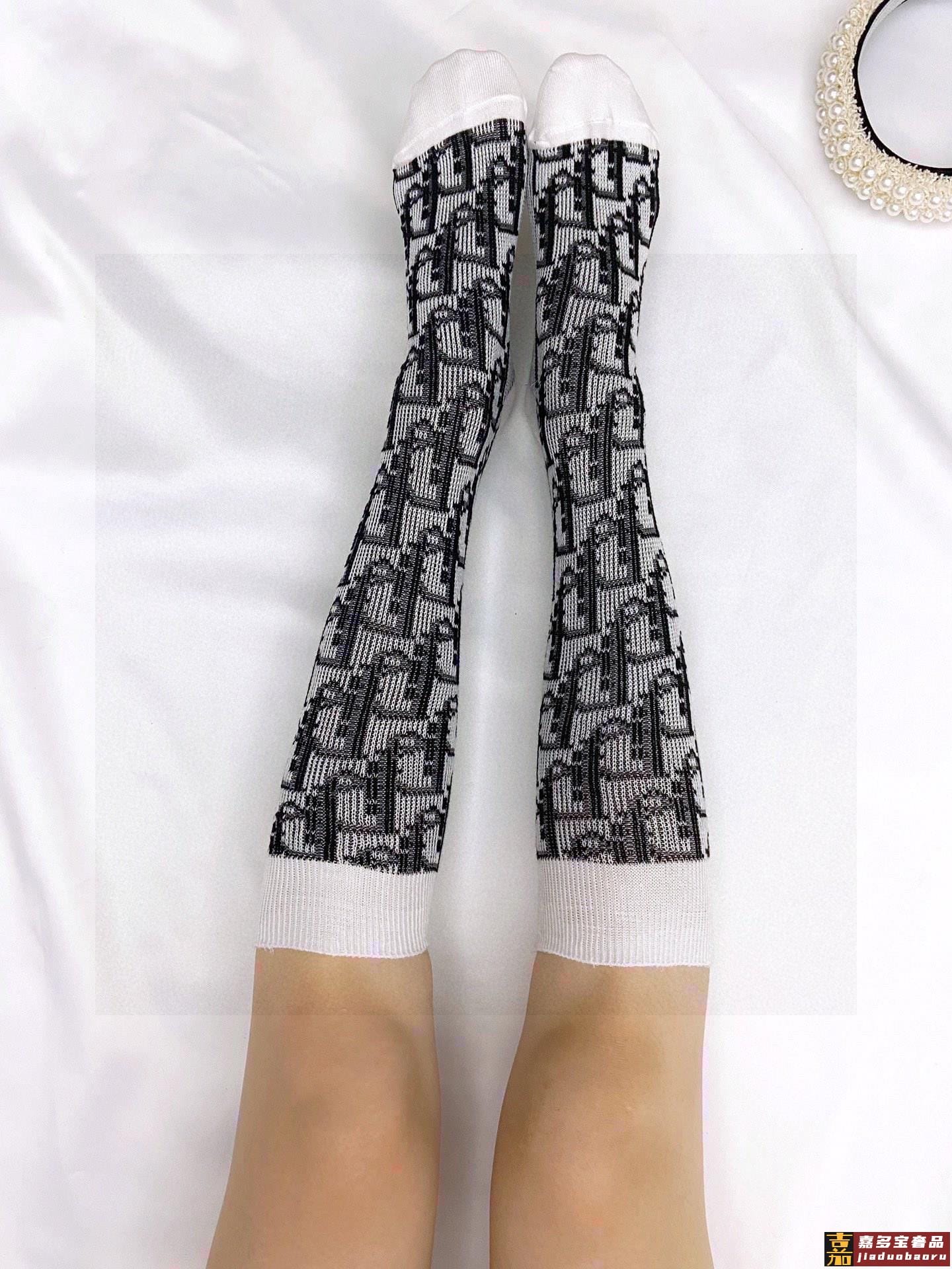 配包装一盒双颜色任选迪奥棉混纺网眼中筒袜小腿袜爆款专柜在售高