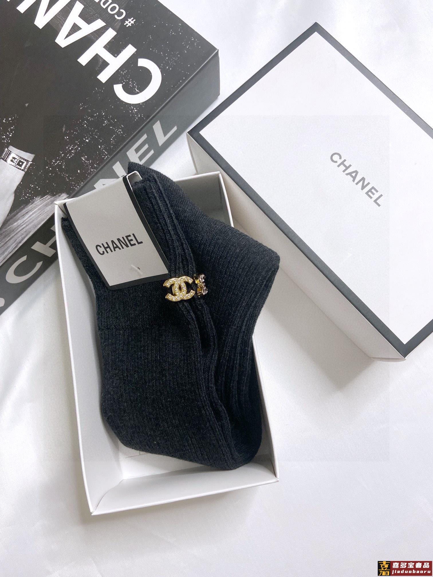 配包装一盒双香奈儿经典双字母纯棉中筒袜重工装饰个性时尚爆款专