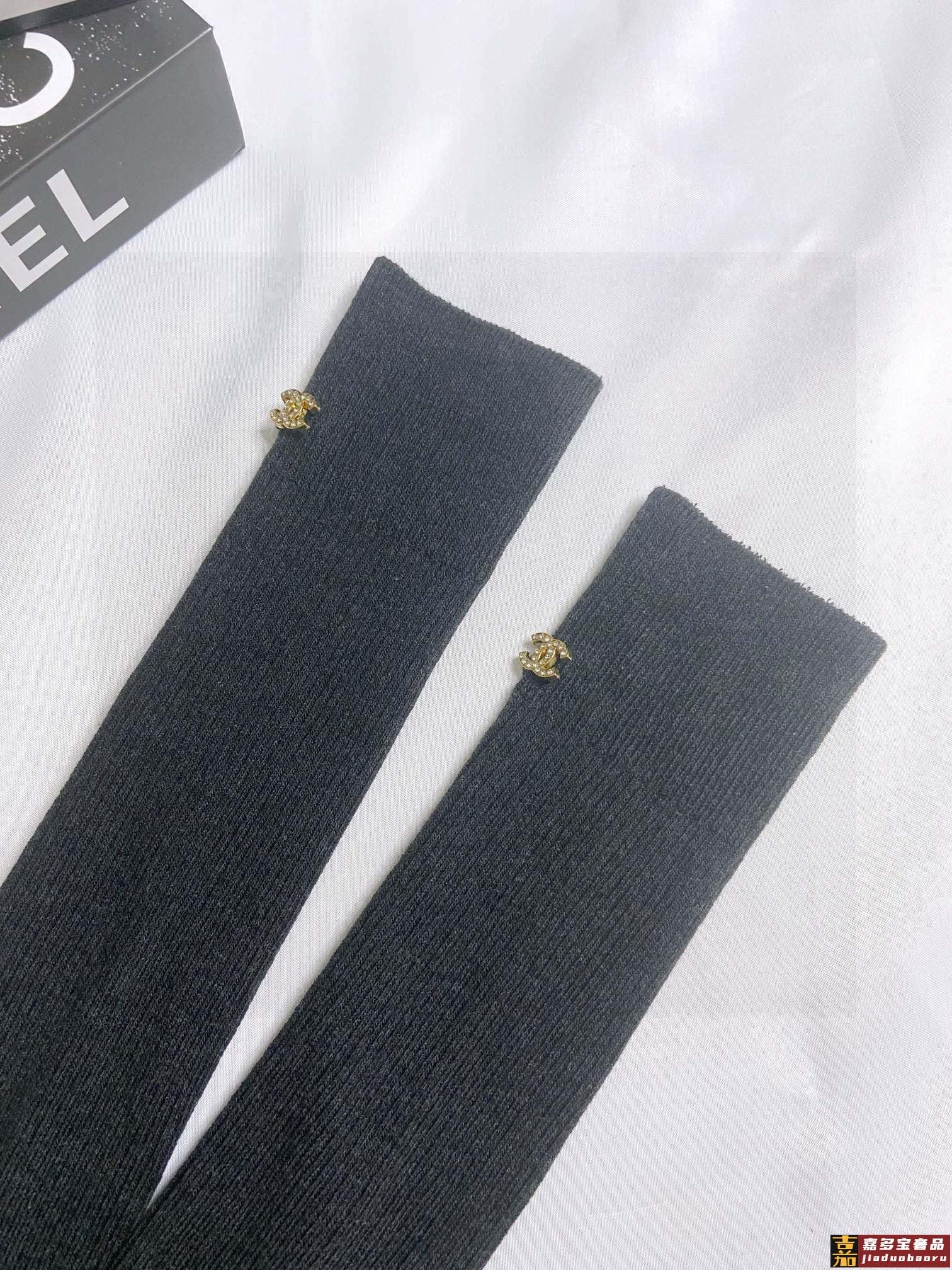 配包装一盒一双香奈儿经典字母纯棉长筒袜小腿袜重工装饰个性时尚