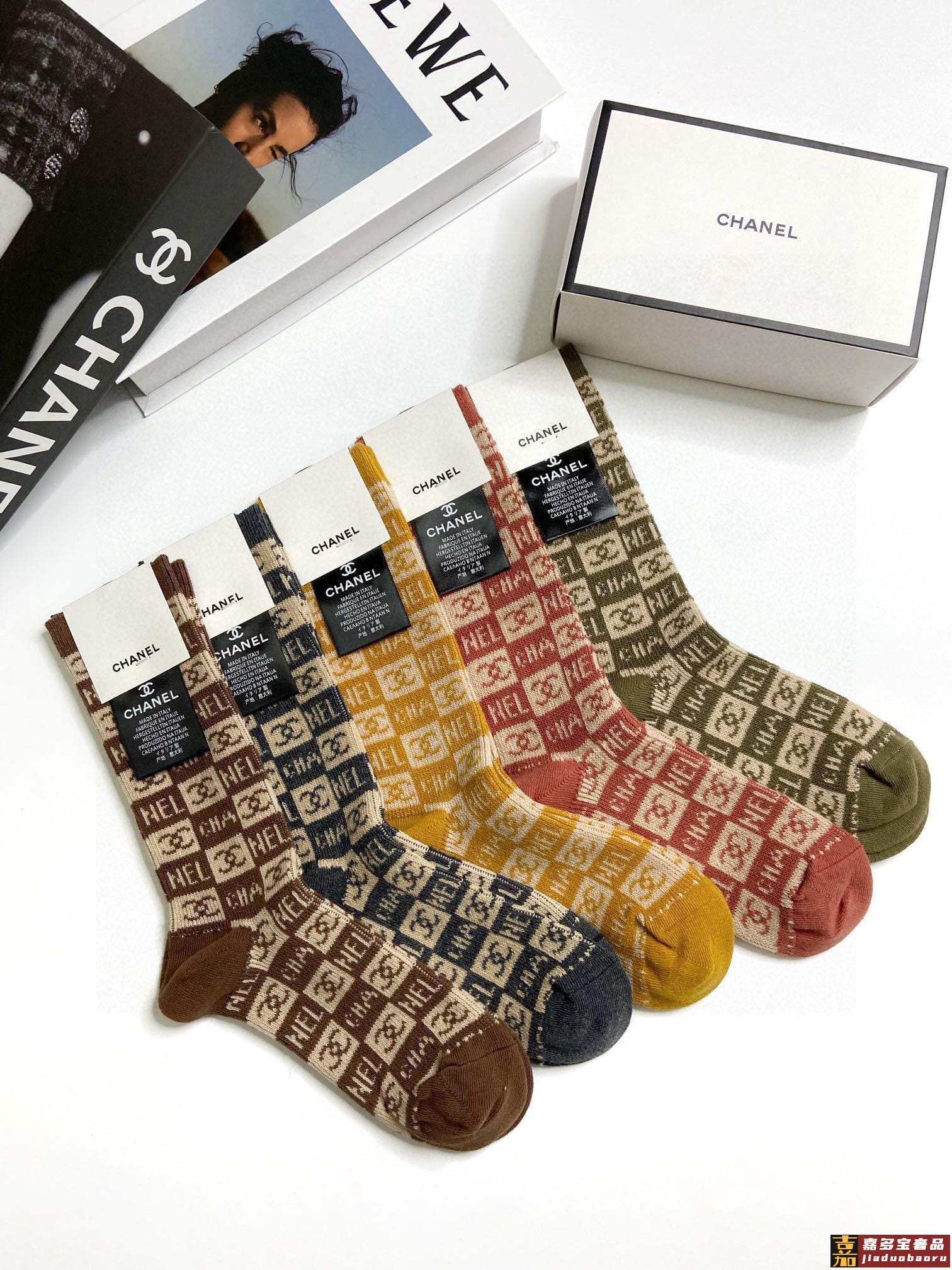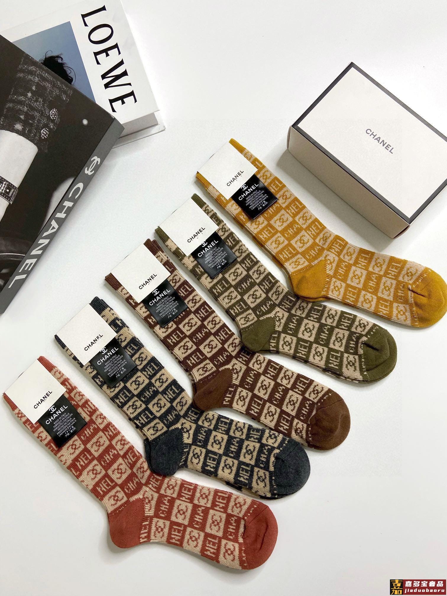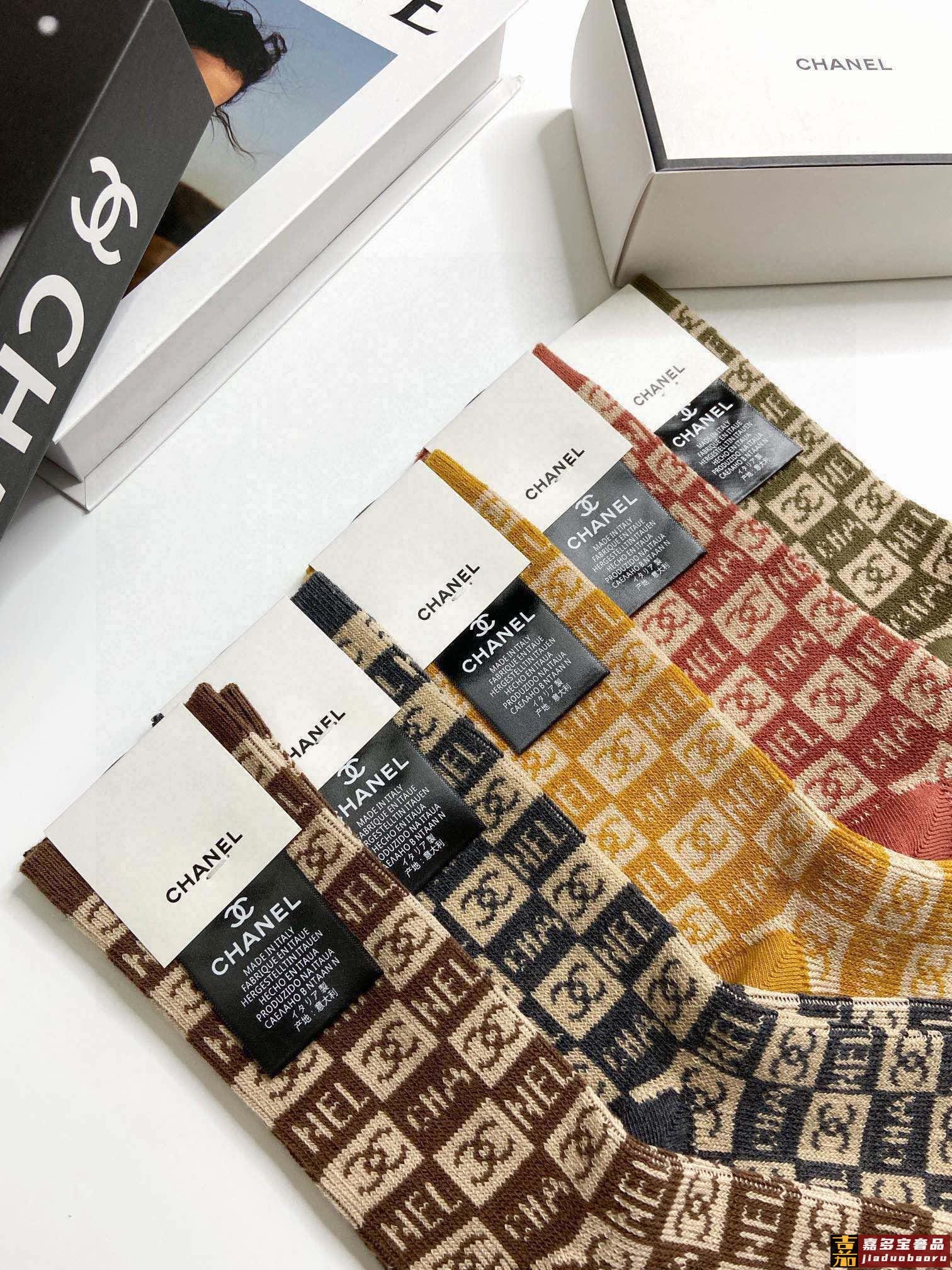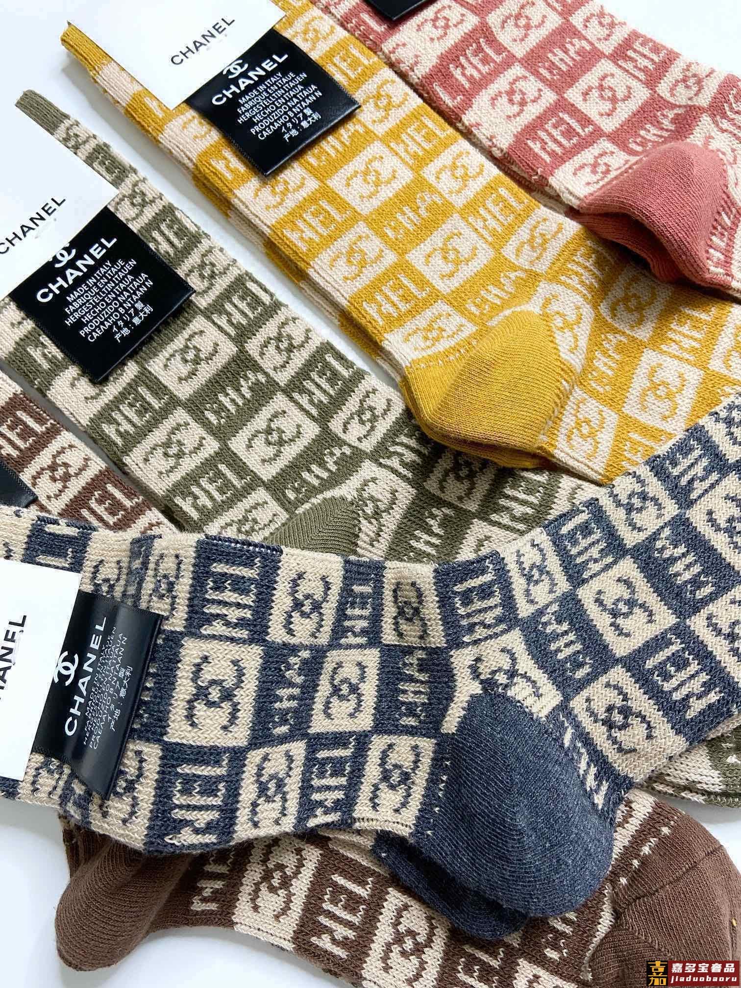 配包装一盒双随机配色香奈儿双针双路针织纯棉中筒袜专柜在售原单
