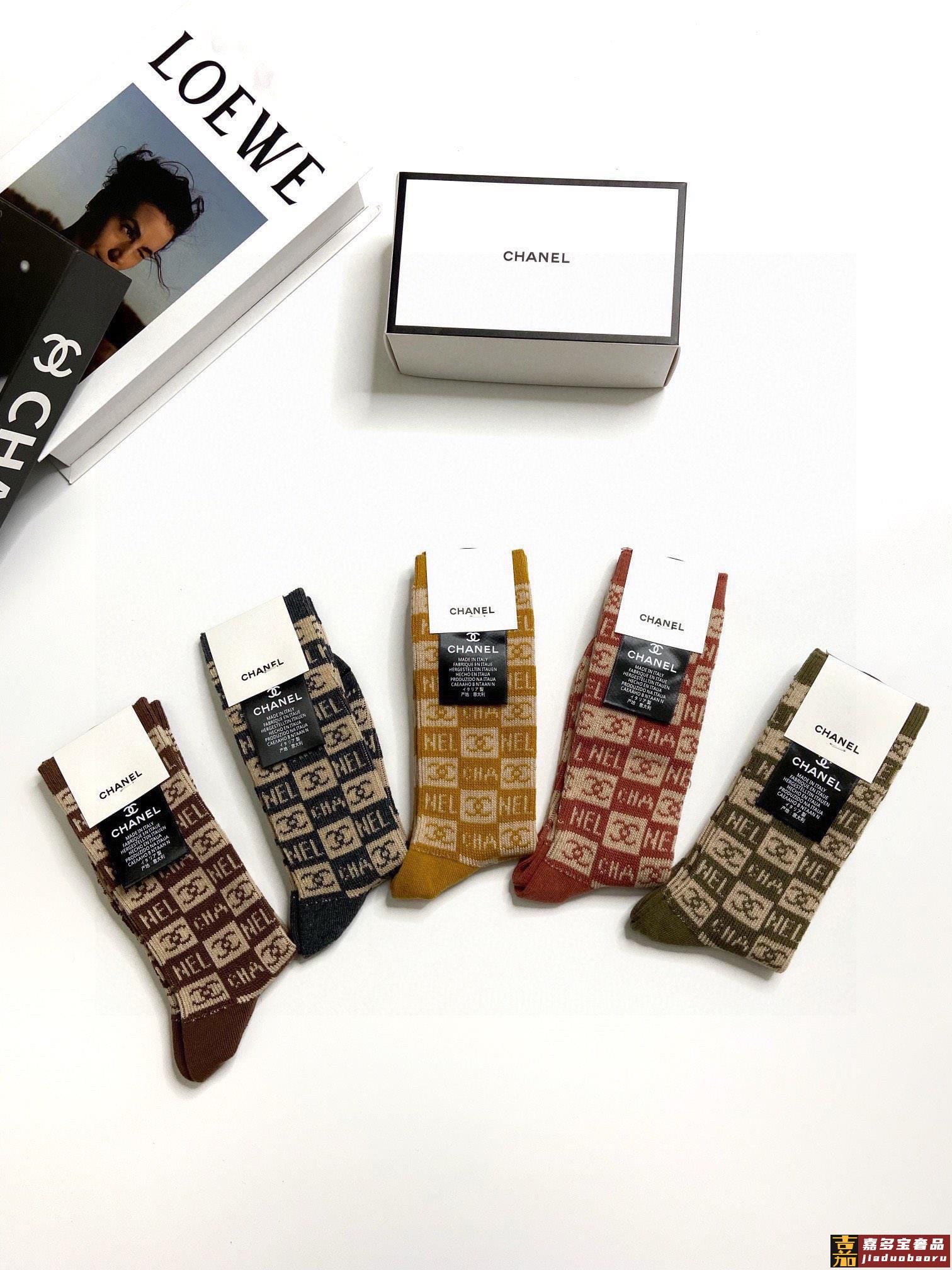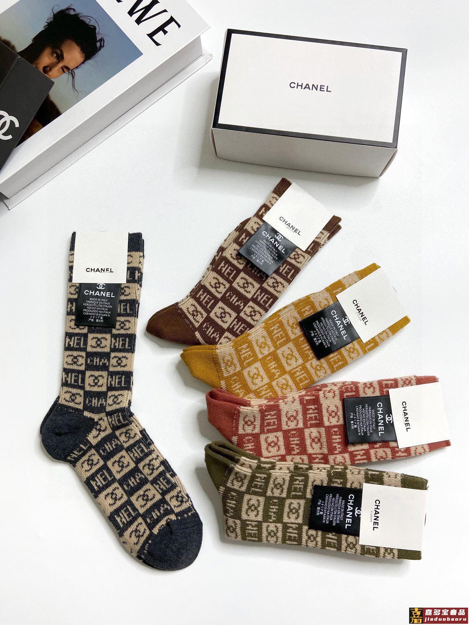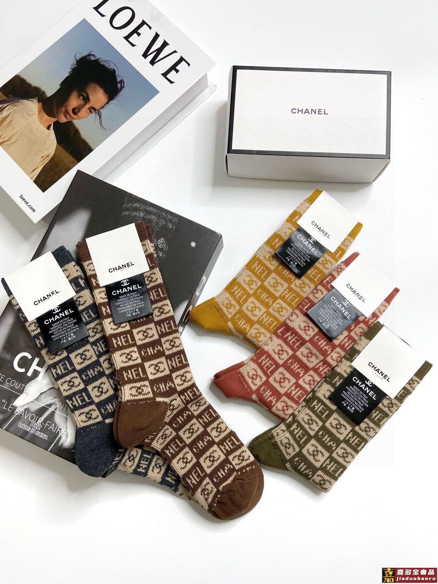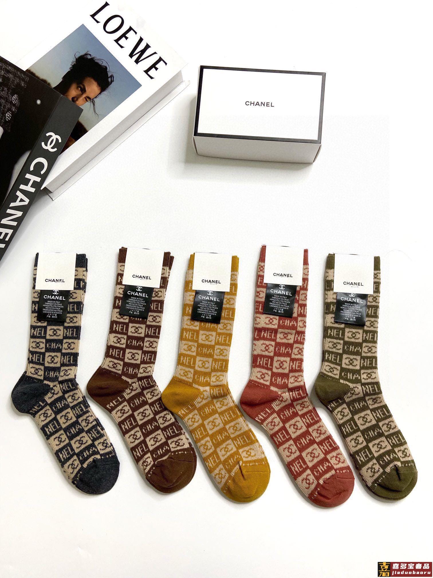 配包装一盒双随机配色香奈儿双针双路针织纯棉中筒袜专柜在售原单