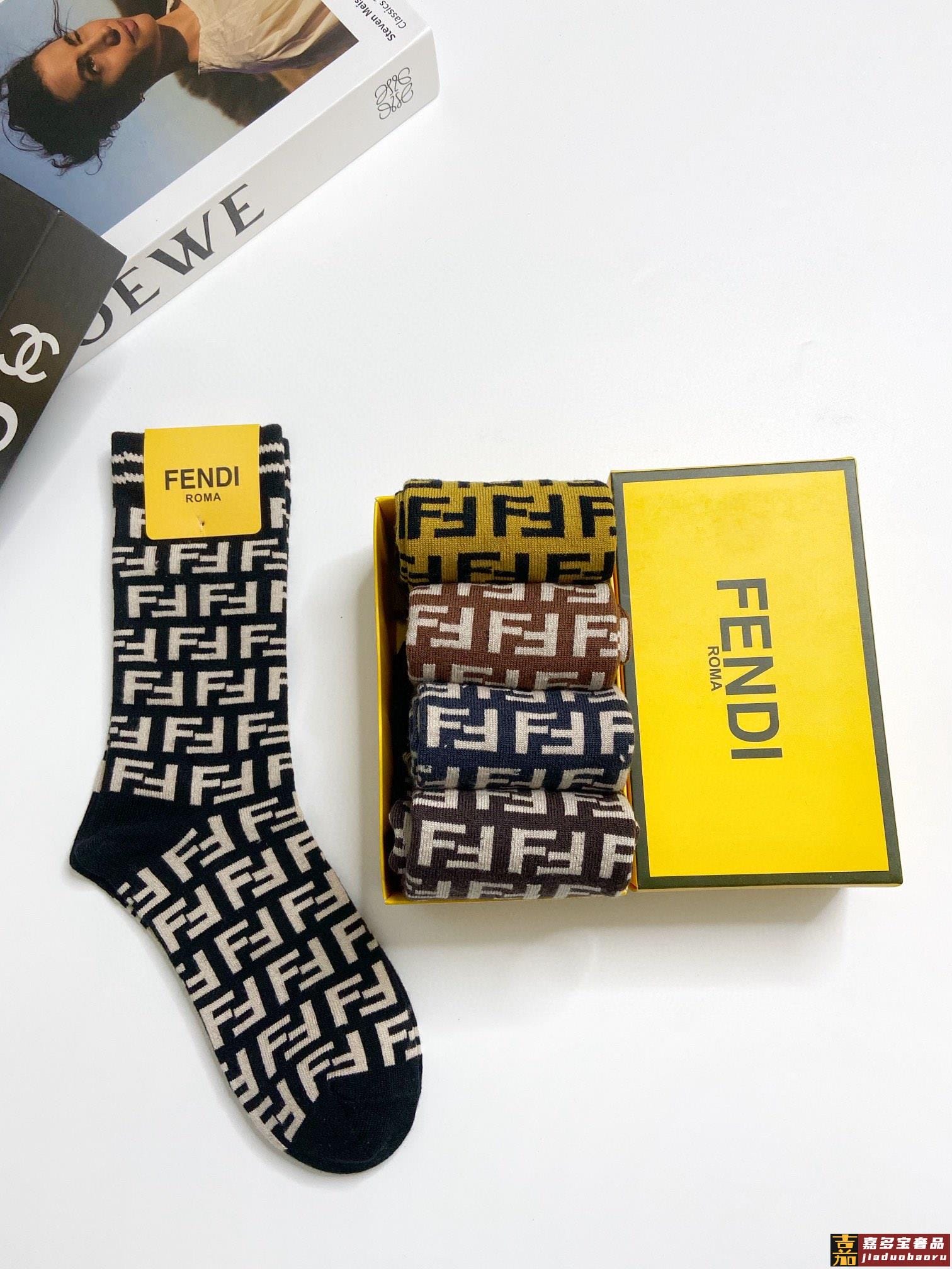 配包装一盒双芬迪双字母羊毛中筒袜专柜同步发售巨多明星红人同款