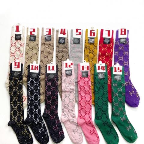配包装一盒一双古奇爆款金银丝长筒袜小腿袜双针针织混纺金银丝材