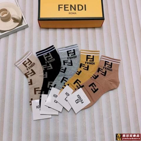 特配专柜包装芬迪新款中长款堆堆袜袜子一盒五双专柜同步筒袜袜子