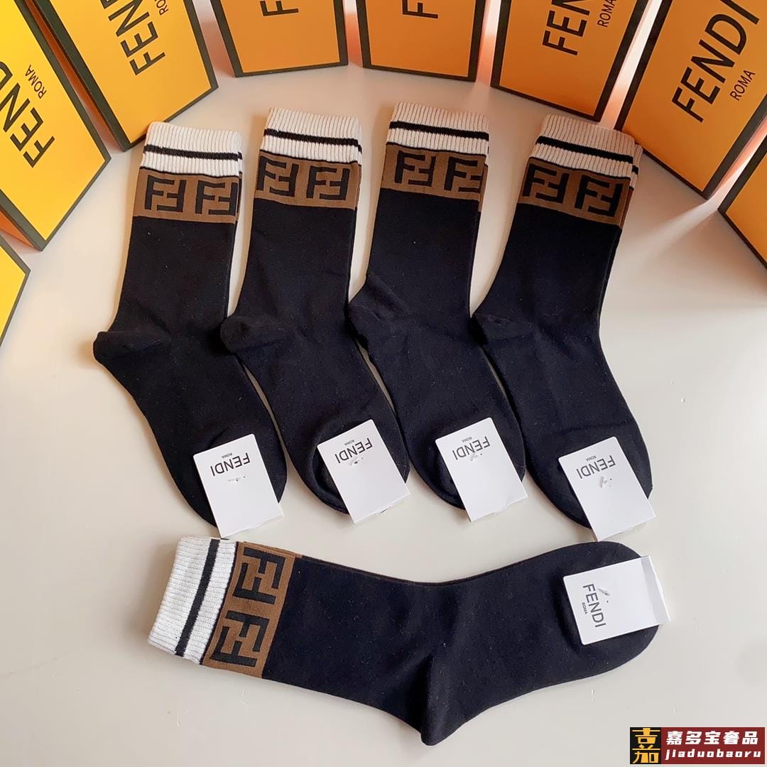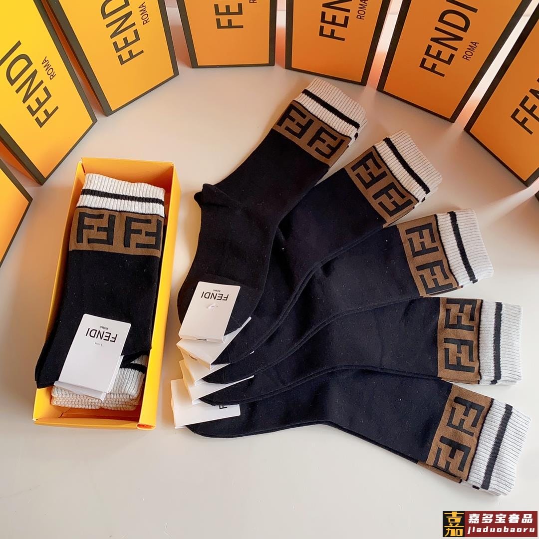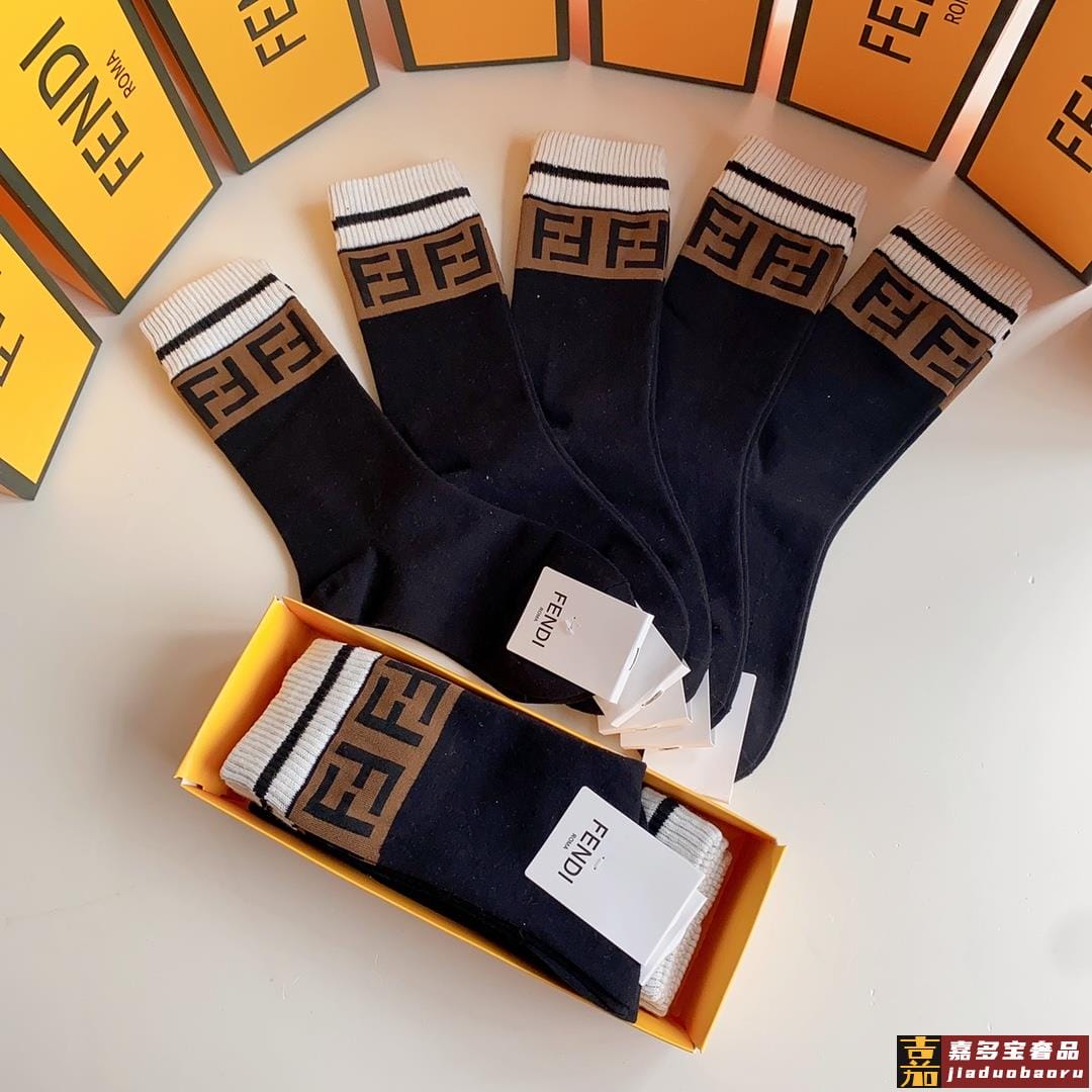 特配专柜包装芬迪新款中长款堆堆袜袜子一盒五双专柜同步筒袜袜子