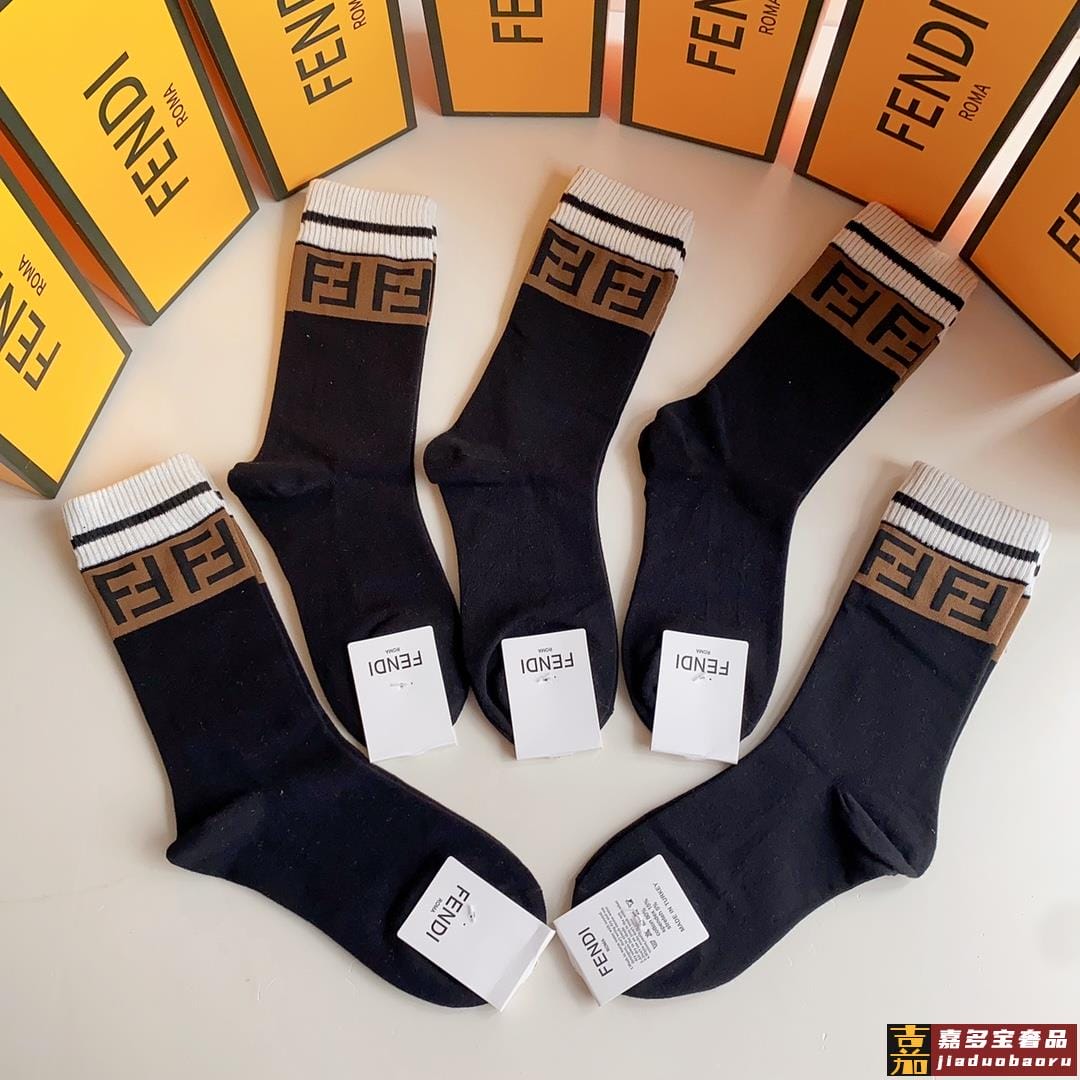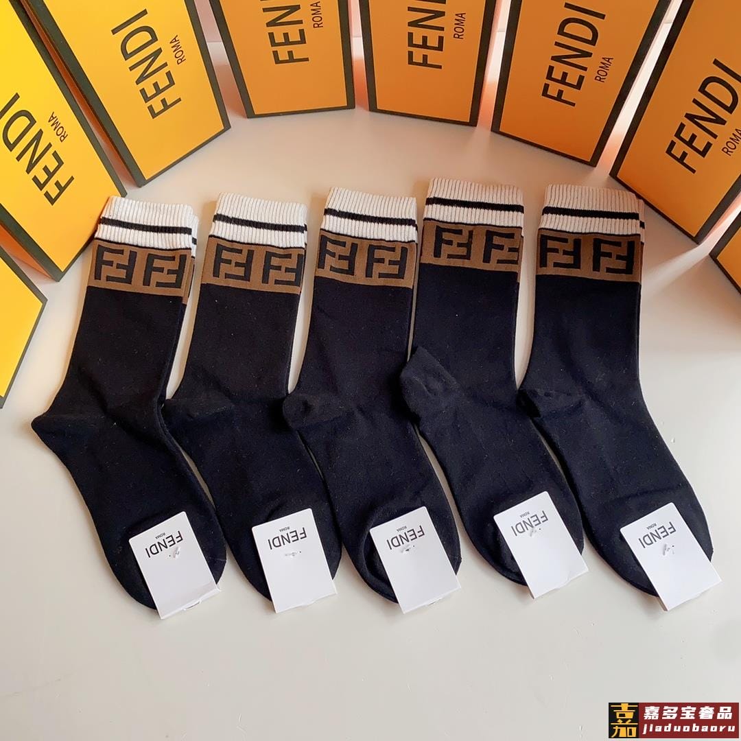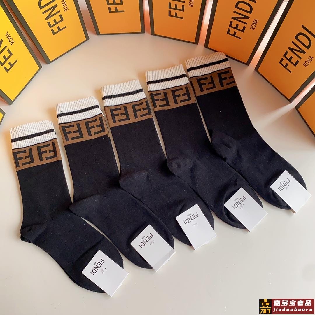 特配专柜包装芬迪新款中长款堆堆袜袜子一盒五双专柜同步筒袜袜子