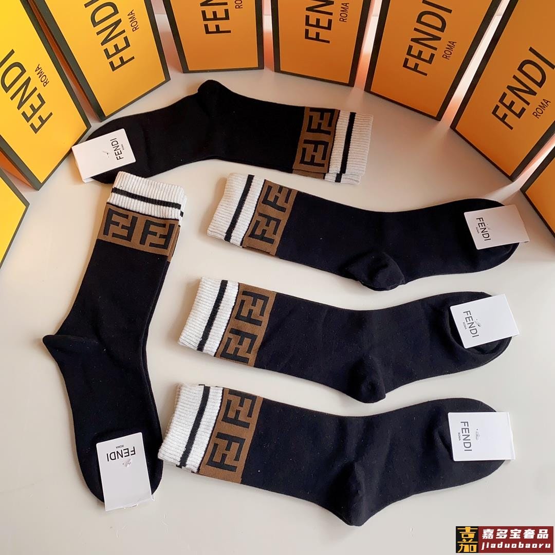 配包装一盒双芬迪字母双爆款男女款袜纯棉面料专柜同款纯棉面料实