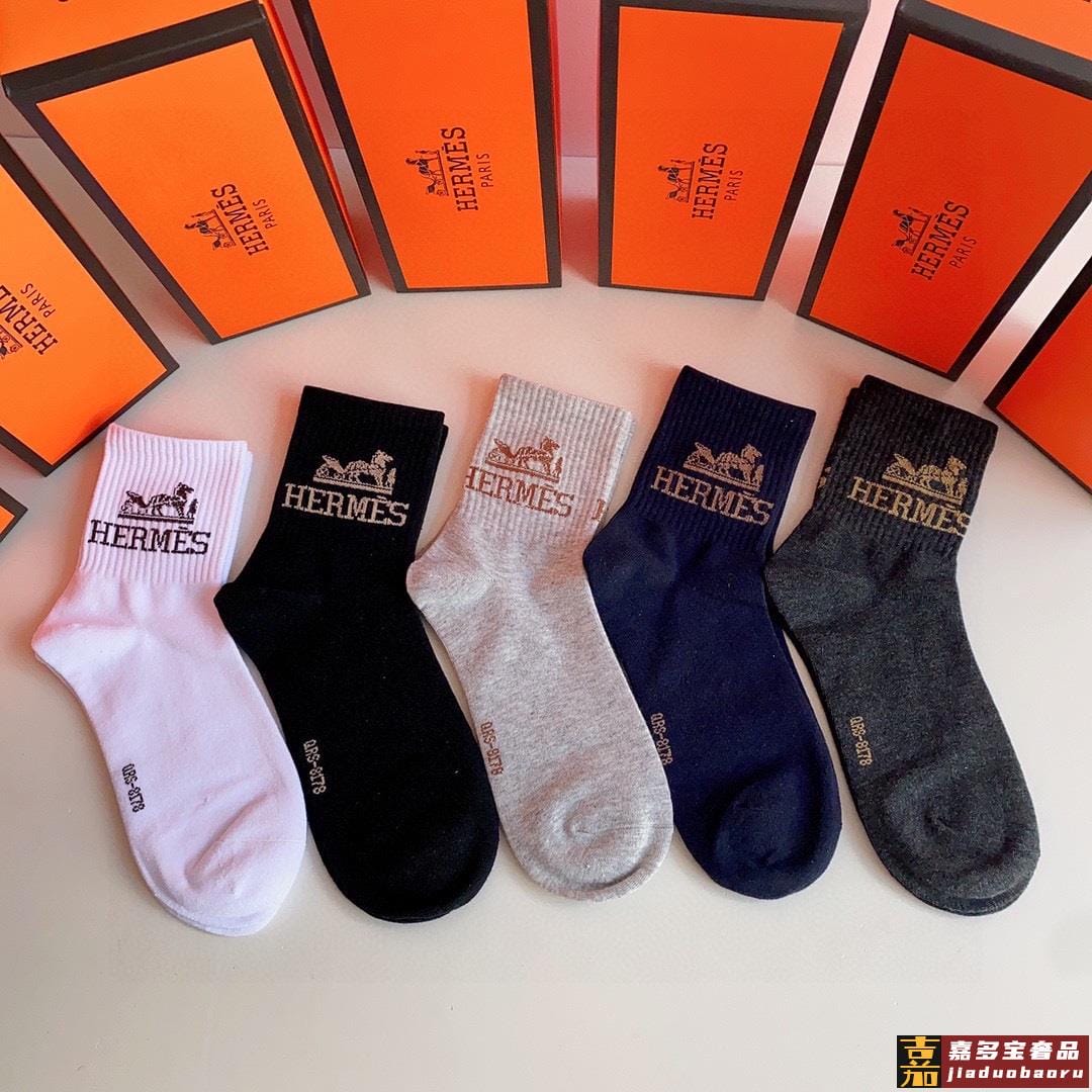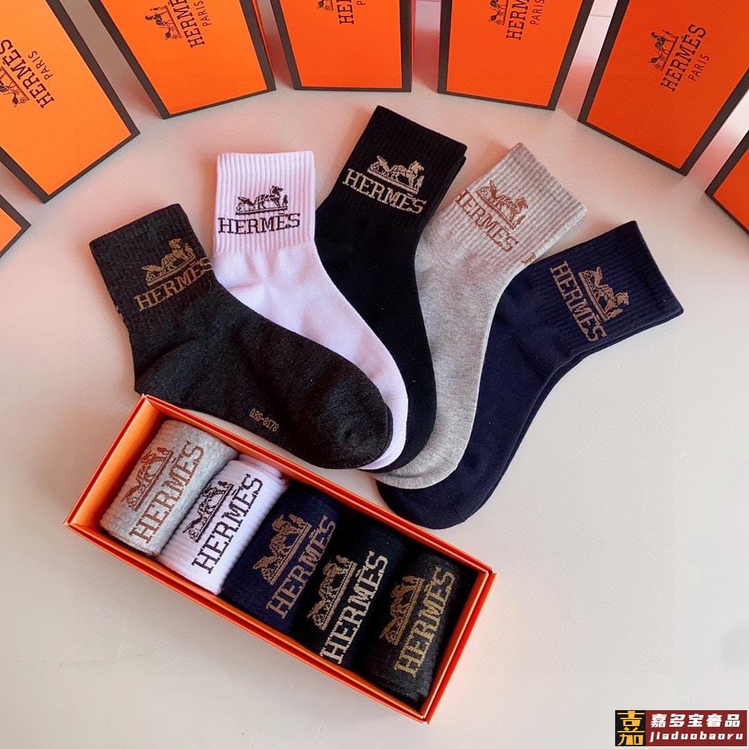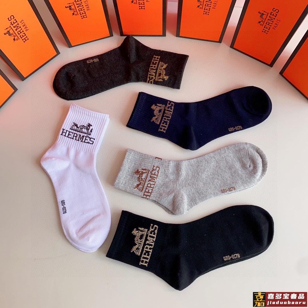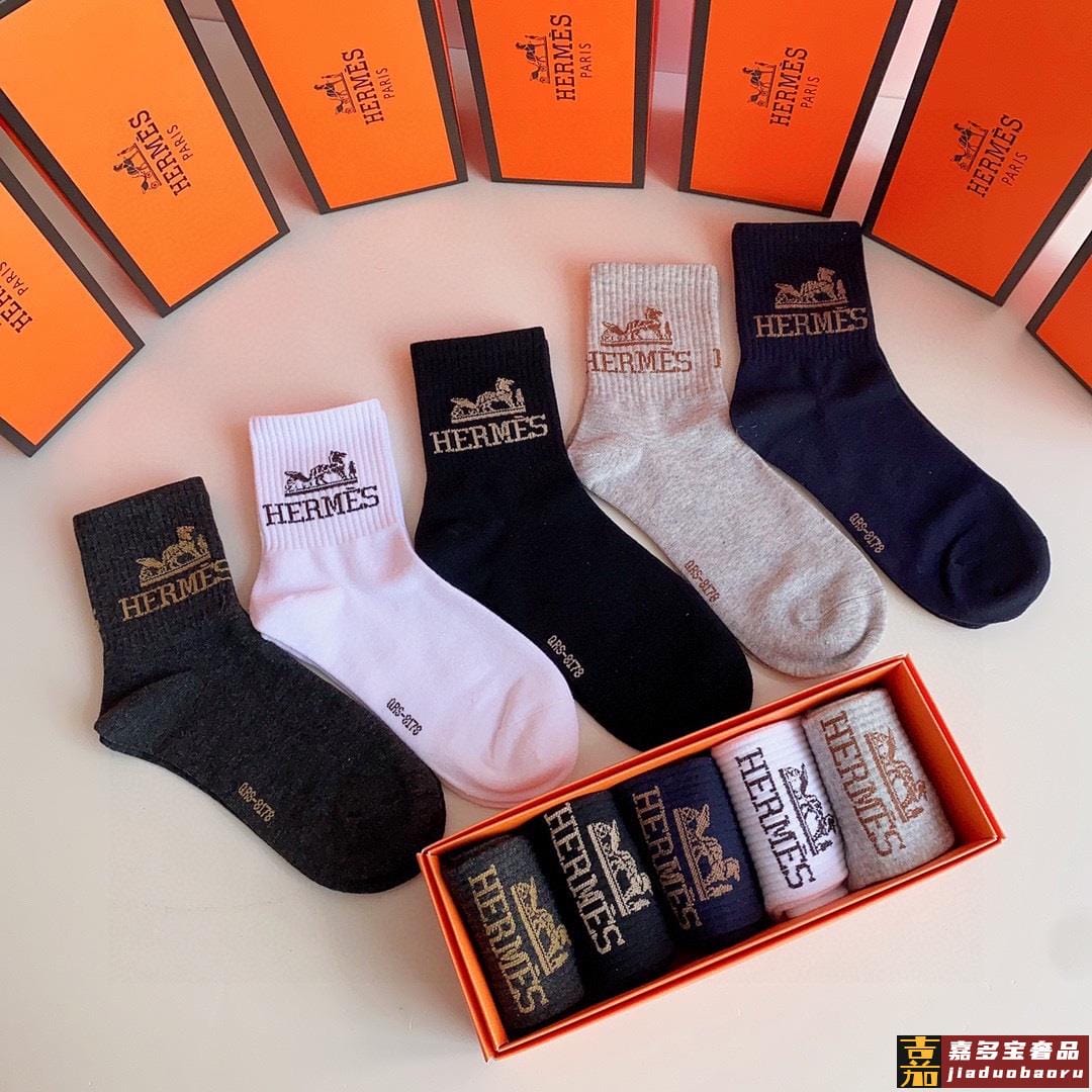 特配专柜包装爱马仕新款中长款堆堆袜袜子一盒五双专柜同步筒袜袜