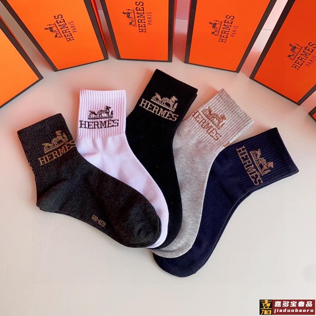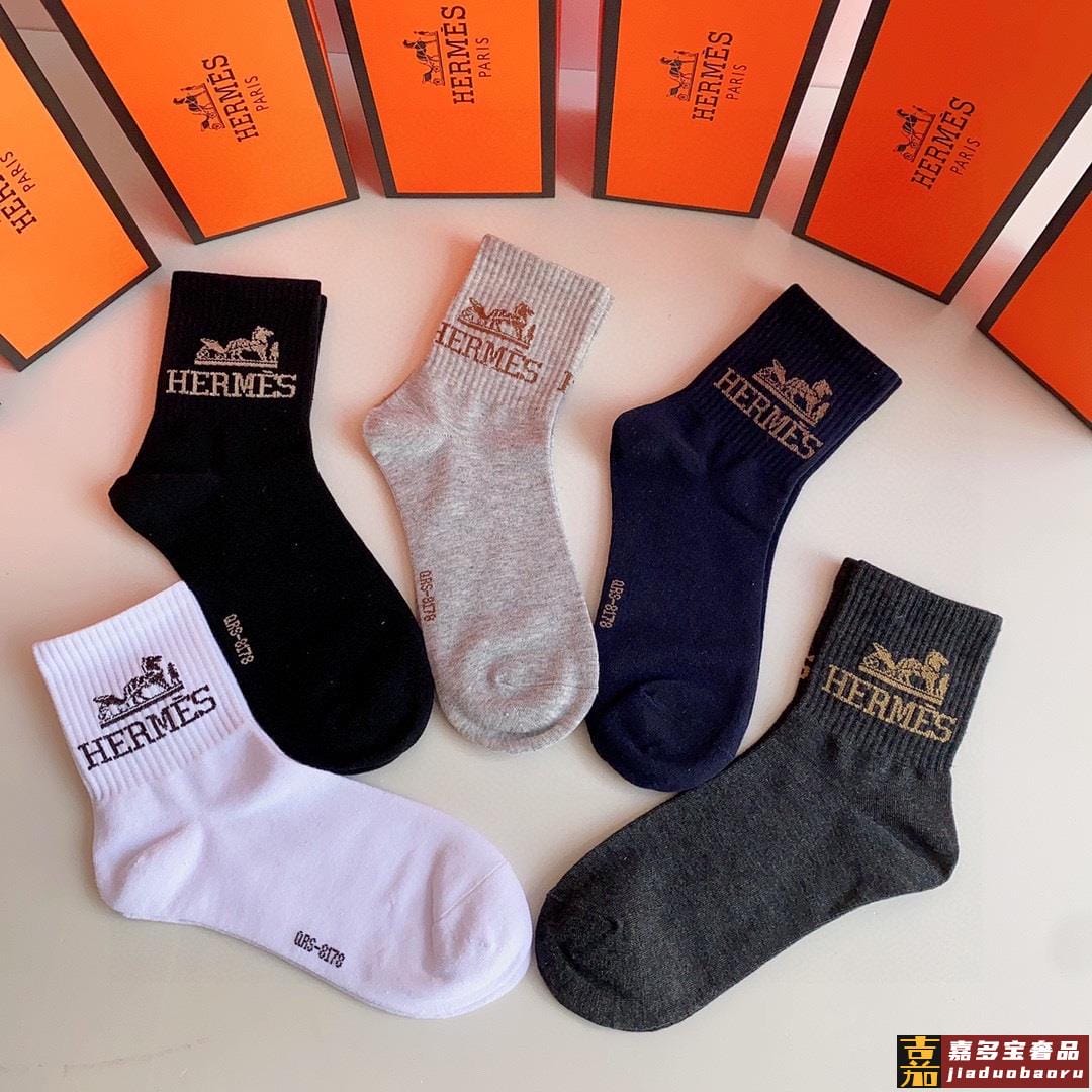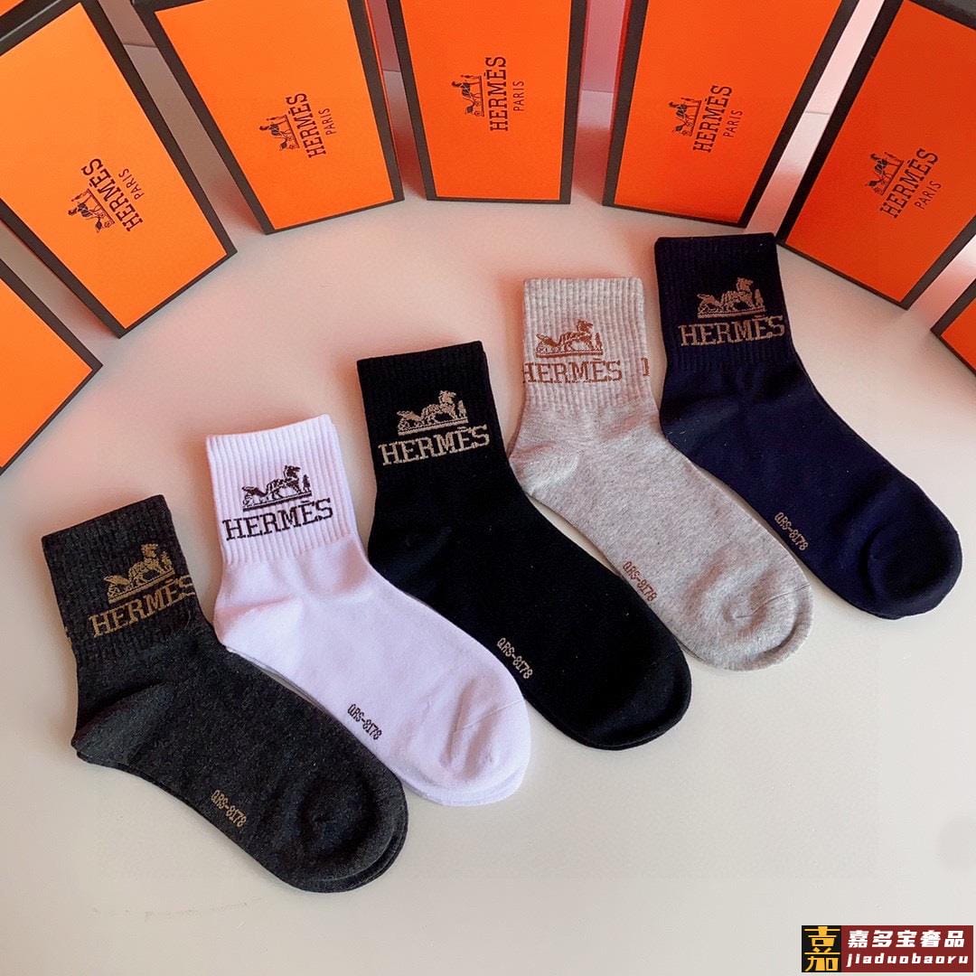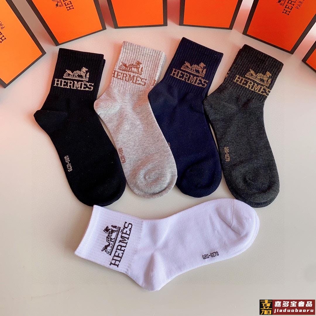 特配专柜包装爱马仕新款中长款堆堆袜袜子一盒五双专柜同步筒袜袜