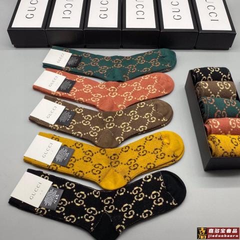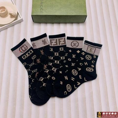 特配包装古驰新款双针双路经典中长款堆堆袜袜子一盒五双专柜同步