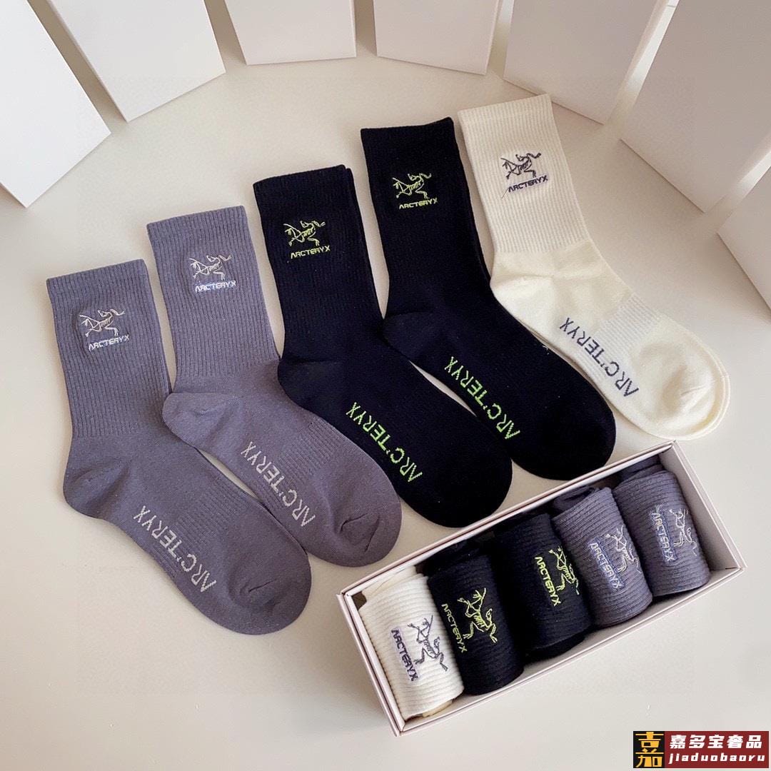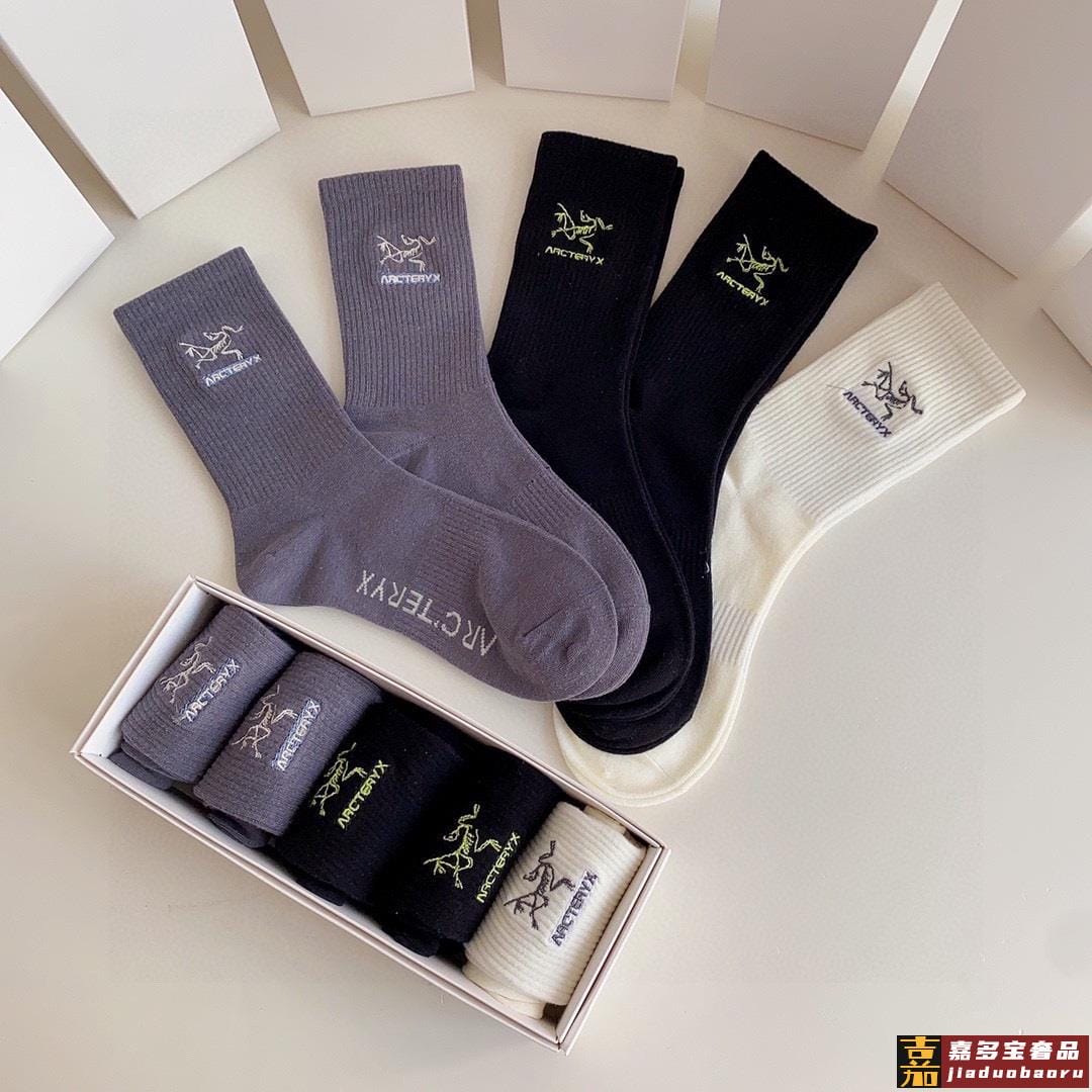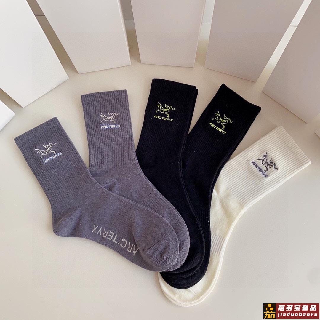 特配专柜包装始祖鸟新款中长筒刺绣袜堆堆袜袜子一盒五双专柜同步