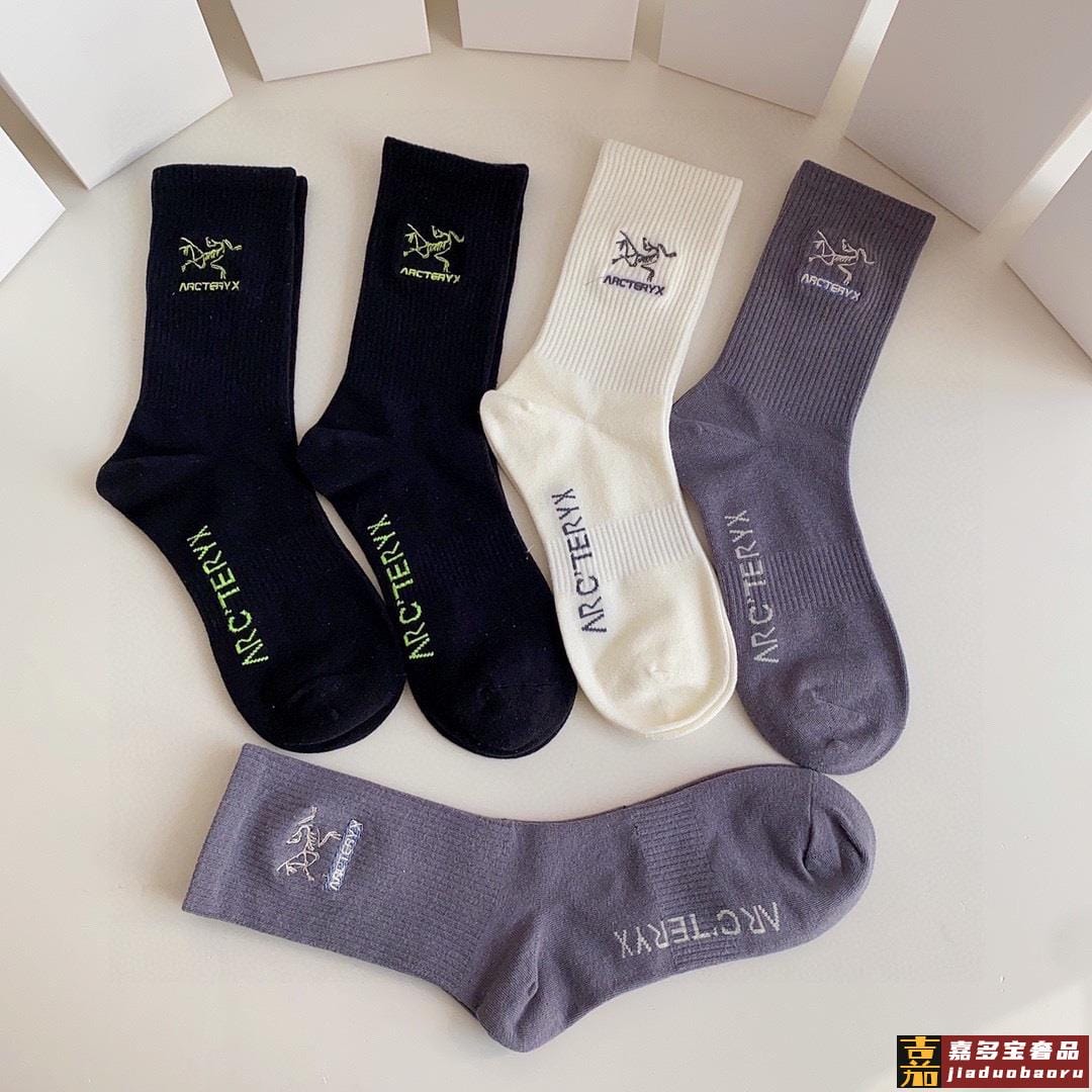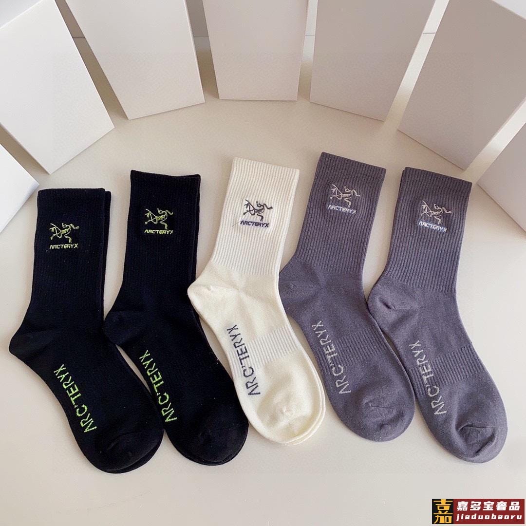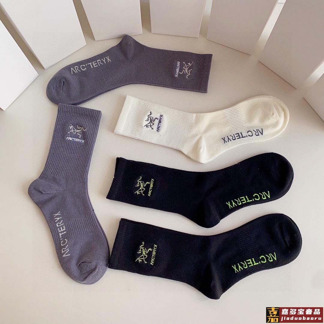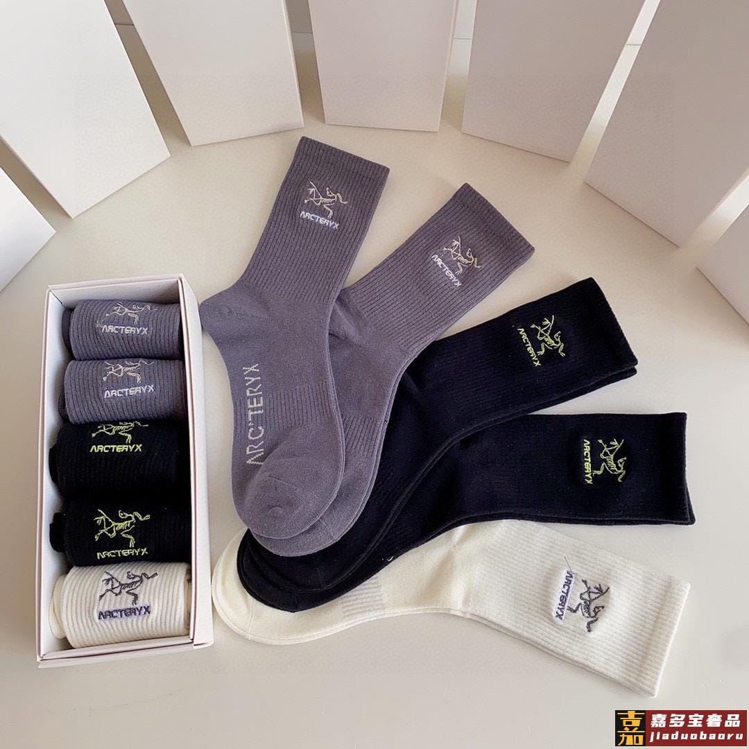 特配专柜包装始祖鸟新款中长筒刺绣袜堆堆袜袜子一盒五双专柜同步