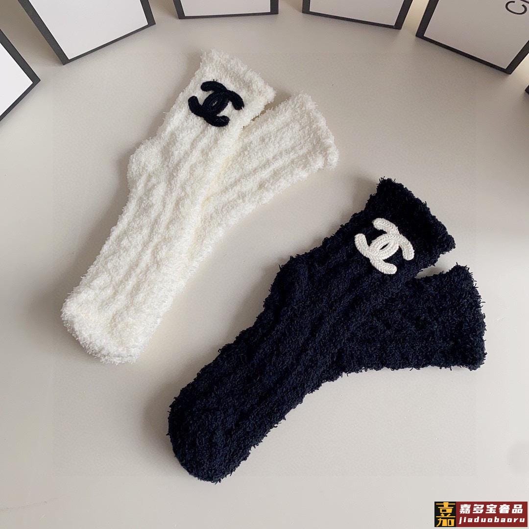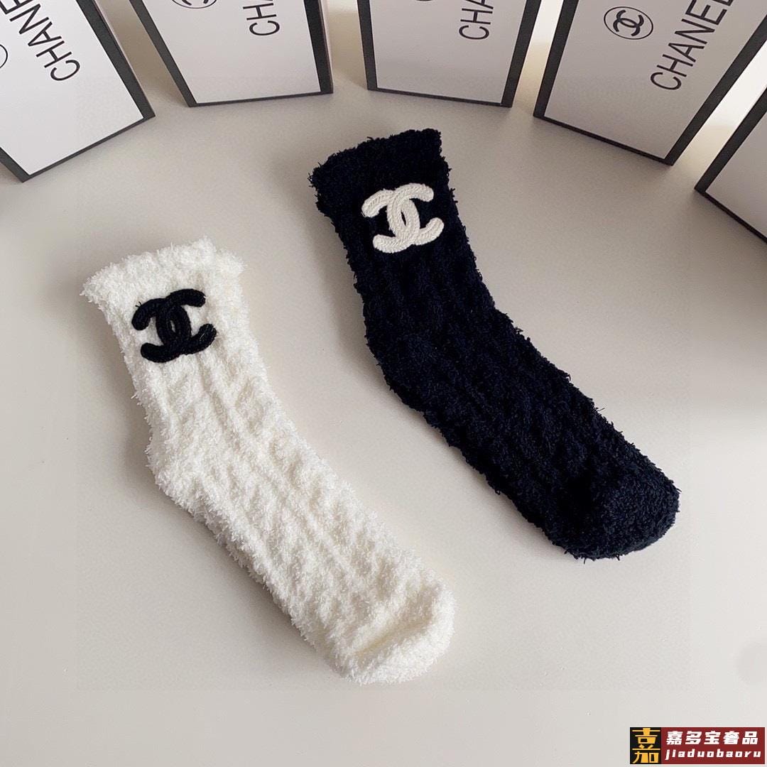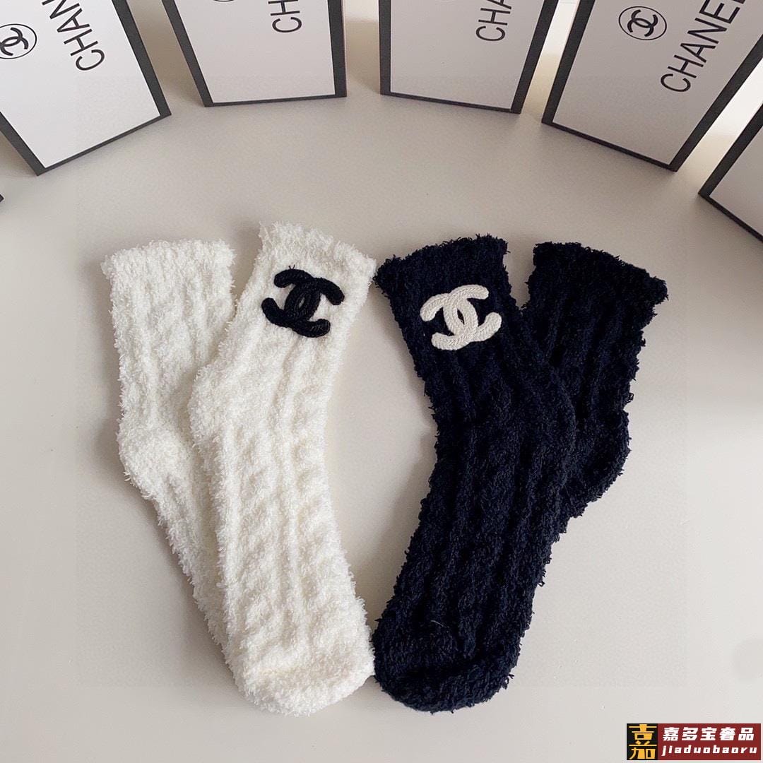 特配包装香奈儿网红爆款新款珊瑚绒袜中长款小香香堆堆袜袜子一盒