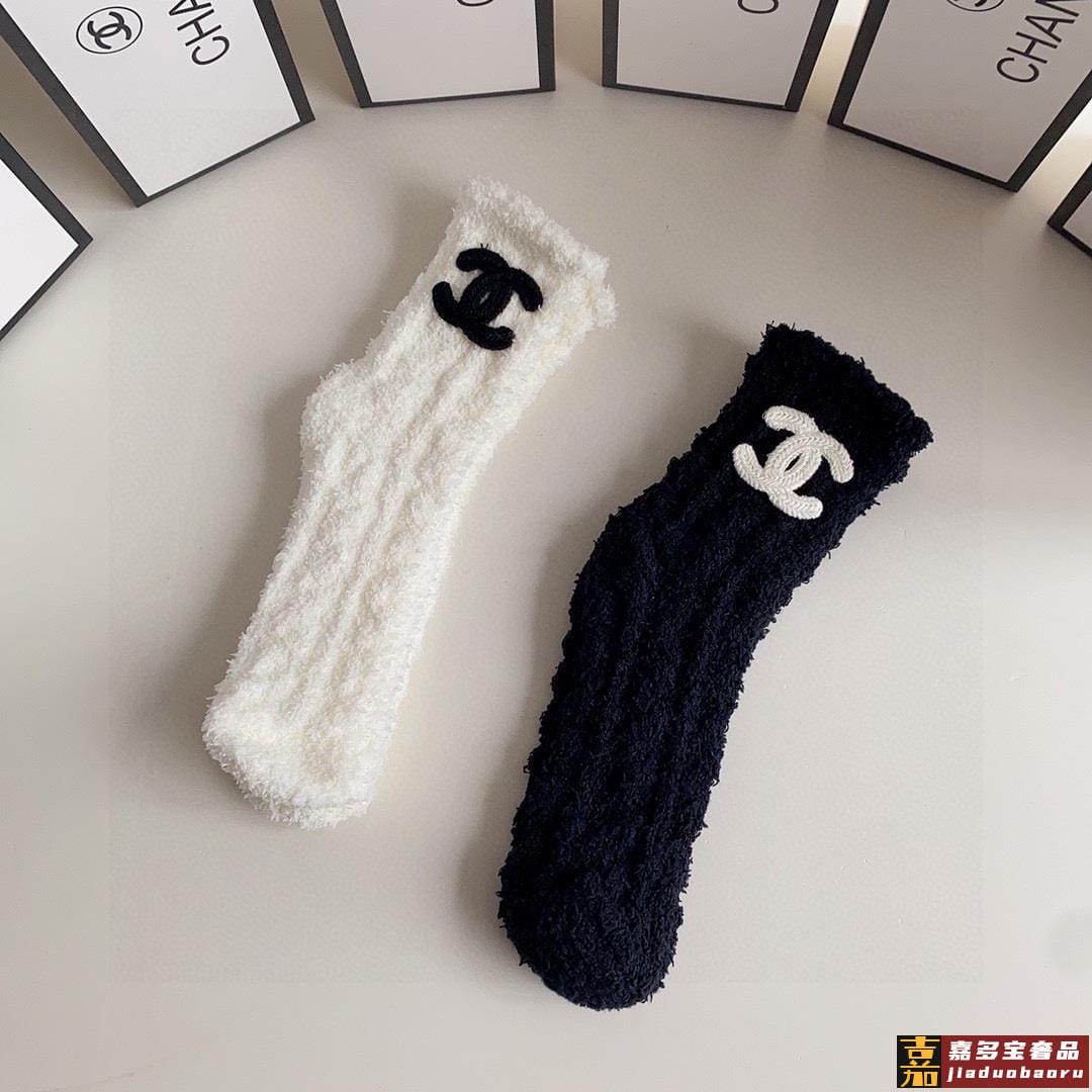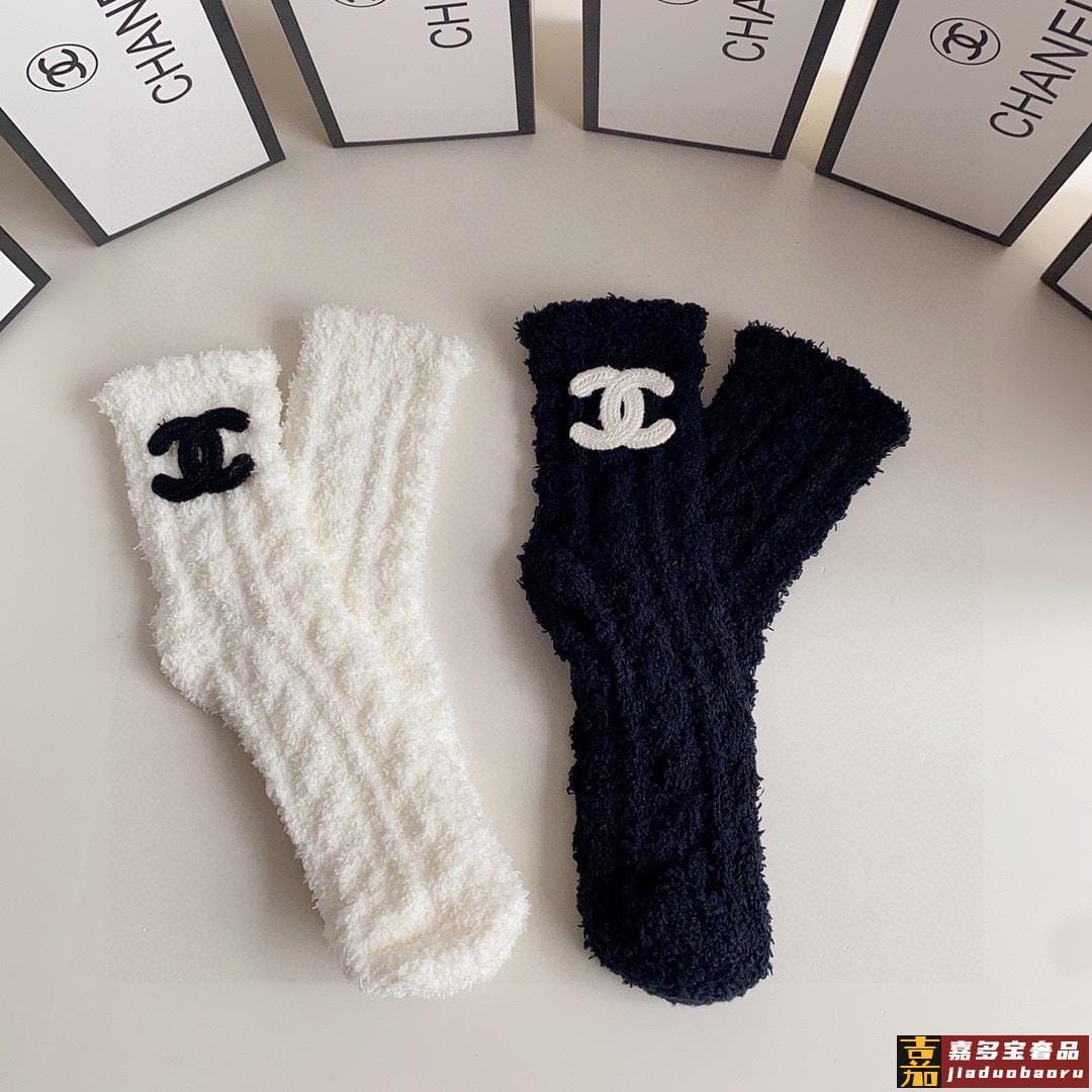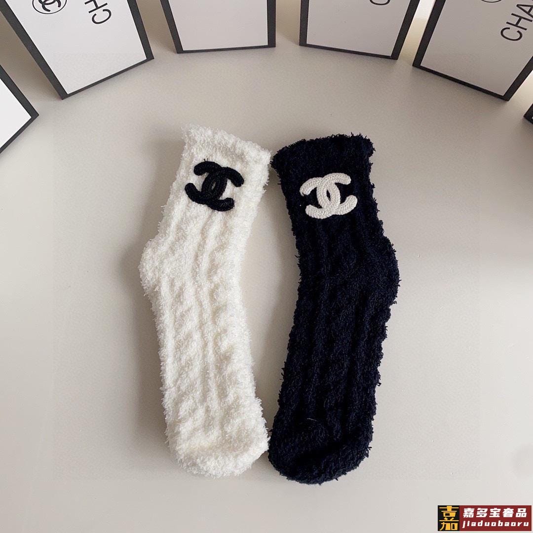 特配包装香奈儿网红爆款新款珊瑚绒袜中长款小香香堆堆袜袜子一盒