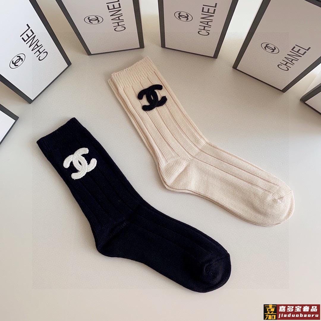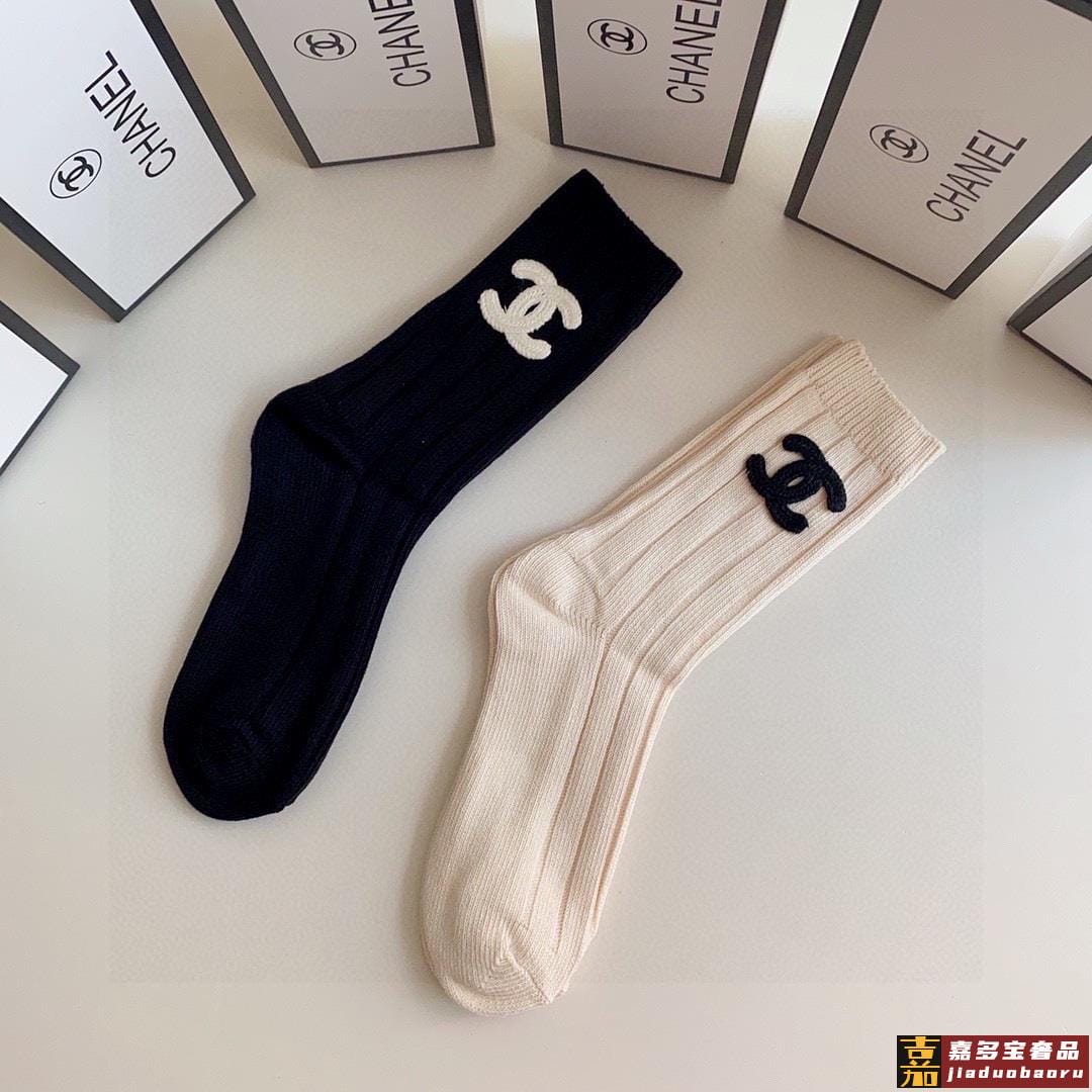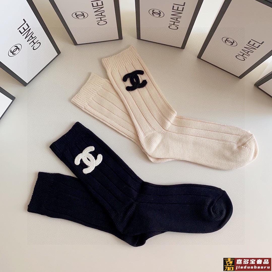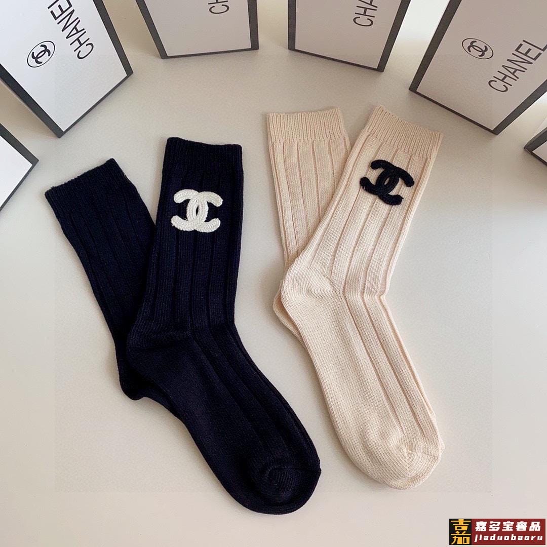 特配专柜包装香奈儿新款中长款堆堆袜袜子一盒两双专柜同步筒袜袜