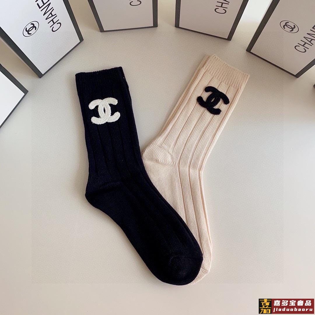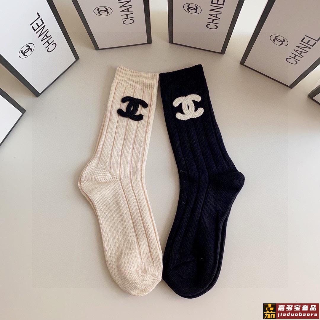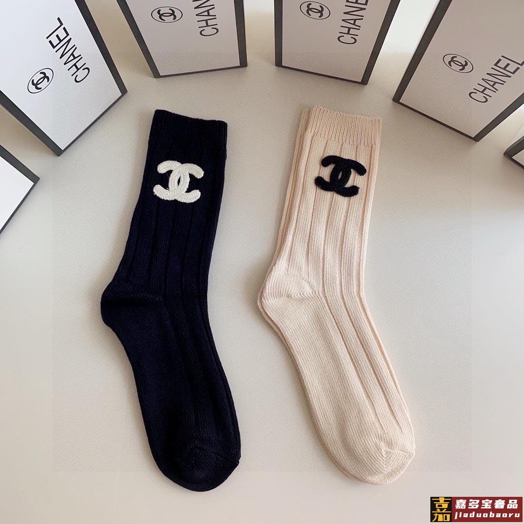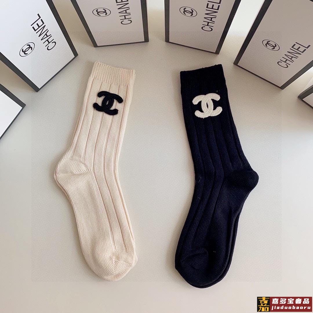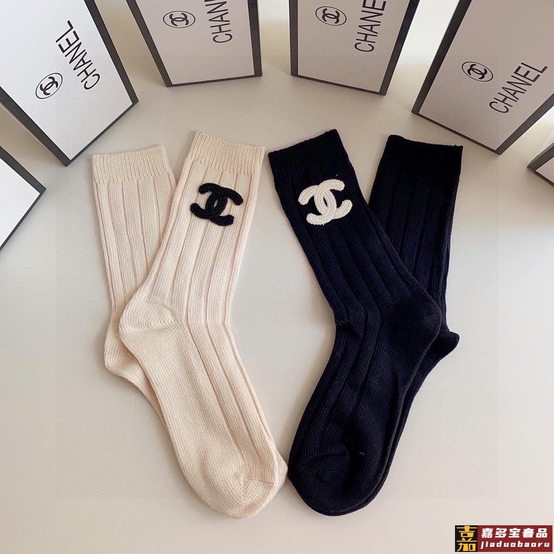 特配专柜包装香奈儿新款中长款堆堆袜袜子一盒两双专柜同步筒袜袜