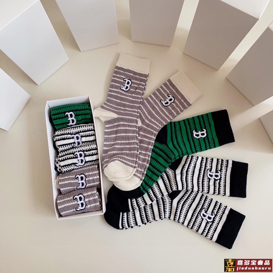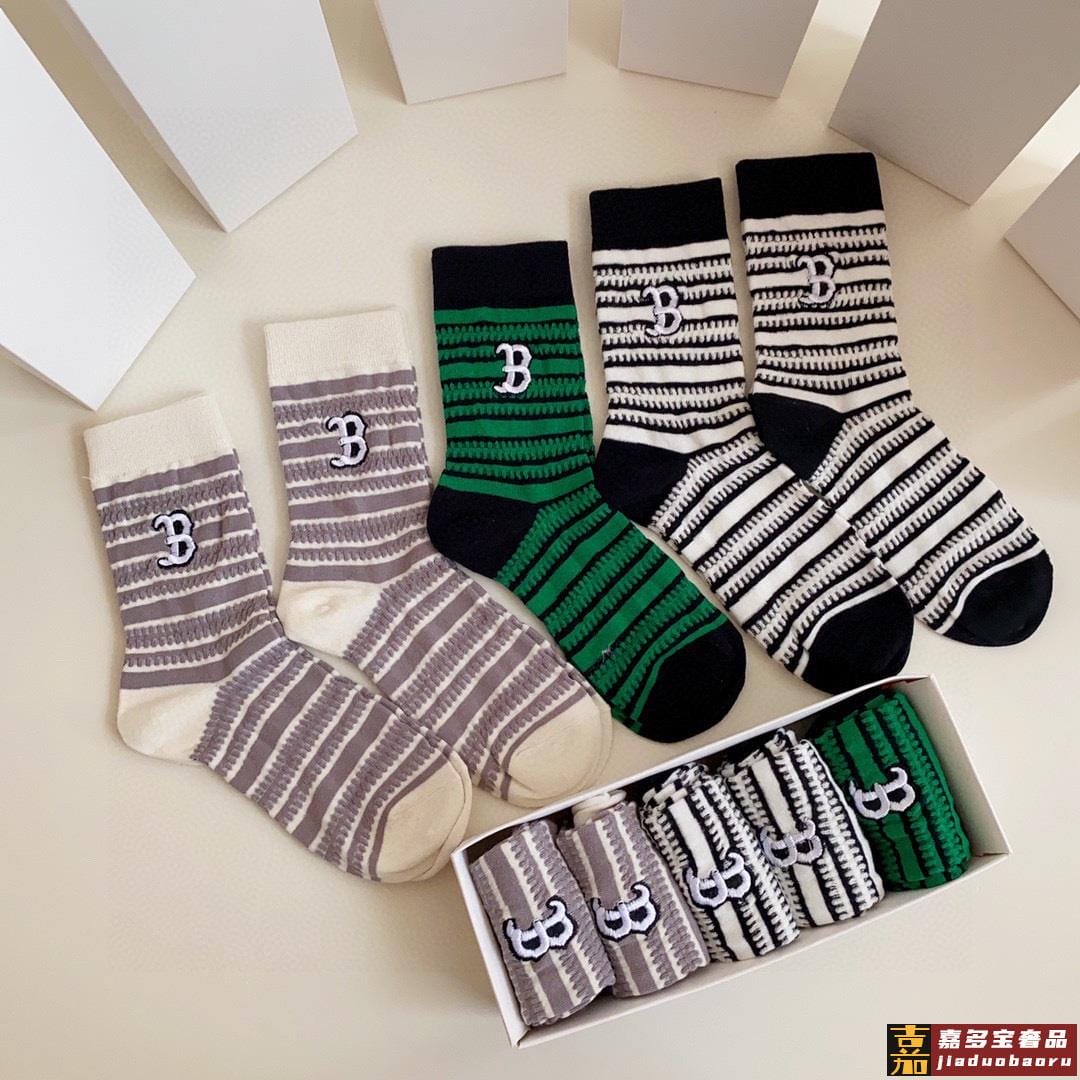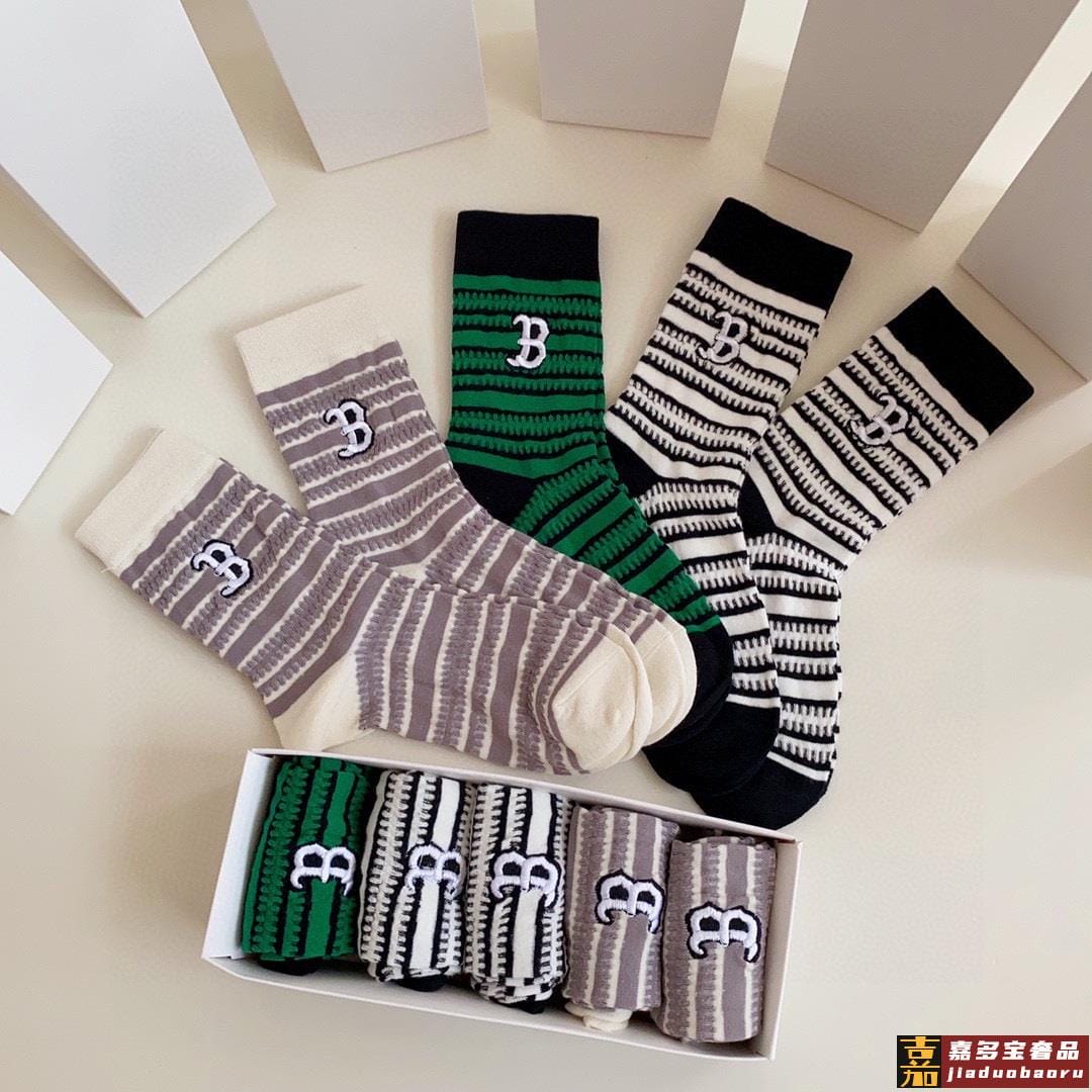 特配专柜包装网红潮牌新款刺绣中长款堆堆袜袜子一盒五双专柜同步