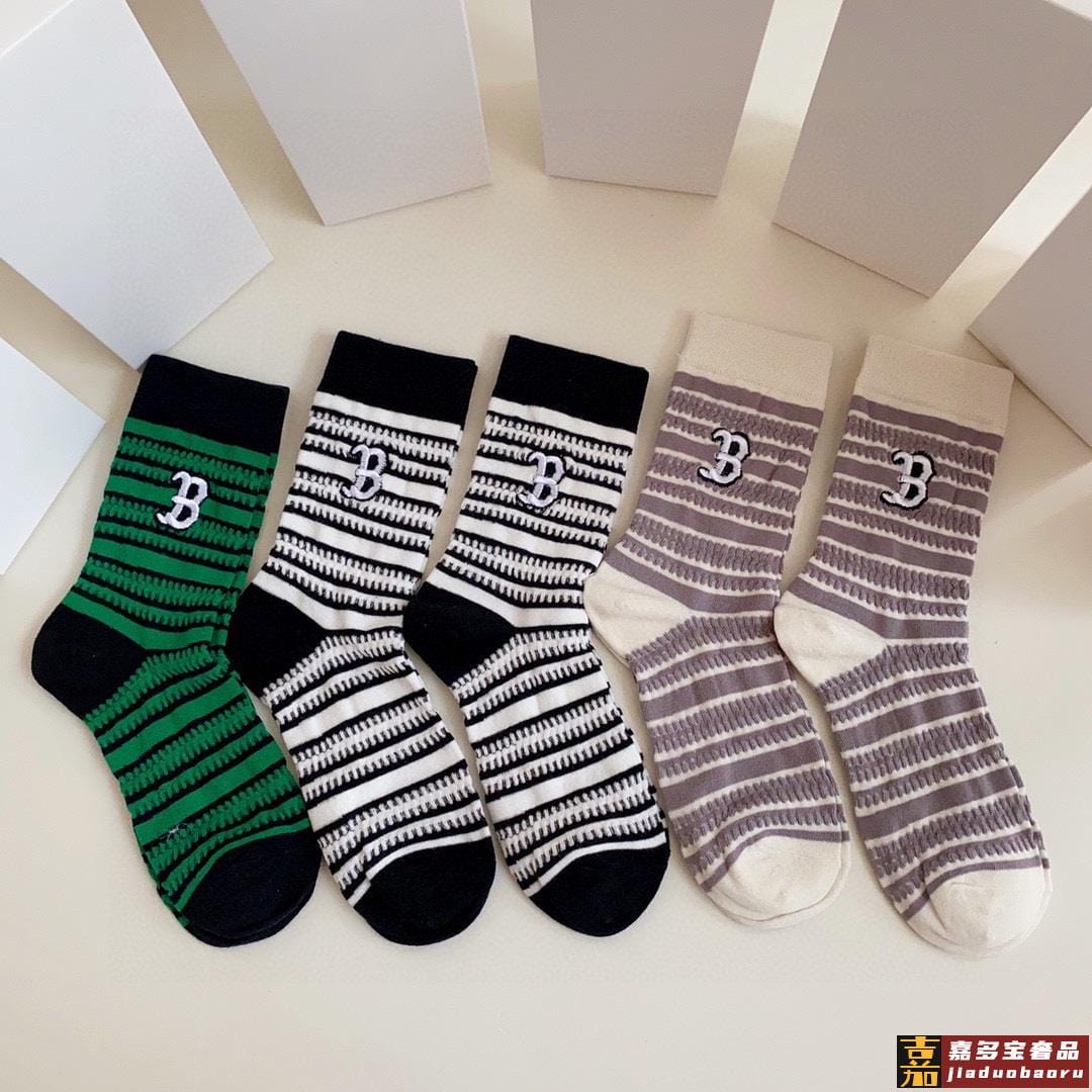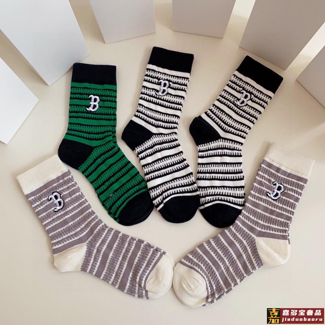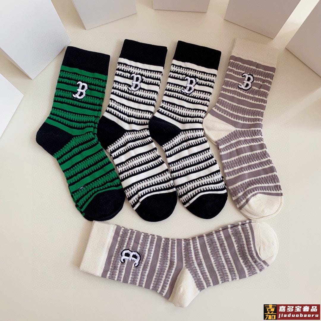 特配专柜包装网红潮牌新款刺绣中长款堆堆袜袜子一盒五双专柜同步