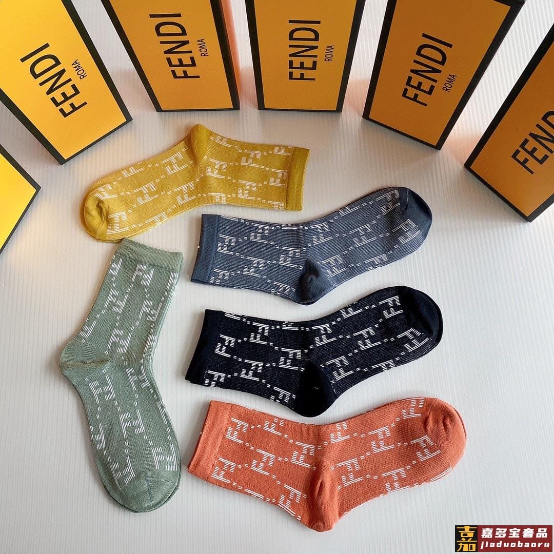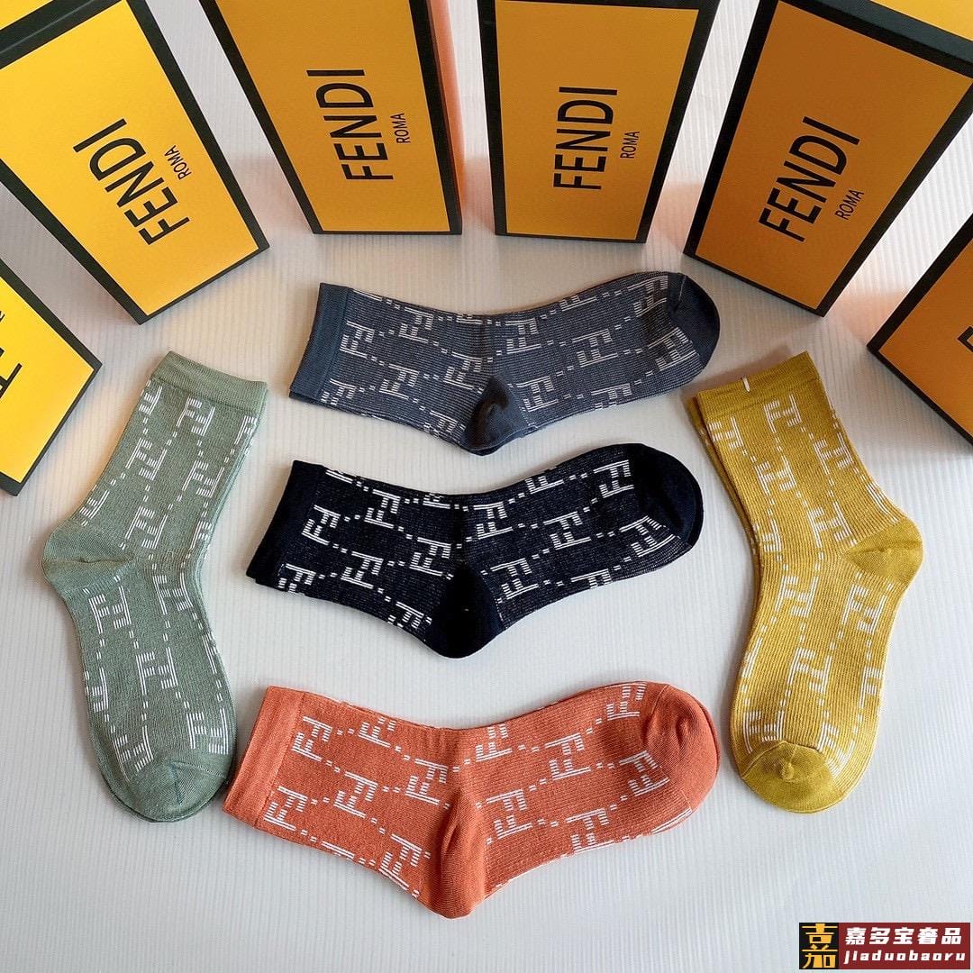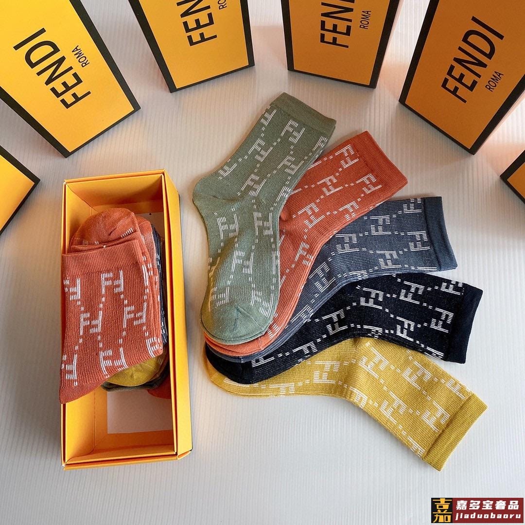 特配专柜包装芬迪新款中长款堆堆袜袜子一盒五双专柜同步筒袜袜子