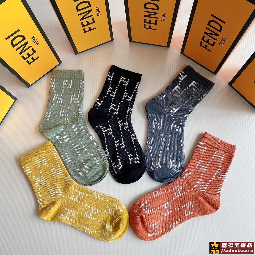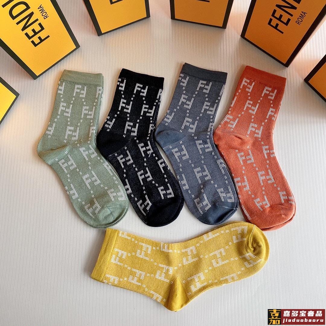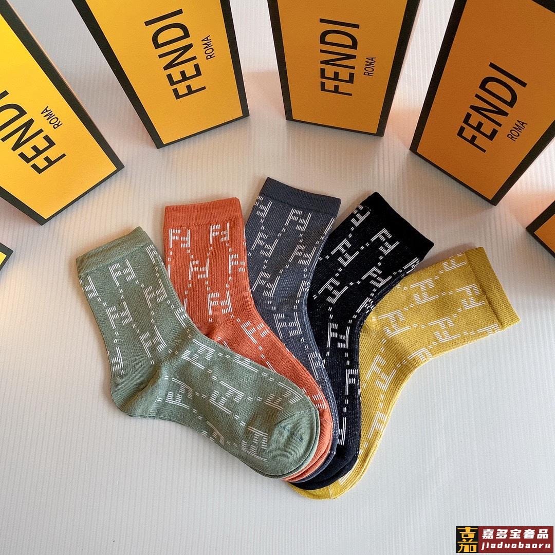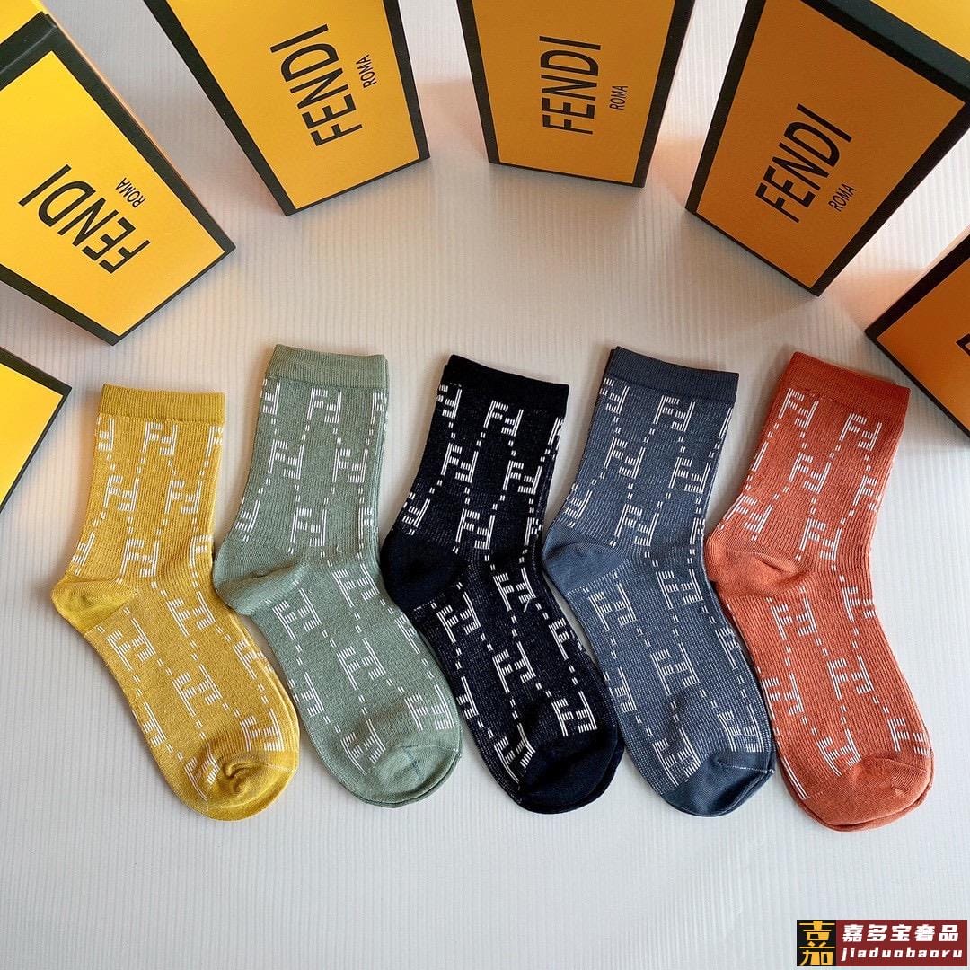 特配专柜包装芬迪新款中长款堆堆袜袜子一盒五双专柜同步筒袜袜子