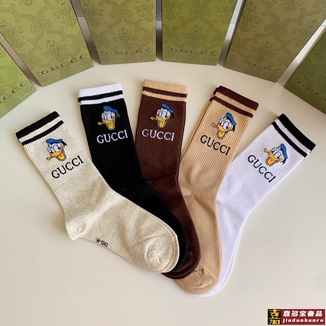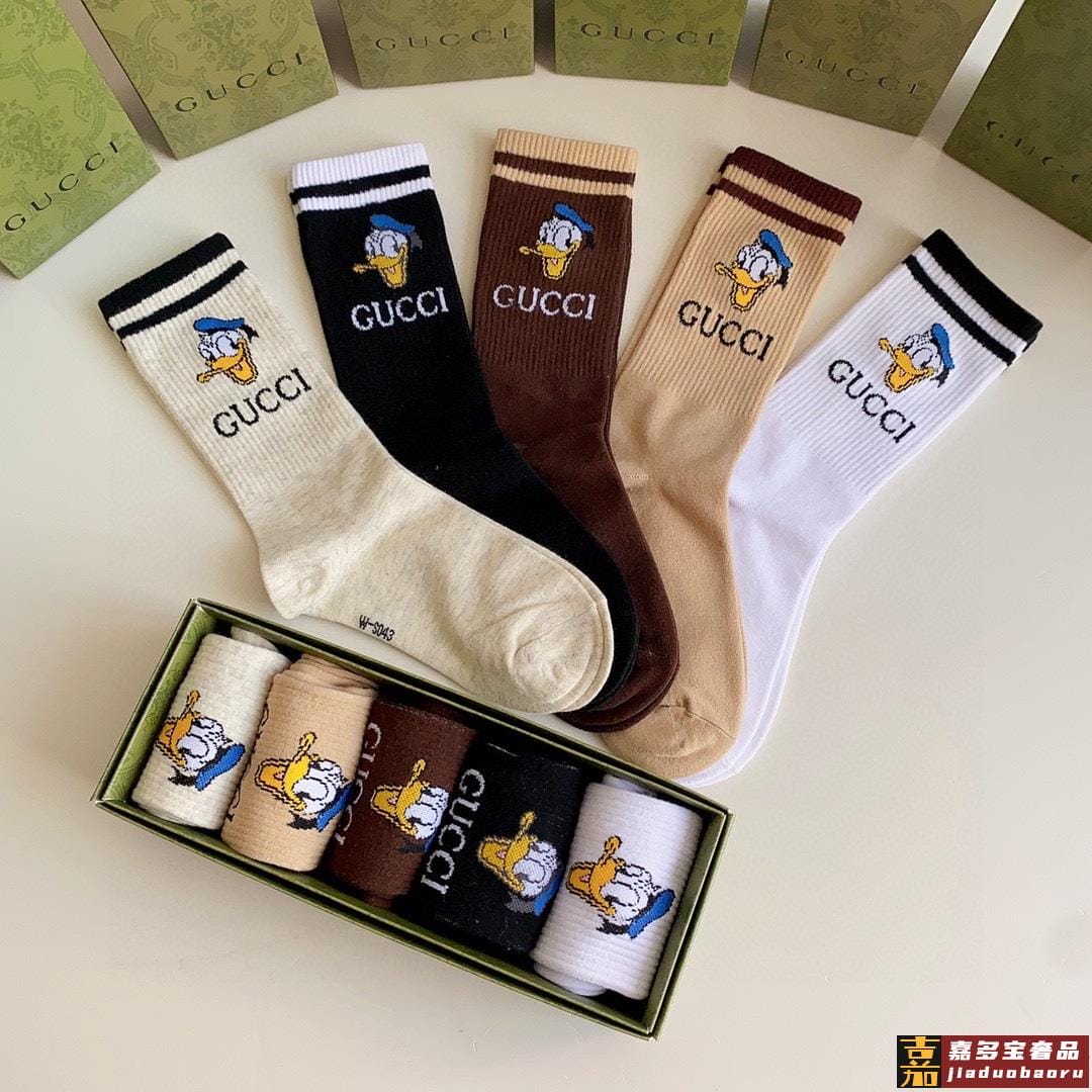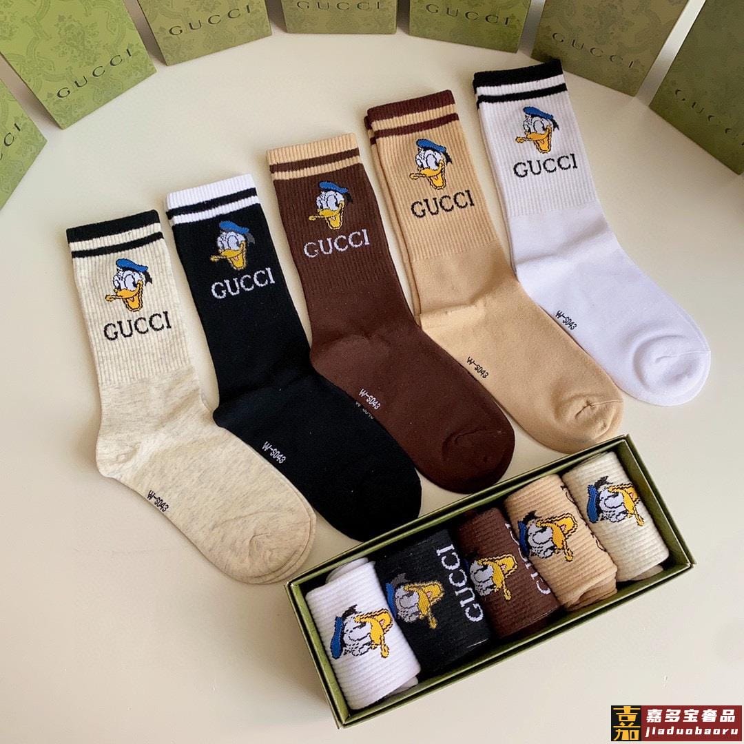 特配专柜包装古驰新款唐老鸭中长款堆堆袜袜子一盒五双专柜同步筒