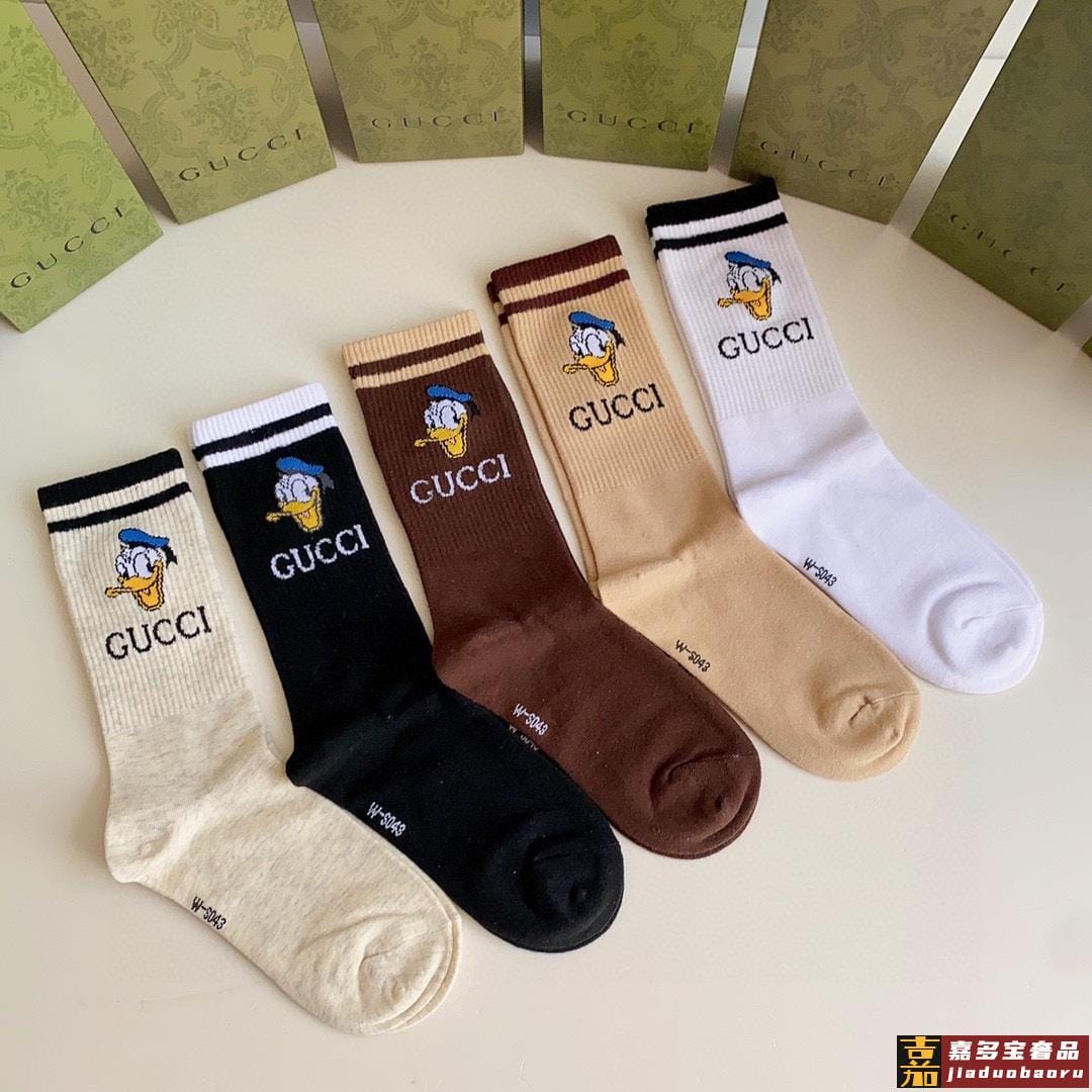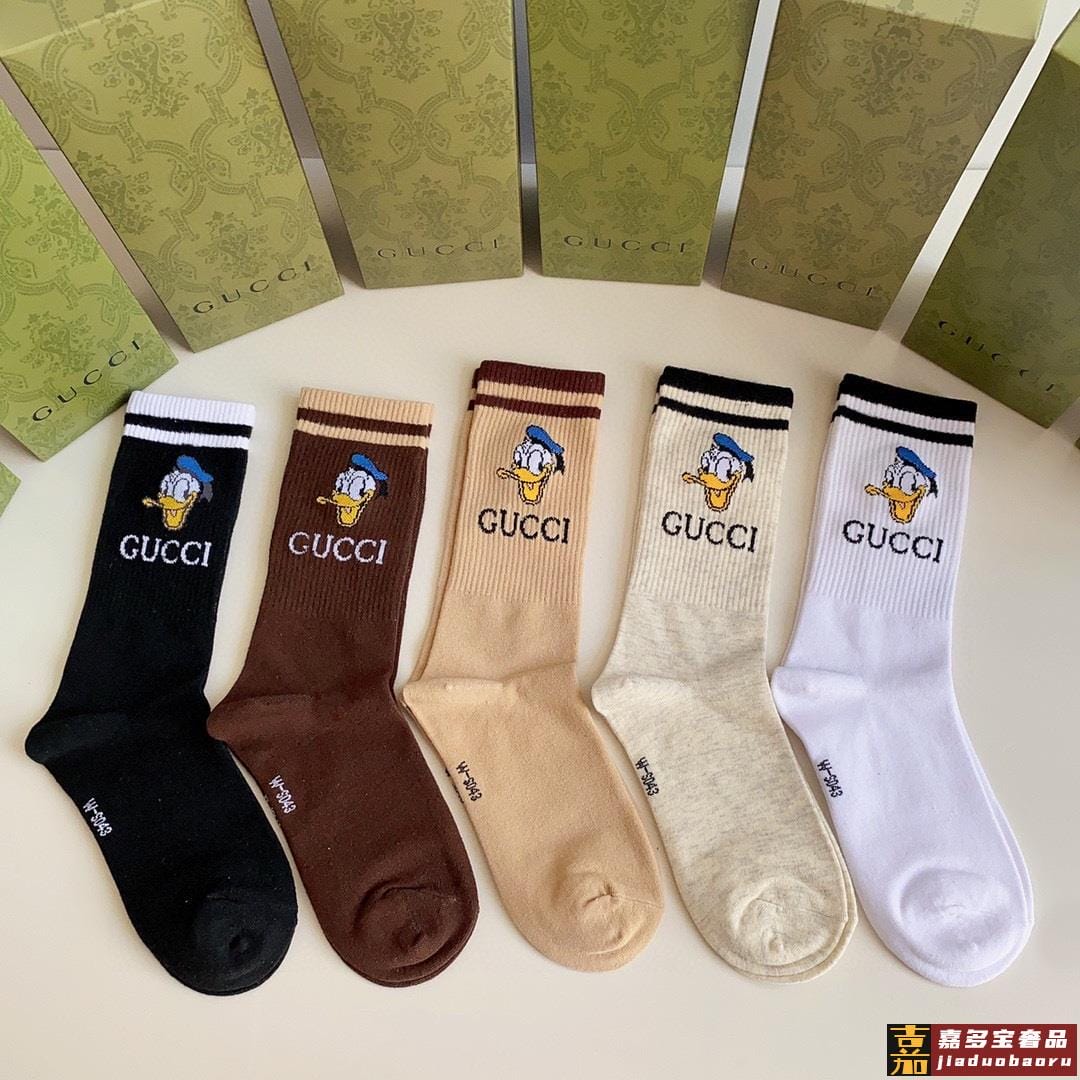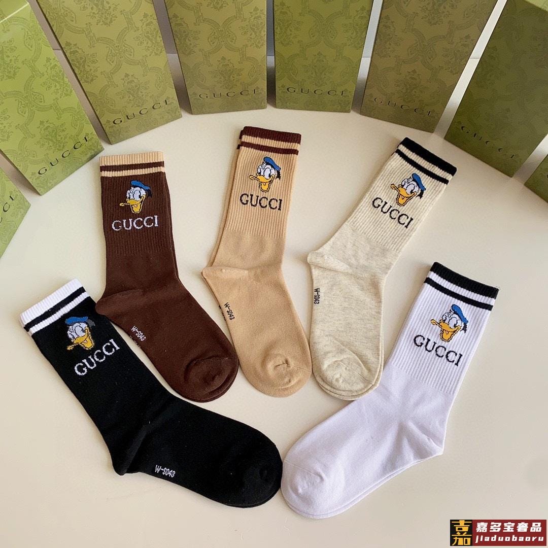 特配专柜包装古驰新款唐老鸭中长款堆堆袜袜子一盒五双专柜同步筒