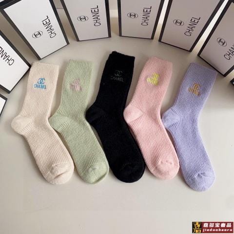 特配专柜包装香奈儿新款亲肤绒中长款堆堆袜袜子一盒五双专柜同步